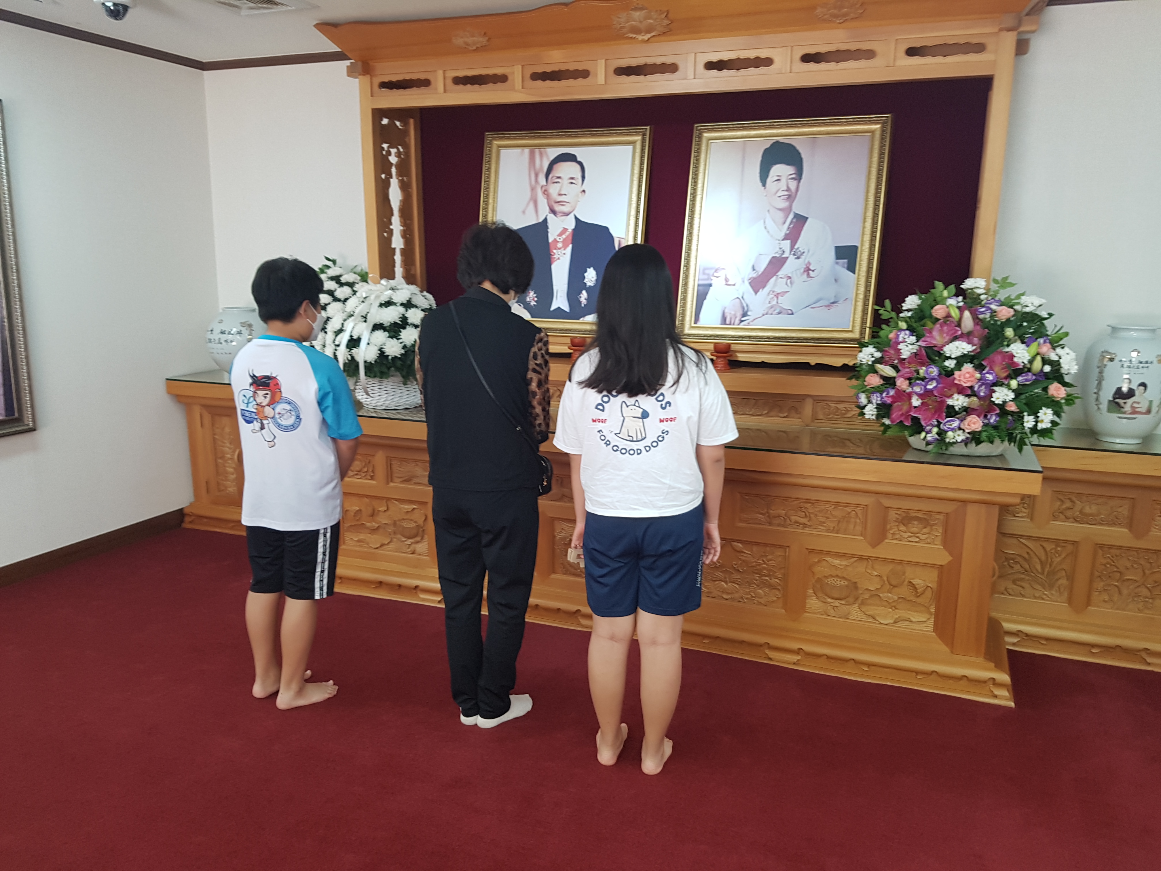 우리 손주 3명 중에서 손녀 2명의 생일이 8월 29일과 30일인데 서울과 구미에 따로 살기 때문에 생일을 축하해주기 위해서 올해는 28일 작은 아버지가 계신 구미에 모여서 생일 케이크를 자르기로 하였다. 그래서 어제 아침을 일찍 먹고 7시 반경에 차에 태우고 할머니와 함께 차를 몰고 내륙고속도로를 타고 구미로 출발하였다. 구미에는 박정희 전 대통령 생가가 있기 때문에 나와 아내는 몇 년 전에 다녀왔지만 손주들은 가 보지 않아서 40여년전 우리나라를 발전시킨 위대한 대통령이시기 때문에 교육적인 차원에서 생가를 방문할 필요가 있어서 구미시 상모동으로 차를 몰아서 10시 50분경에 생가 주차장에 파킹하고 대통령 생가와 민족중흥관을 40분동안 관람한 후에 작은 아들집이 있는 봉곡동 아파트로 갔다.