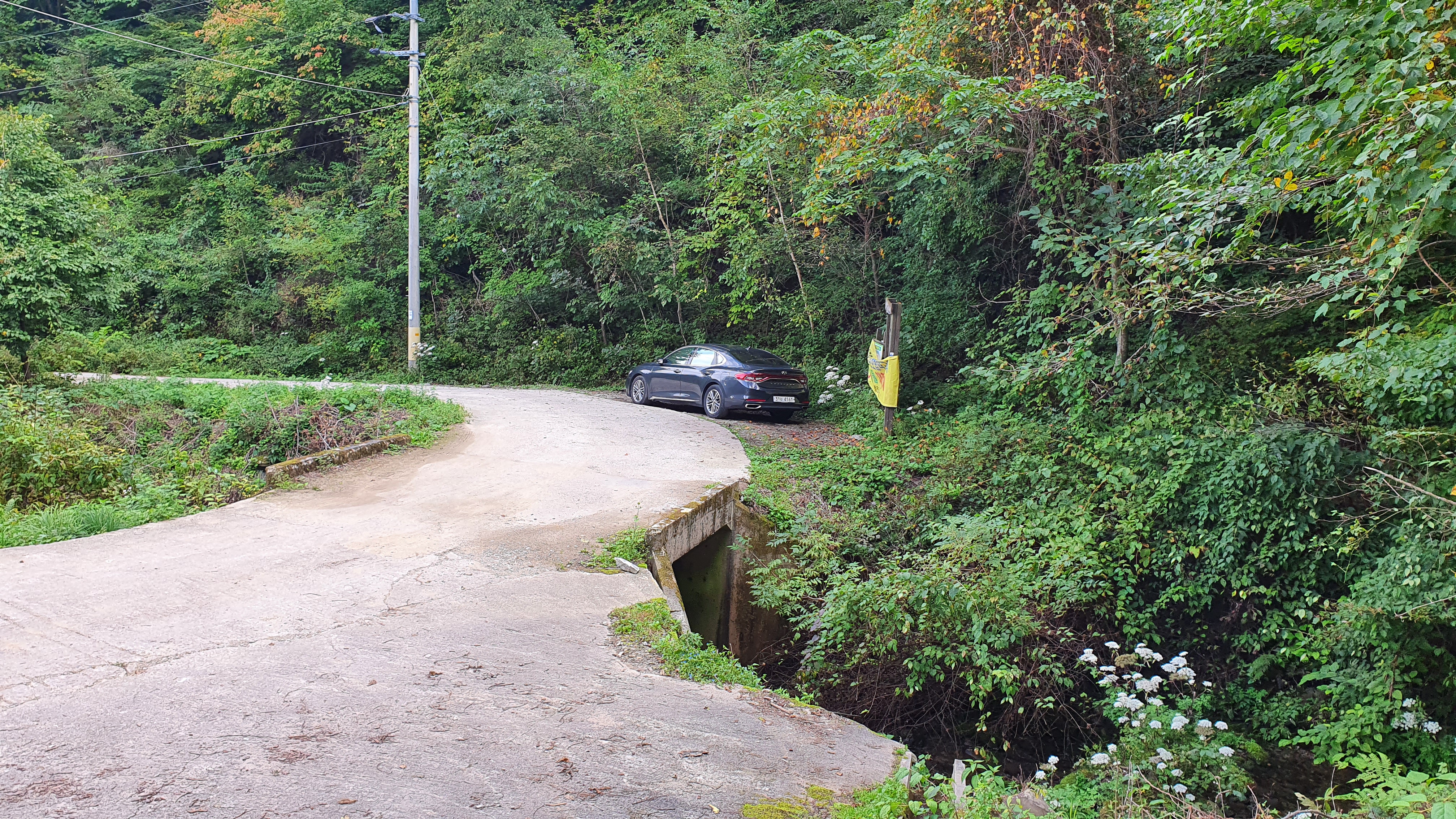 아침에 강원 평창에 있는 오대산 노인봉을 등산하고 바로 차를 운전해서 가리왕산 주변에 있는 발심사에 11시 2분경에 도착하였다. 차속에서 아내한테 잘 도착했다는 메시지를 보내고, 차를 다리옆에 주차시키고 등산길을 찾아 보았는데 보이지 않아 발심사쪽으로 올라가는데 도로가에 풀을 자르려고하는 살림청직원들이 올라와서 등산길을 물으니깐 원래 여기는 정식 등산길이 없고, 다리 바로건너 왼쪽골짜기로 올라가는 작은 소로길이 있다고만 얘기하였다. 개심사에 올라가서 사진을 여러장 찍었는데 절에 아무도 없는 지 이 큰절에 먼지만 쌓여 있는 것 같고, 절로 올라가는 경사길에 수십년된 나무들이 여기 저기 잘린채로 나뒹굴고 있었다. 다리건너 골짜기에 등산로를 발견한 후에 골짜기숲으로 들어가서 골짜기하천을 건너갔다 왔다 하면서 60도 이상 갈지자형 소로길를 한참 올라가니 길이 나왔고 넓을 광장이 나왔다. 이정표를 보니 마항치라는 사거리라고 하였다. 살림청 직원 5명이 산림도에 풀을 예초기로 깎고 있었다.