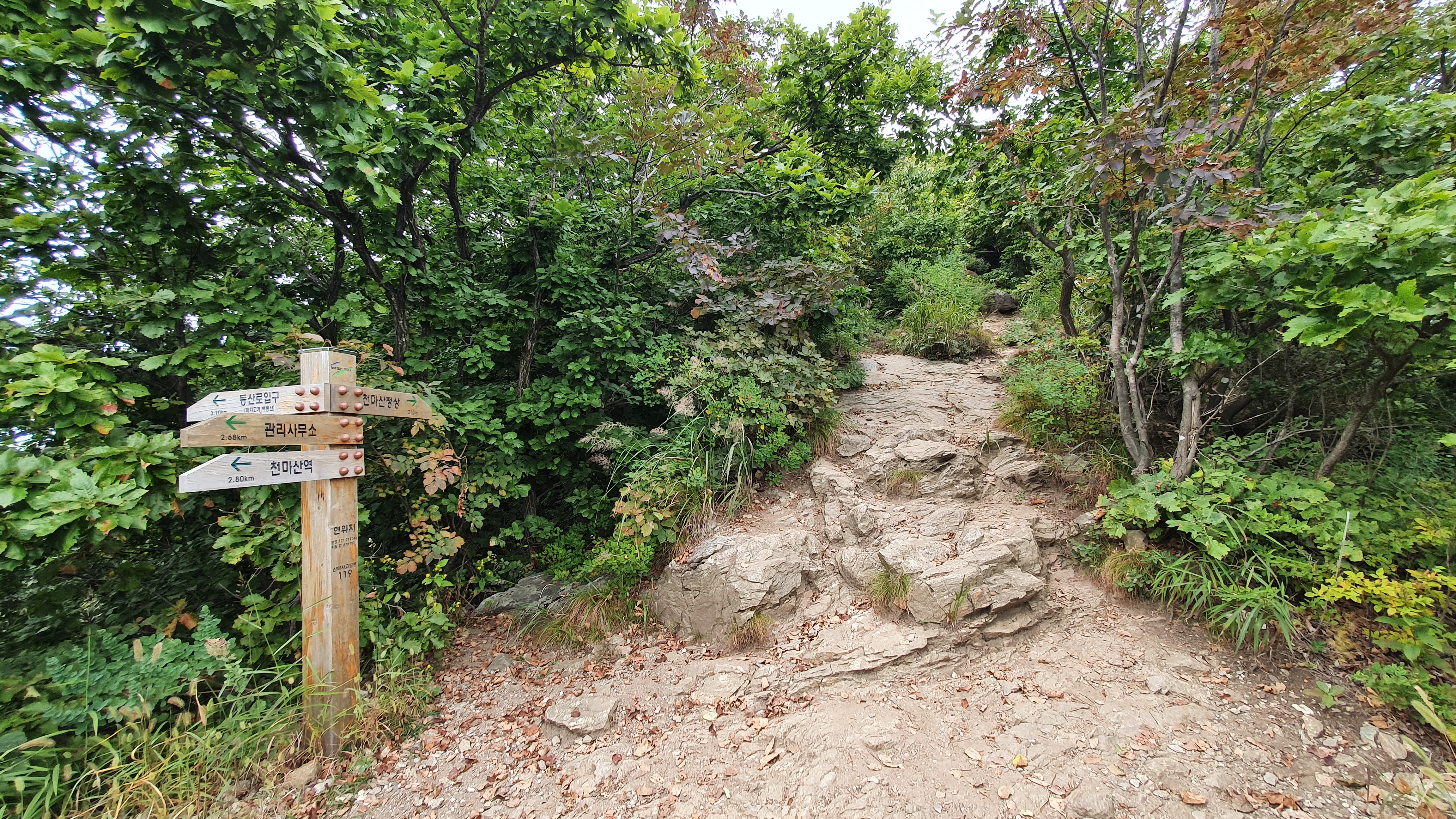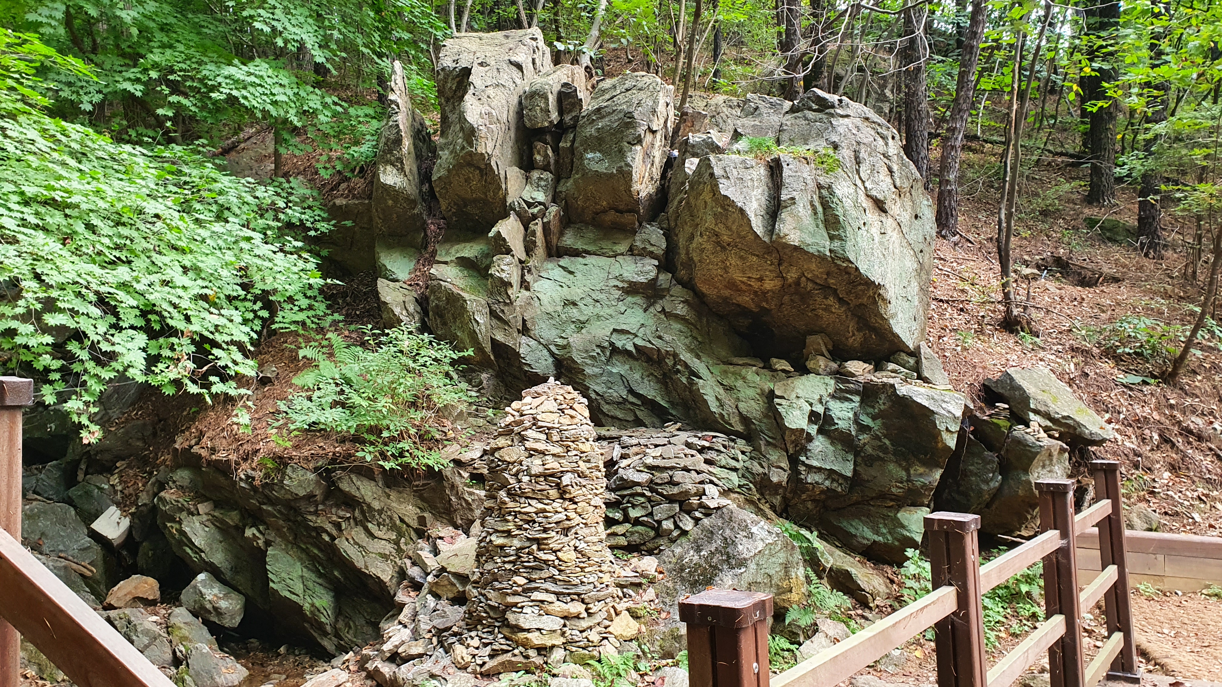 오늘 아침 7시 20분경 등산배낭을 메고 지하철 돌곶이역까지 걸어가서 6호선을 타고 신내역에서 하차한 후 경춘선으로 환승하여 천마산역에 8시 54분에 내렸다. 신내역에서 경춘선 지하철 배차간격이 거의 30분 정도 되다 보니 예정시간보다 30분 이상 시간차가 생겼다. 천마역에서 2번 출구로 나와 국도를 건너서 보도길을 따라 올라가니 우측에 바로 천마산 2번 코스 입구가 있어 천마산을 등산하기 시작하였다. 고등학교~대학 다닐 때 2~3번 천마산을 등산했었는데 그때는 지하철이 생기기 전이라 마석에서 산을 오른 것 같았다. 하여간 새로 생긴 등산코스라 코스가 좋다고 해서 올라가는데 500m에 주먹바위가 있고 100m 더 가서 2코스로 갈라졌다가 200m 정도 가서 합쳐졌는데 올라갈 때는 우측 길로 45도 정도 가파른 길을 택하여 첫번째 야산을 넘어갔고 내려올 때는 좌측길을 선택하였다.