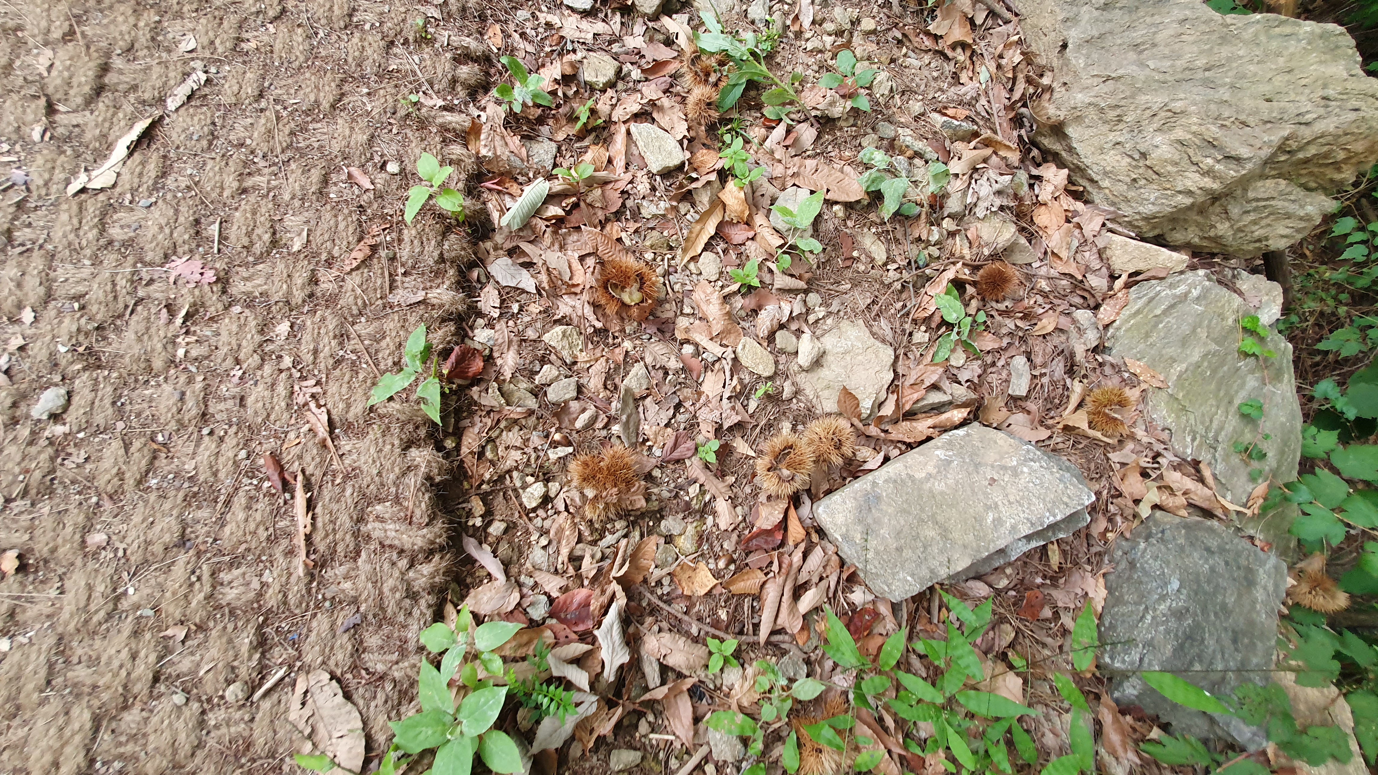 왕수리 도토리 산밤들이 아람 벌어 많이 떨어져 있다.