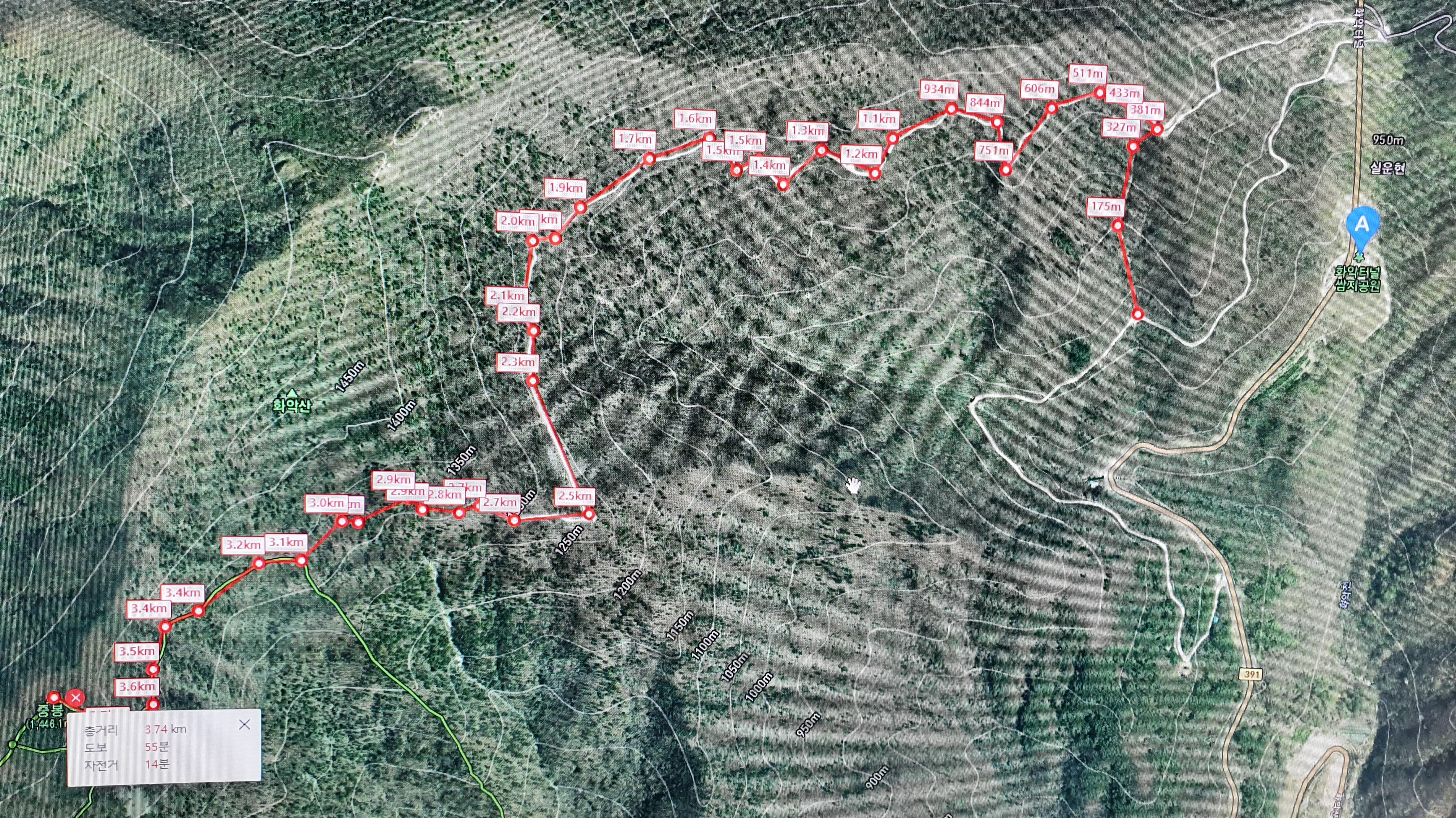 집 출발(7시) - 화악산 바리케이트주차장 도착(8시 50분) - 화악산 등산종료(11시) -