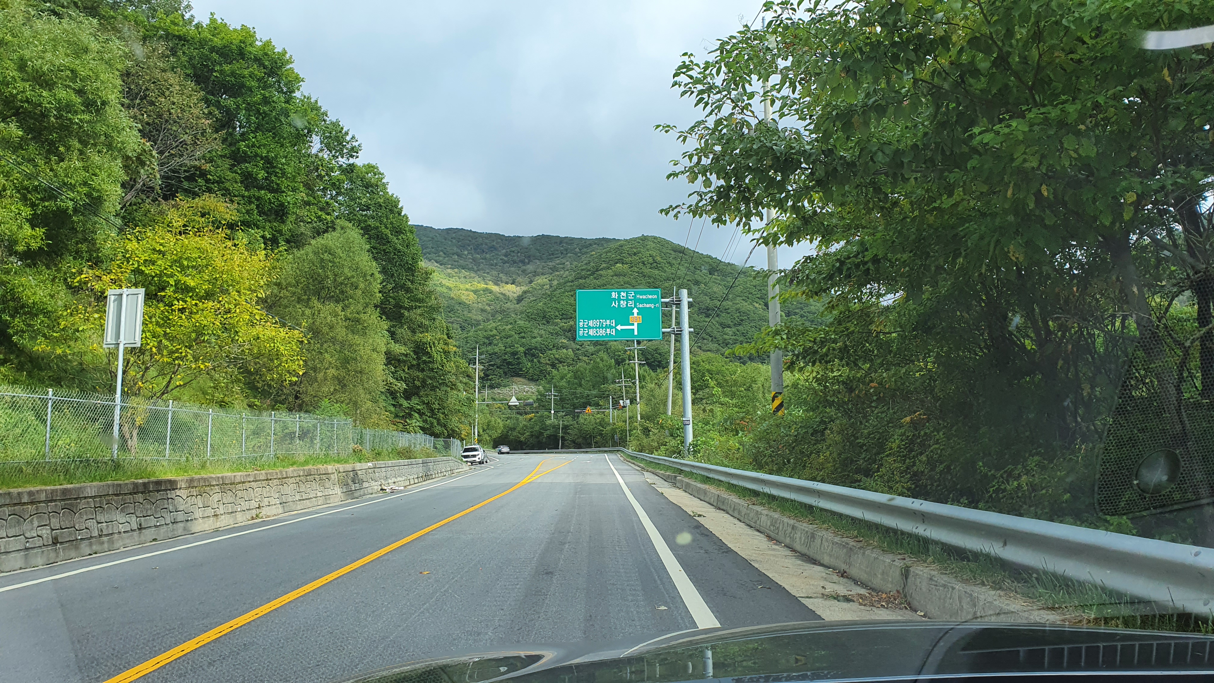 화악산 391번국도로 가다가 화악터널 못 미쳐서 2개의 공군부대 삼거리 이정표