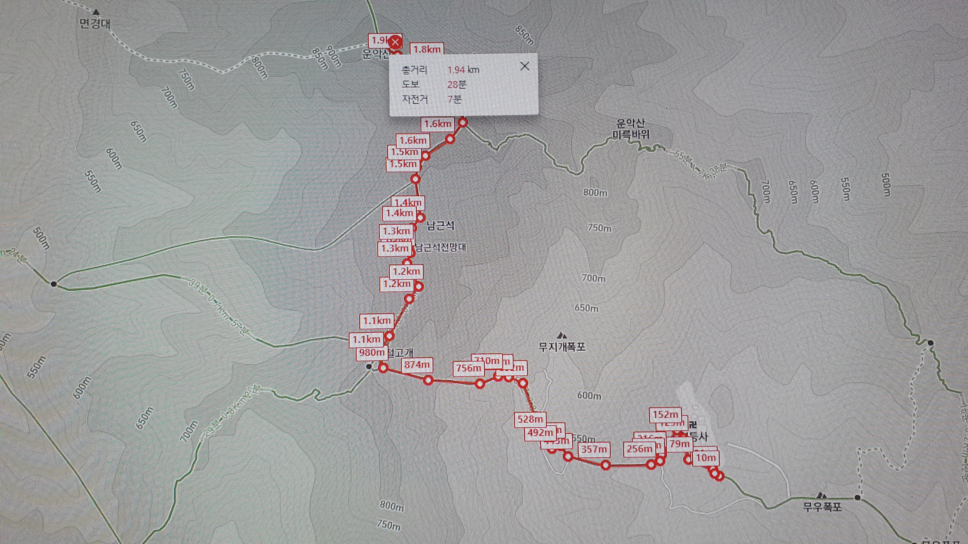 등산거리 : 편도 2.2km, 왕복 4.4km
