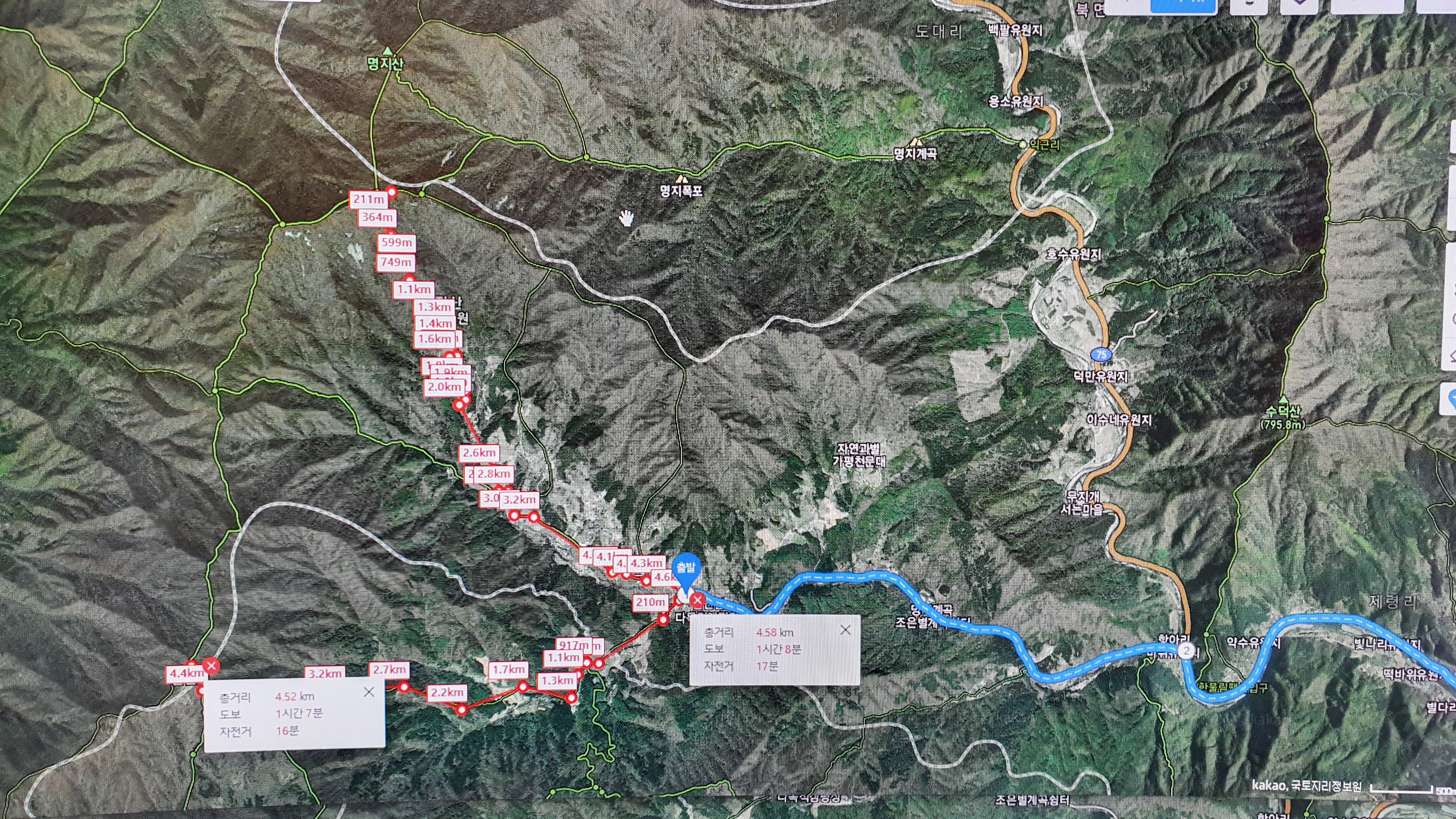 종합코스 : 집 출발(오전 7시) - 연계주차장 도착(8시 41분) - 연인산,명지산 등산종료(오후 2시 41분) -