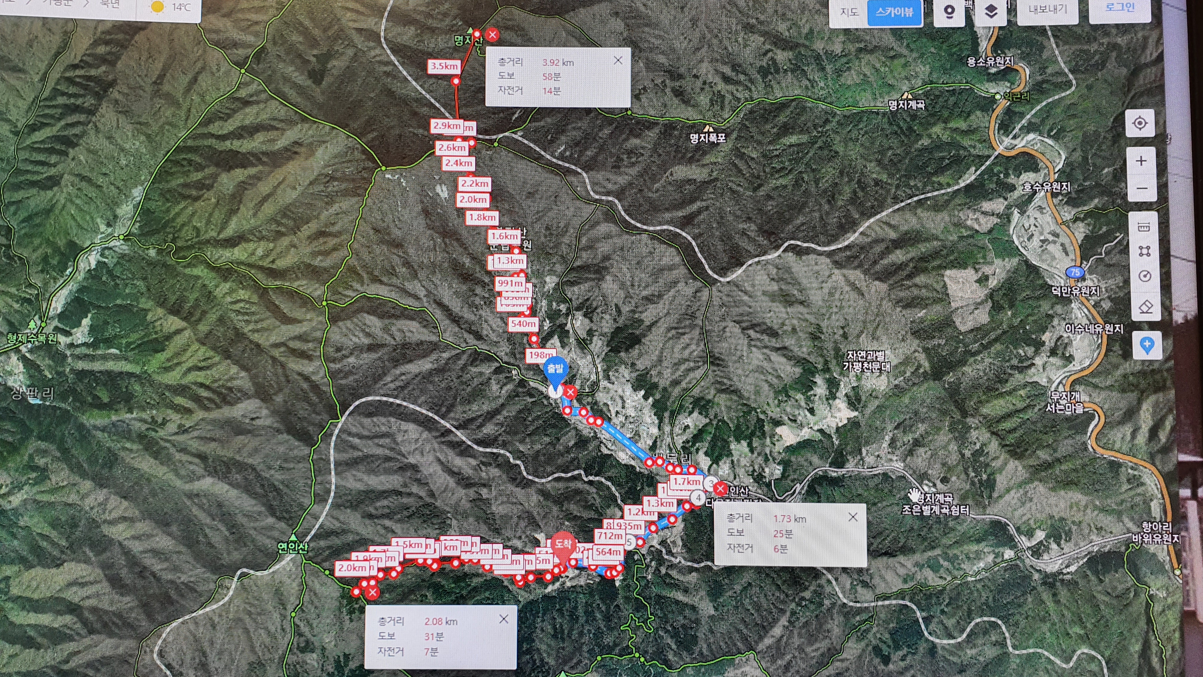 2일전에 100대 명산인 연인산과 명지산을 연계등산하려고 계획세웠는데 등산다녀온 분들이 올린 산행문을 읽어보니 연계등산로가 잘 나 있지 않고, 연계등산로 길이가 16.4km로 너무 먼 것 같아서 더 조사해 보니깐 하루에 두 산을 등산하는데 차를 이용해서 등산길이를 좀 더 줄일 방법을 선택해 보았습니다.