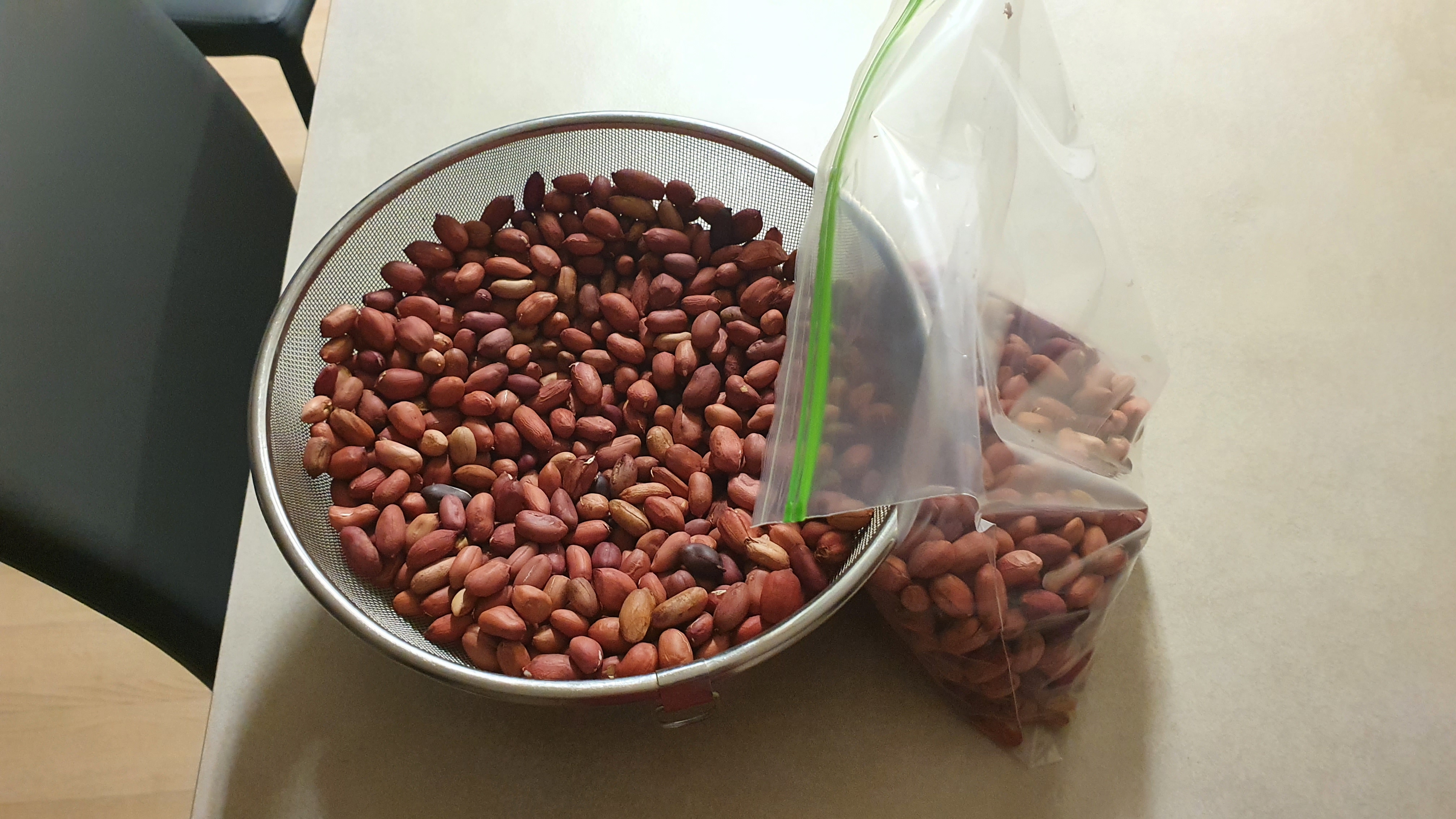 떨 말린 피땅콩이 많아서 껍질을 까다가 손가락에 물이 생겨 더 까기가 어려워서 오늘은 떨 말린 피땅콩을 에어프라이어로 말리기도 하고 깐 땅콩 알을 볶기도 하였다. 내일까지 에어프라이어로 말려야할 것 같다.