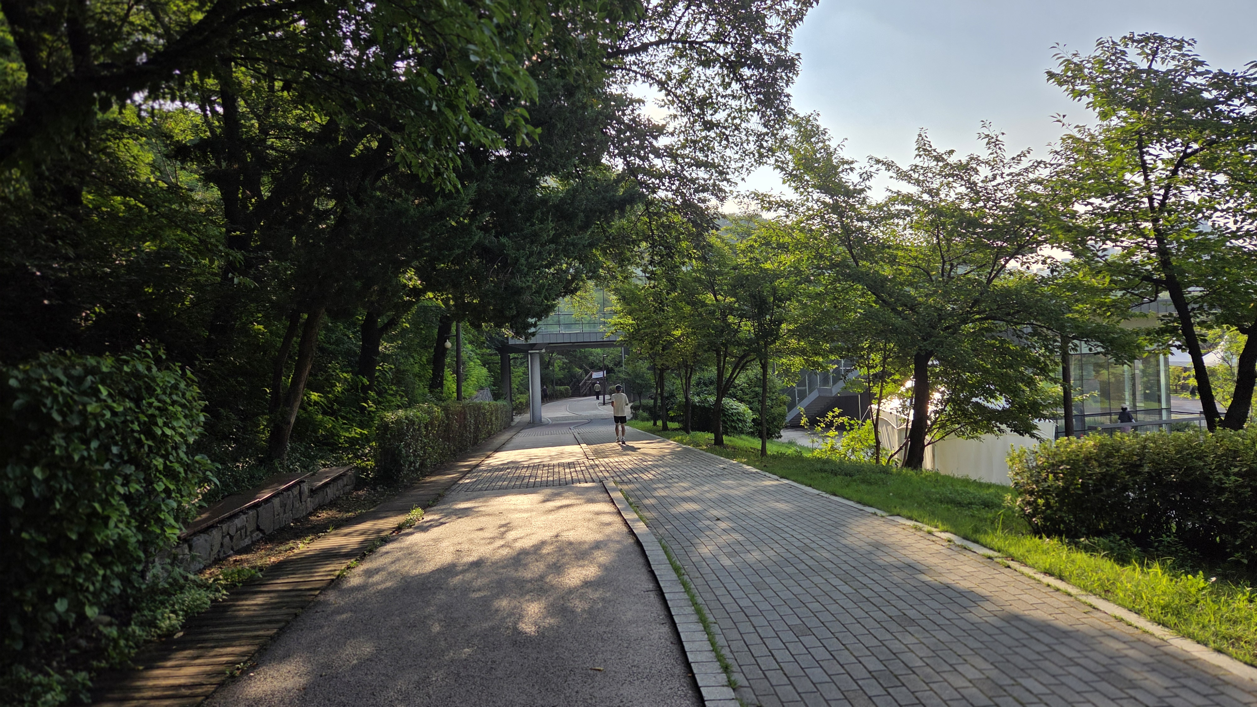 바람이 솔솔부는 이른 아침 6시 58분경에 아파트 후문으로 나가 북서울 꿈의숲 및 벽오산을 등산하려고 합니다. 동문으로 들어가서 북서울 꿈의숲 평지 둘레길 벚꽃나무길-일영호수- 도서관-잔디구장-광장-산속 둘레길로 들어가 -오거리-넓은바위-남부능선-벽오산 정상-전망대및 사각정자쉼터-오동육교-해링턴아파트옆 둘레길 출입구-게이트볼장-오동숲 점토길-번동 U도서관-어린이 놀이터-강북정보 문화도서관- 11번 출입구-Y형길-9번문-동북둘레길-점토공원-4번출입구길-장월아파트를 지나 8시 33분경에 우리 아파트 후문으로 들어왔습니다.
