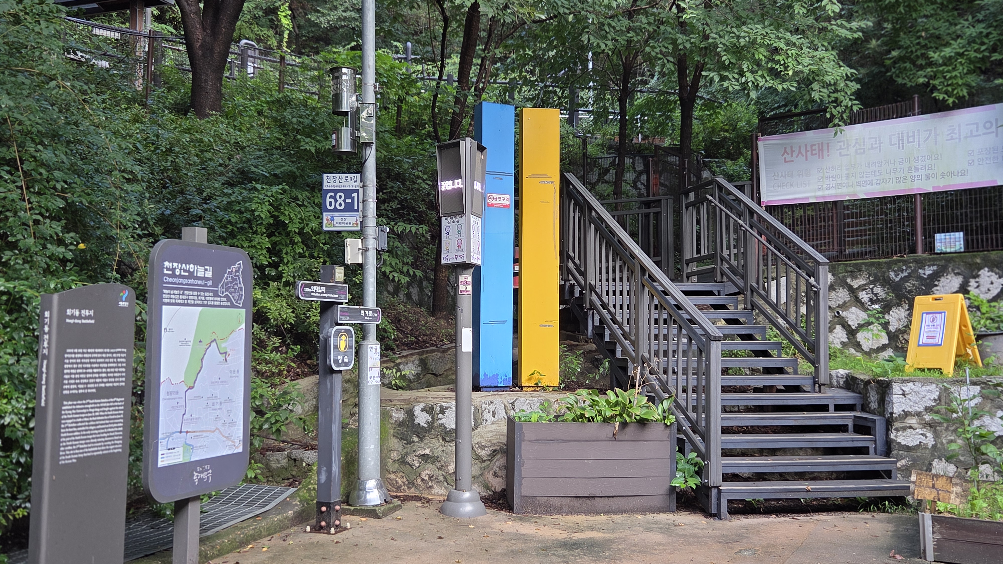 천장산 북쪽 청량공원 등산로 데크 출입구