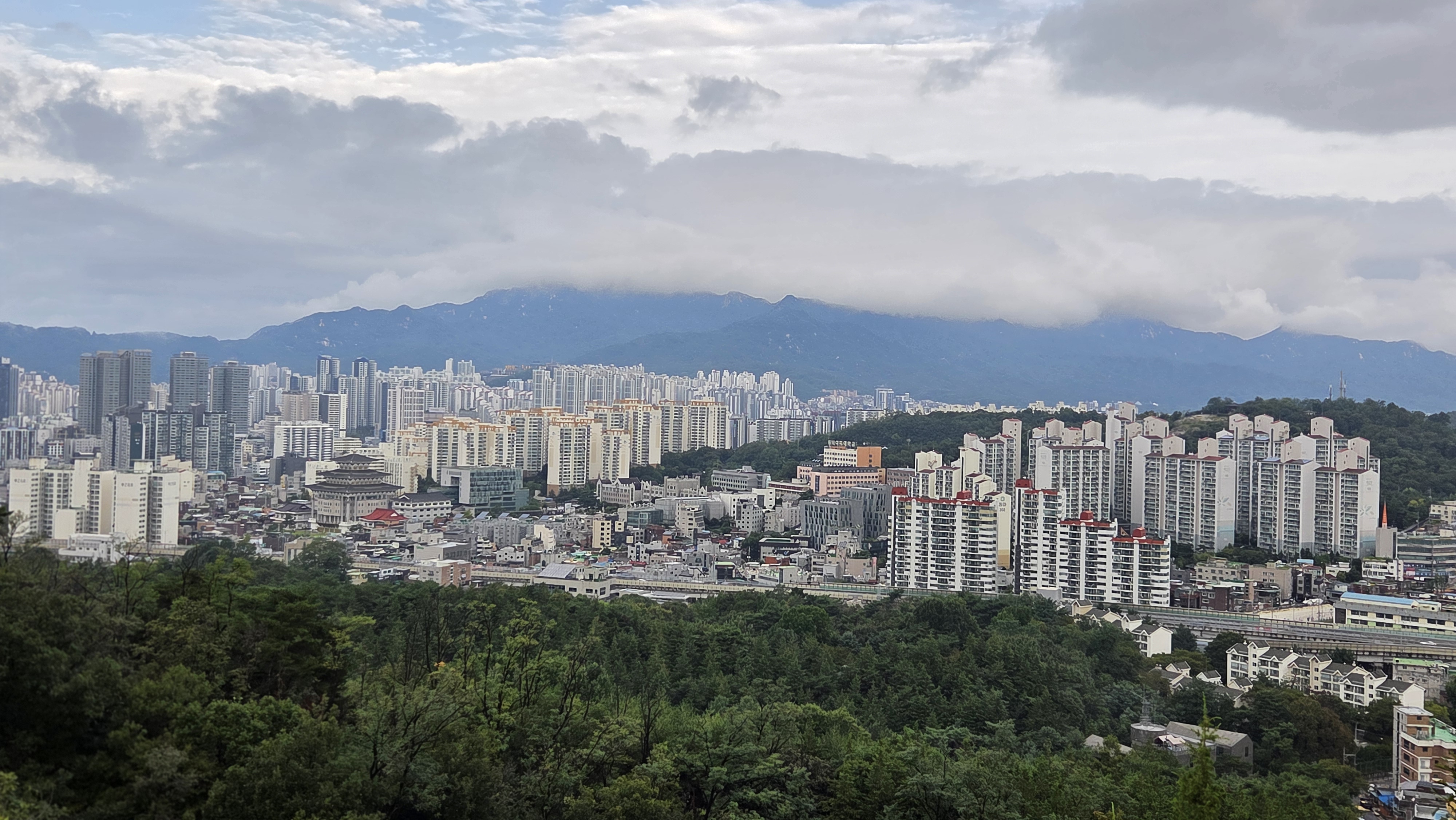 오른쪽에 구름덮인 도봉산