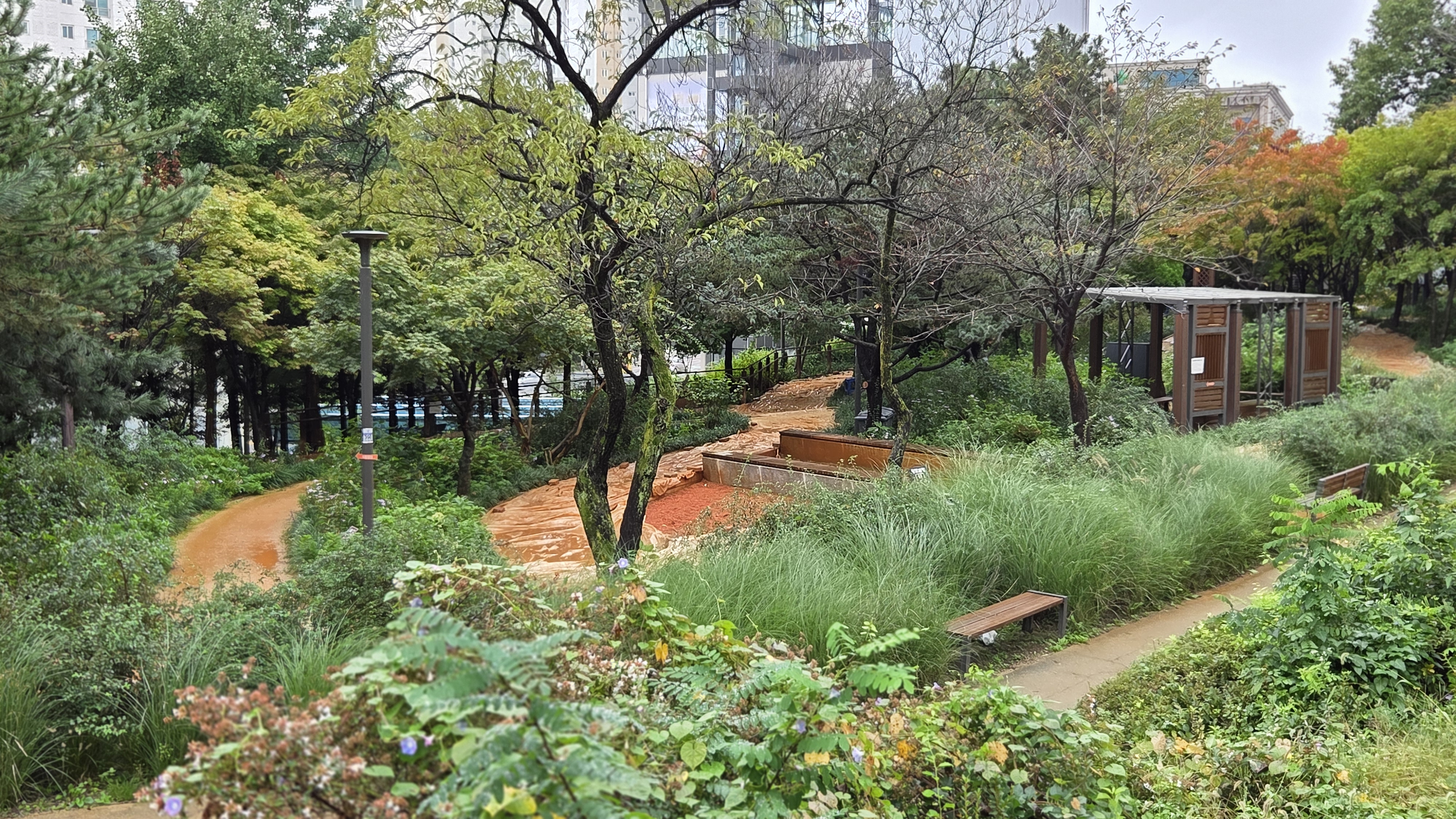 아침식사에 차례음식이 너무 맛있어서 먹다보니 너무 많이 먹어 배가 불려서 이슬비가 내리는데 10시 07분경에 아파트 후문으로 나가서 북서울 꿈의숲 둘레길 17번문으로 들어갔다가 동방고개-둘레길 15번-남부능선-벽오산(134m) 정상에 올랐다가 서부조망대 및 사각쉼터정자-오동철육교-게이트볼장-오솔점토길-번동 U도서관-어린이놀이터-강북문화정보 도서관-둘레길 11번문으로 들어가서 동쪽둘레길 1.5km-점토공원-둘레길 4번문-오현초교앞-우리아파트 11시 14분경에 후문으로 들어왔습니다. 오늘은 시간이 없어서 최단코스로 북서울 꿈의숲 둘레길을 걸었습니다.