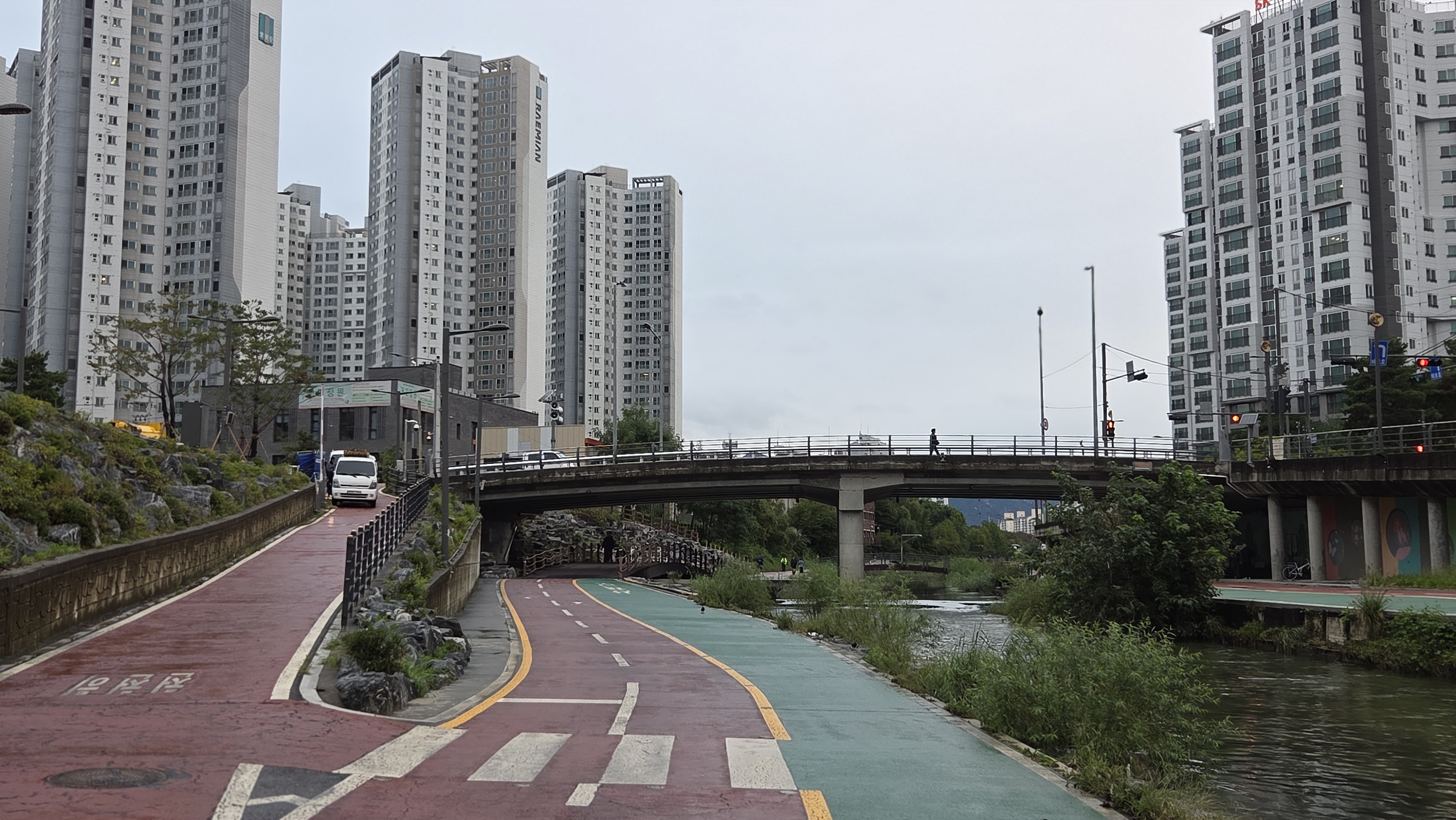 흐린 아침 6시 55분경에 아내와 함께 아파트 북문으로 나가 큰길을 건너서 광운초교 사거리-우이천 벼루말교까지 같이 갔다가 아내는 짧은 코스로 영축산으로 갔고 나는 긴 코스로 가기 위해서 우이천변으로 내려가는데 지난밤 비가 많이 와서 장월교 주변 산책로가 물에 잠겨서 장월교로 올라가서 석계역을 지나 둑장안 벚꽃안길로 가다가 중랑천 돌징검다리를 쳐다봤더니 약간 넘쳐 통행을 금지시킨 것 같아서 이화교까지 가서 천변으로 내려가 유턴하여 약간 넘친 중랑천 돌징검다리를 사진에 담고 간선도로-장안벚꽃길-석계역-장위3동 사거리-광운초교 사거리를 지나 8시 19분에 우리 아파트 북문으로 들어왔습니다.