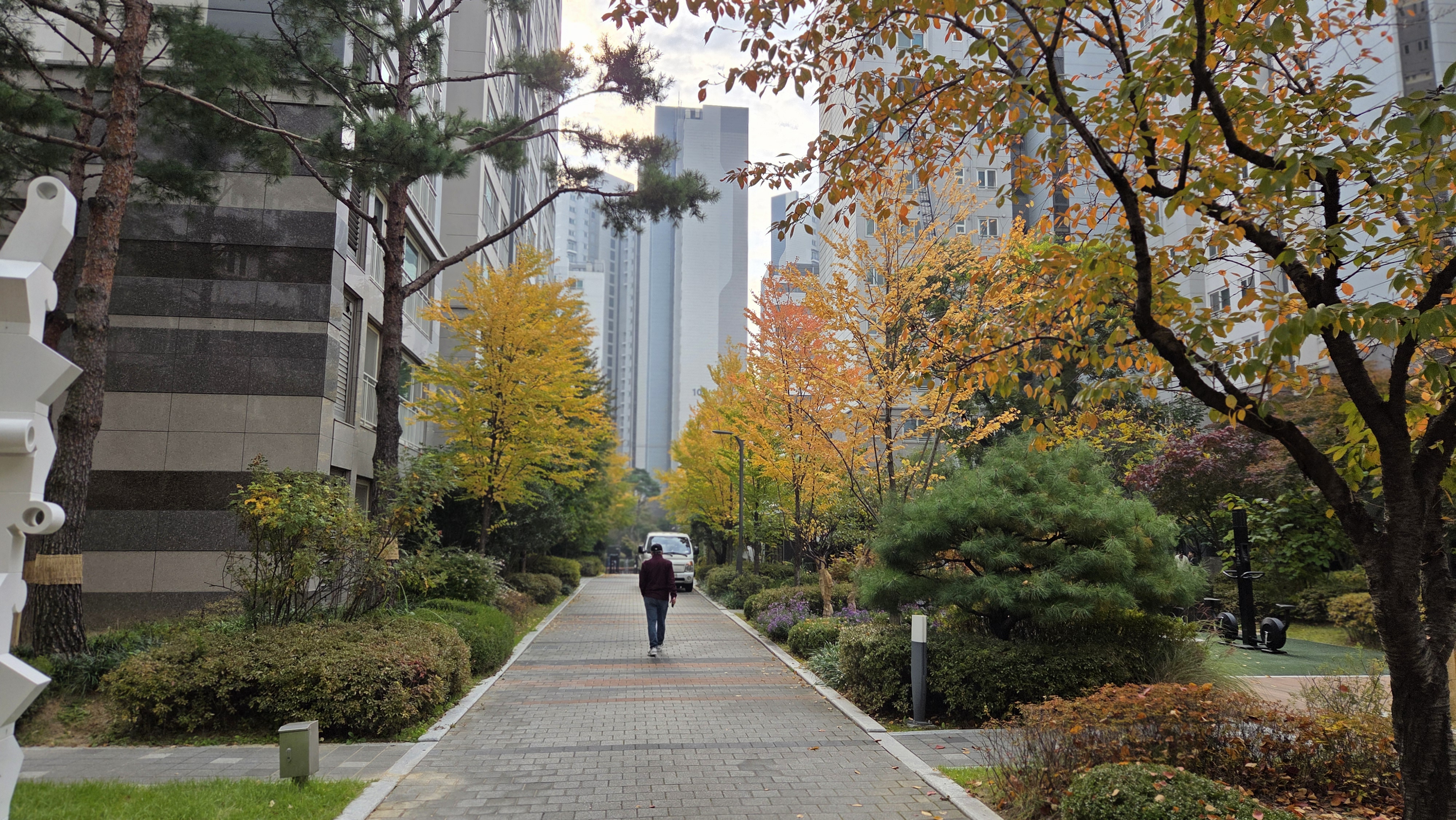 우리 아파트 남문통로 가로수 계수나무잎 단풍