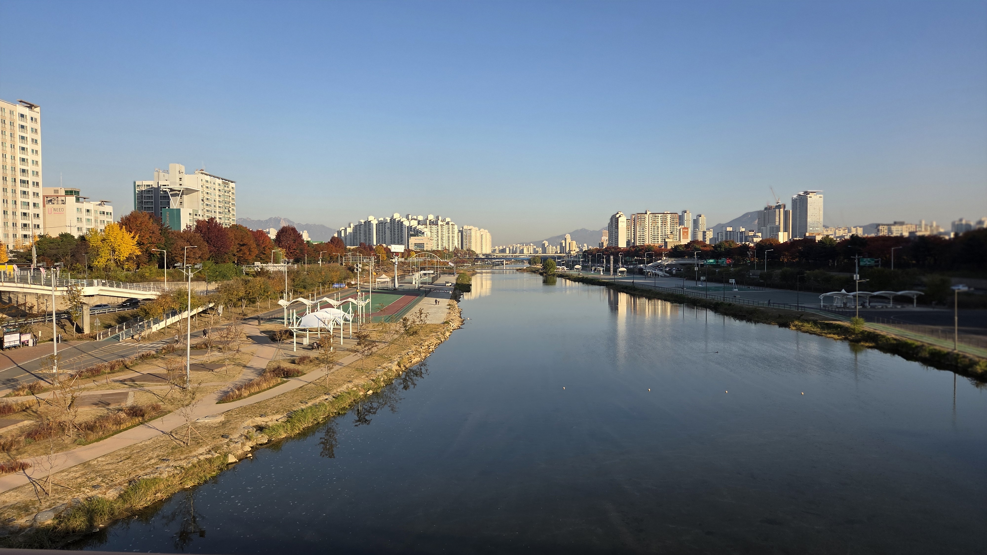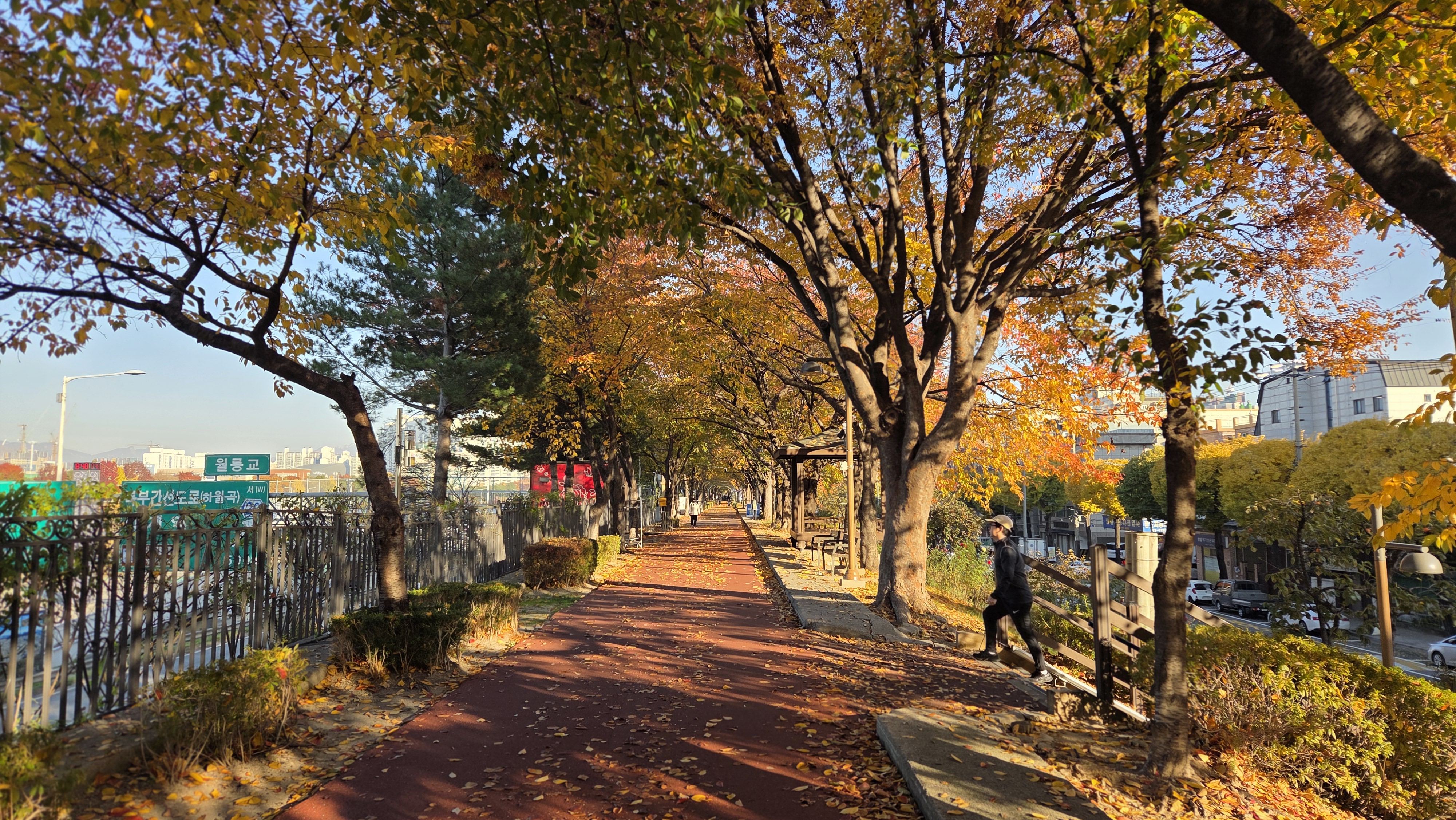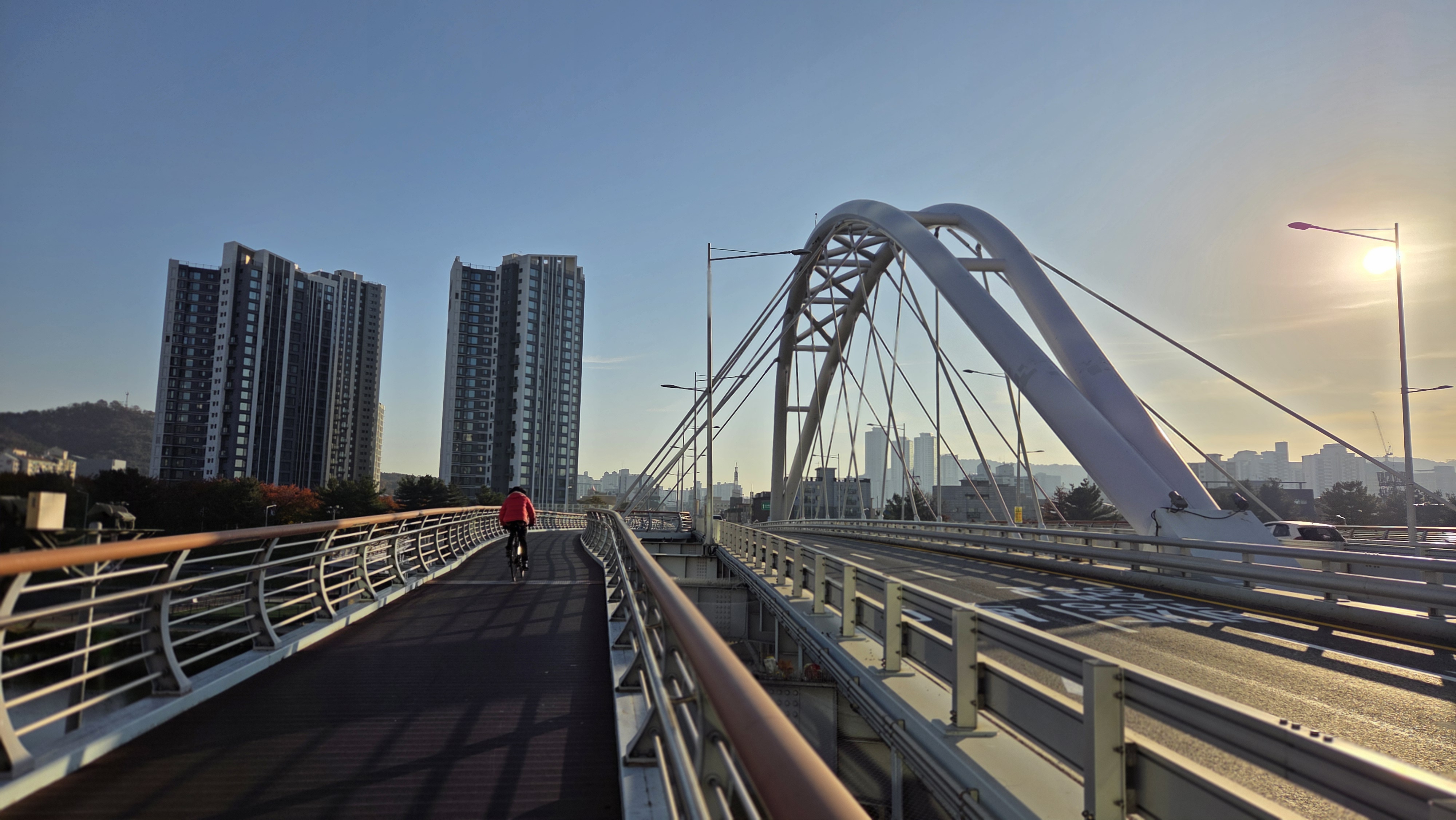 아침날씨가 쌀쌀해서 옷을 껴입고 7시 52분경에 우이천 천변으로 나가서 우이, 중랑천 합류지점-이화교를 건너 중량장미공원-월릉교-굴다리-장월교를 지나 9시 35분경에 아파트 북문으로 들어왔는데 빠른 걸음으로 걸었더니 모자 쓴 이마에 땀이 났습니다.