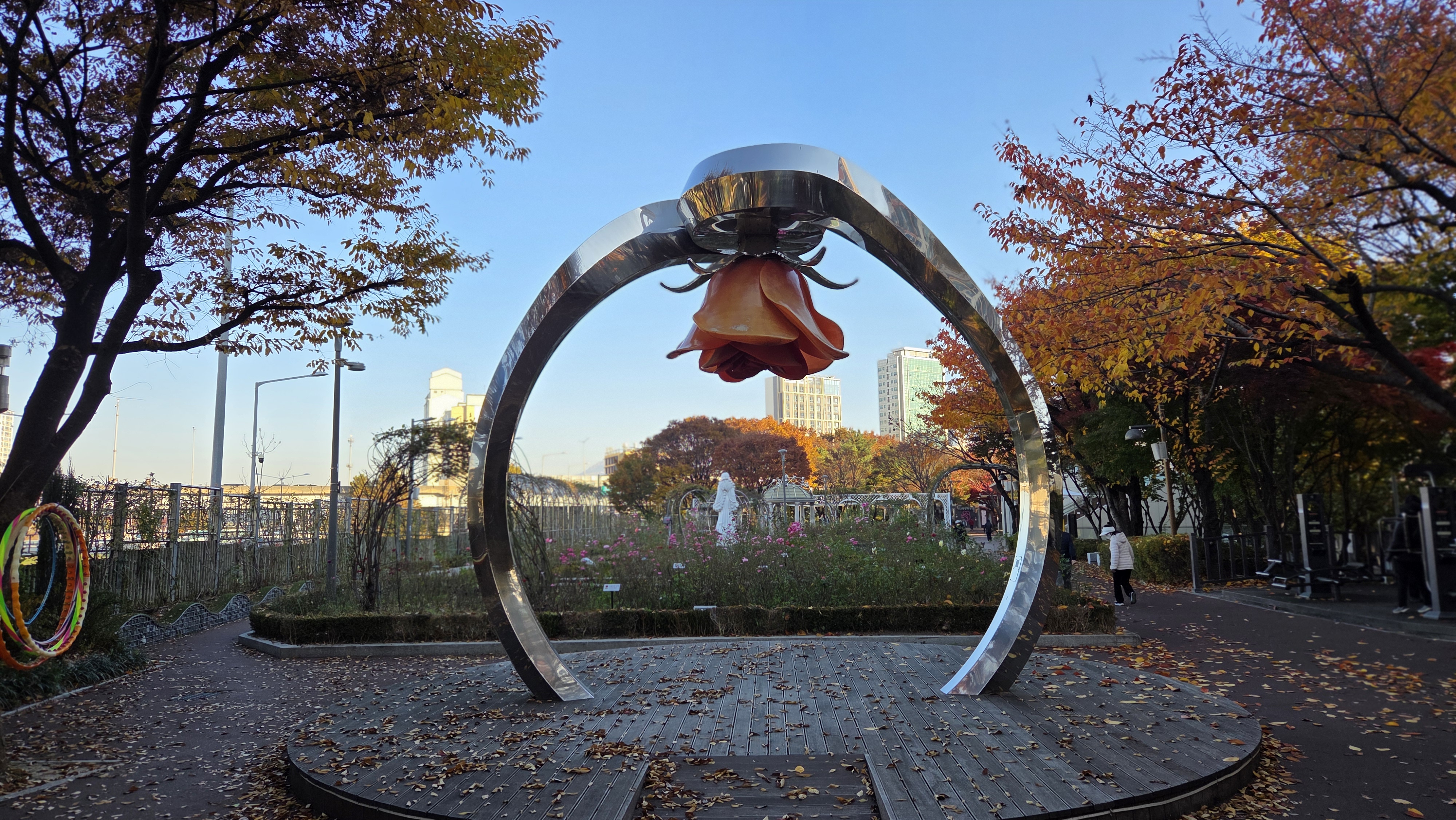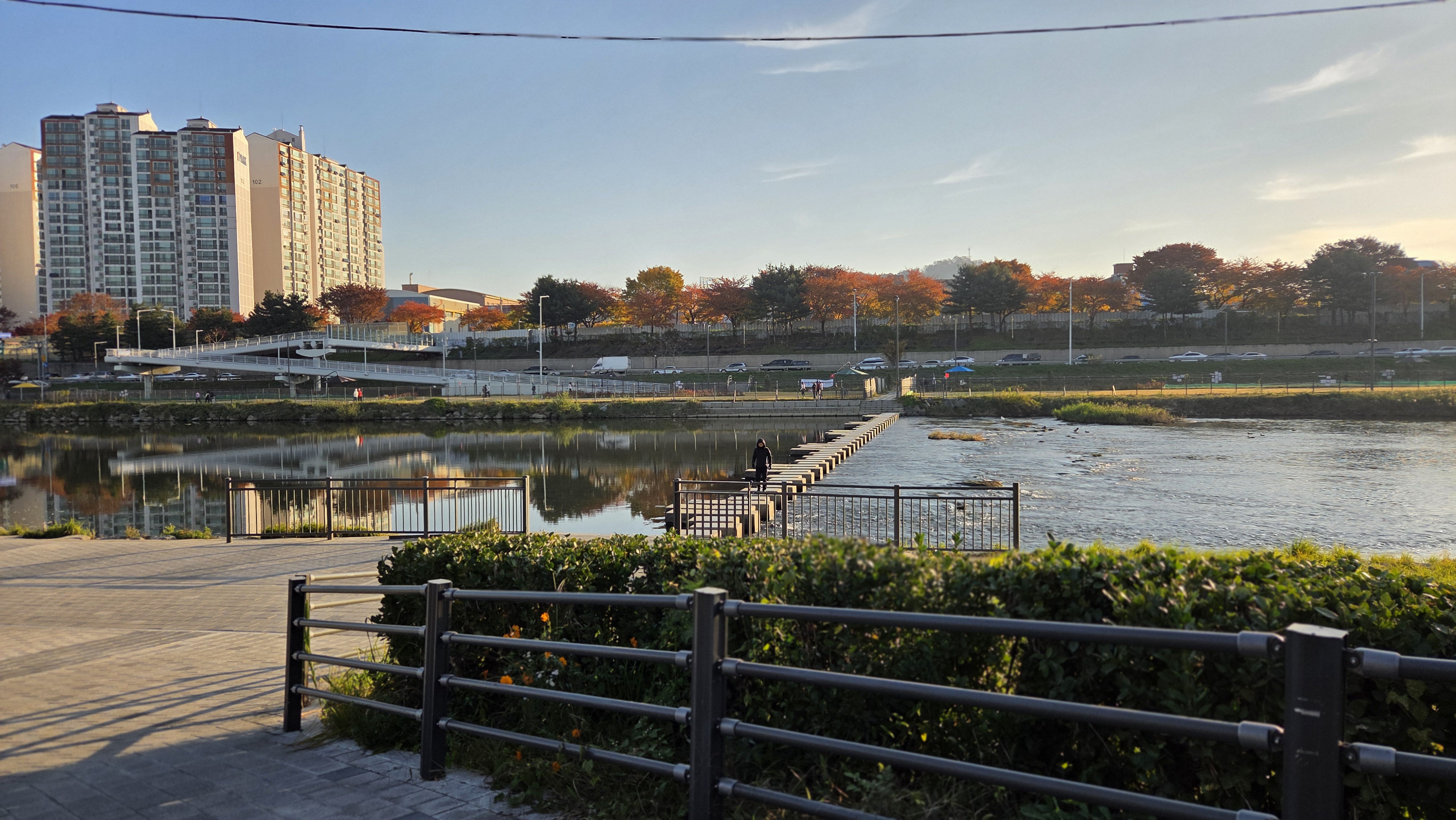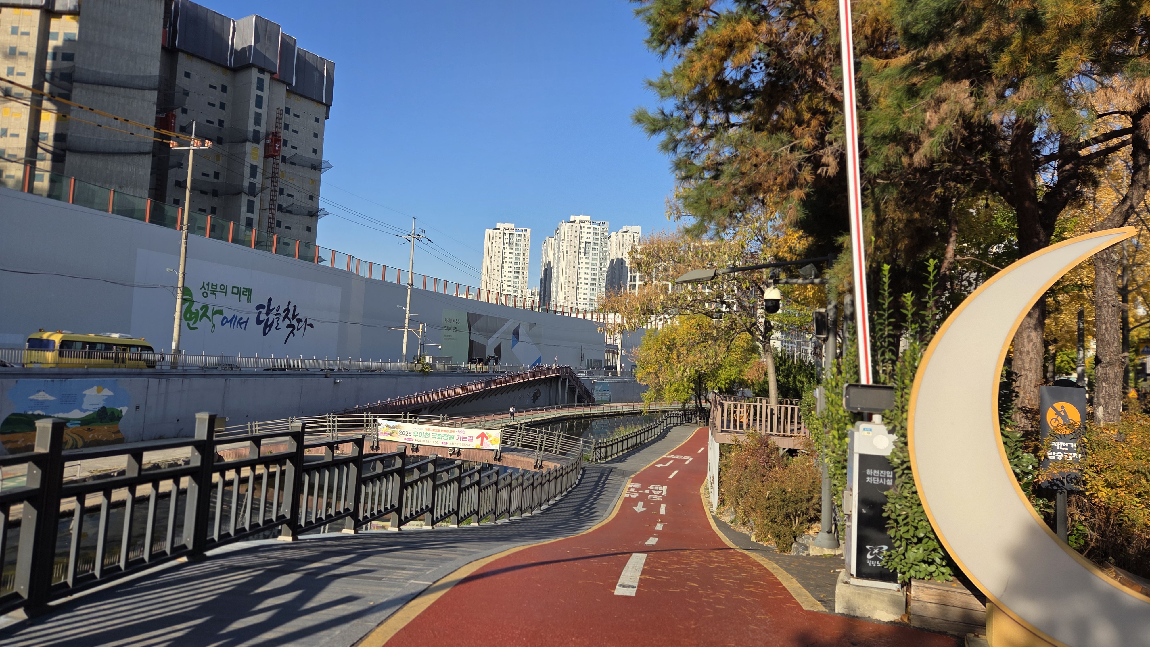 아침날씨가 쌀쌀해서 옷을 껴입고 7시 52분경에 우이천 천변으로 나가서 우이, 중랑천 합류지점-이화교를 건너 중량장미공원-월릉교-굴다리-장월교를 지나 9시 35분경에 아파트 북문으로 들어왔는데 빠른 걸음으로 걸었더니 모자 쓴 이마에 땀이 났습니다.
