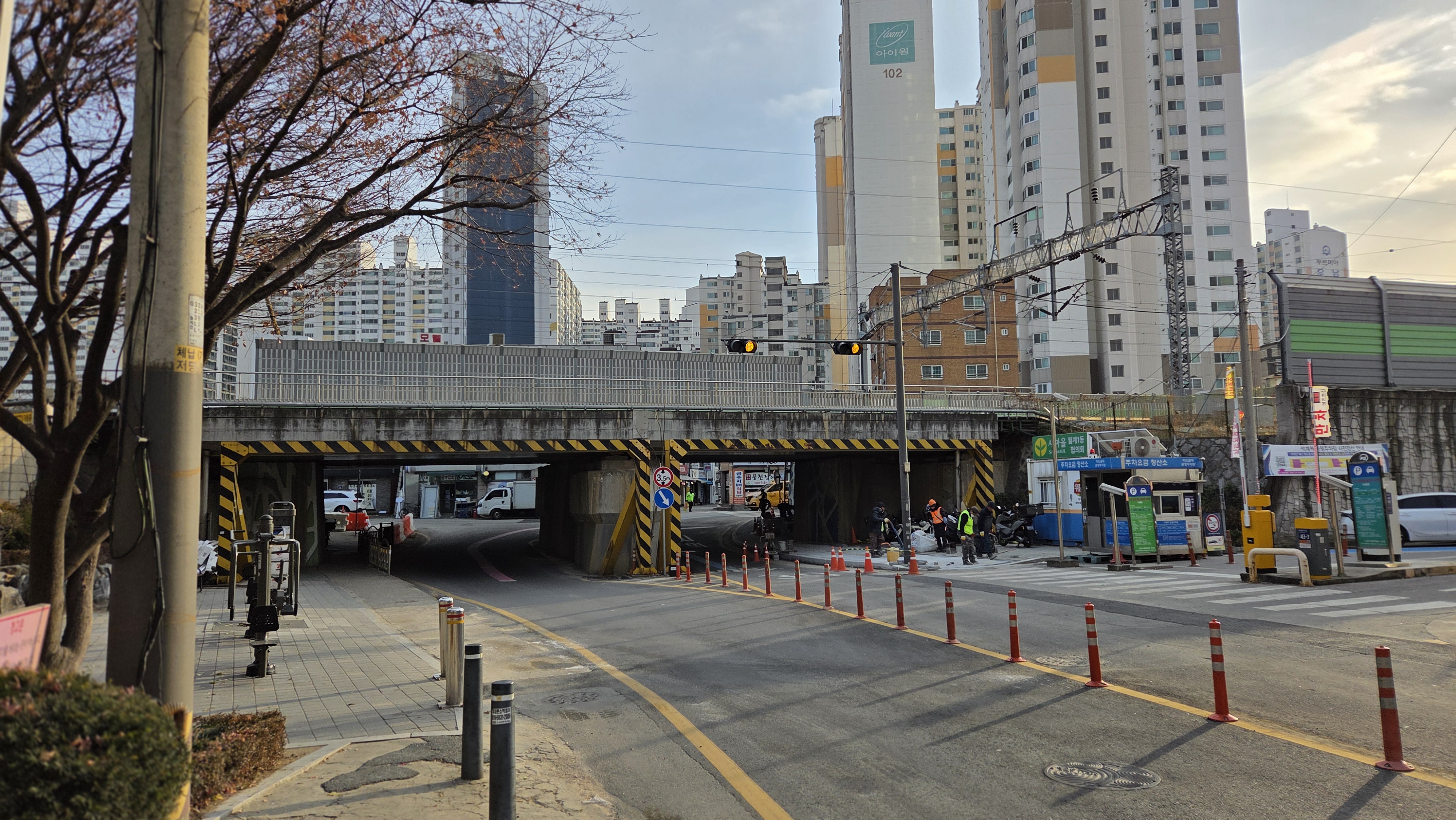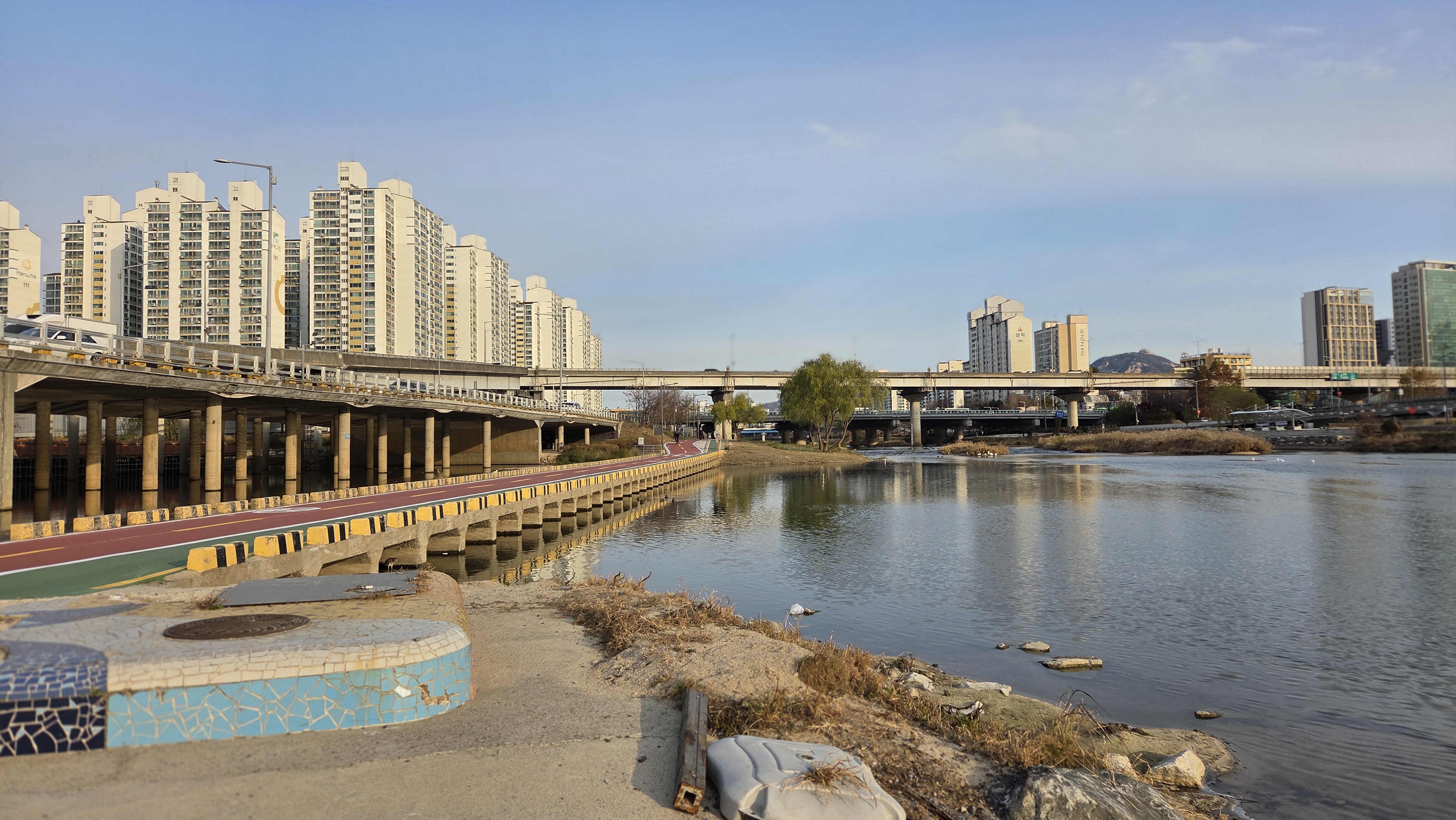 아침기온이 영하 8도로 올 겨울 제일 추운 날 아침 7시 56분경에 우이천 벼루말교 하상출입구로 내려가서 석계역 하상암거박스 통로를 지나 가는데 맞바람이 불어 너무 추워서 둑계단으로 올라가서 이화교-장안둑 벚꽃길을 지나 쌍용아파트 14동 앞 육교밑으로 내려가서 중랑천변으로 걸어서 이화교-돌징검다리-중랑,우이천 합류점-월릉교 상단-그랑빌아파트 입구-굴다리-동신아파트를 지나 다시 우이천변으로 들어가서 장월교-우이천 벼루말교 하상출입구로 올라가서 광운초교 사거리를 건너 9시 34분경에 우리 아파트로 들어왔습니다.