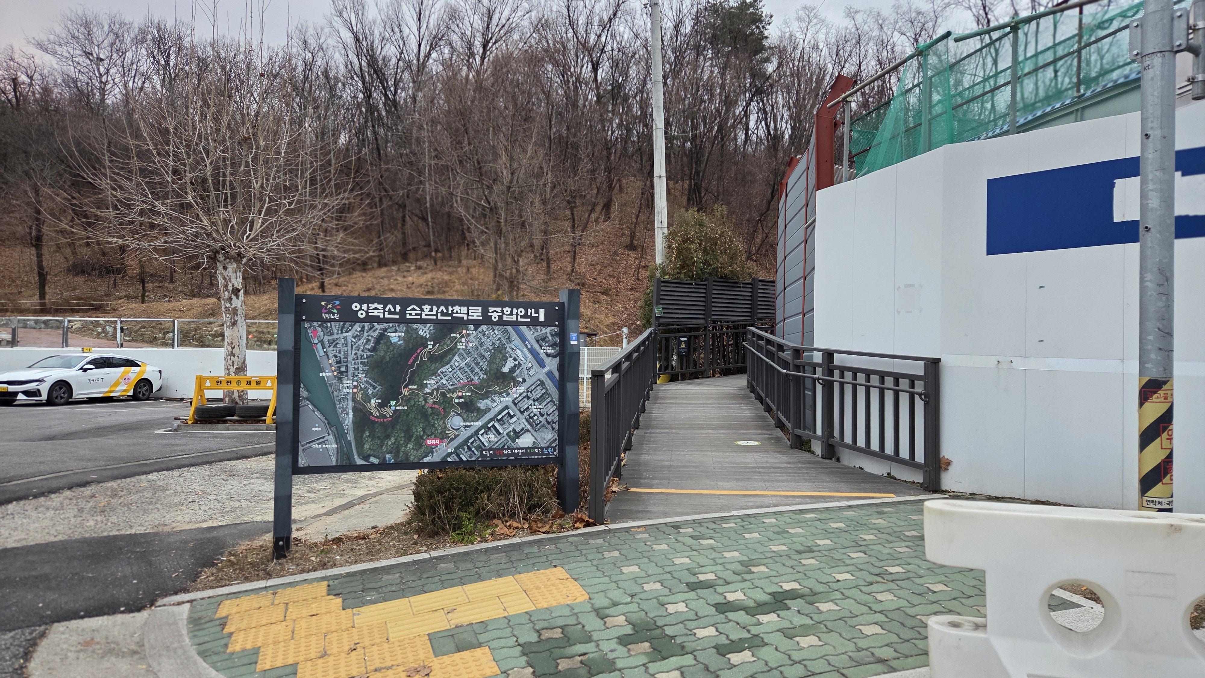인덕대학 삼거리에 있는 영축산 데크출입구