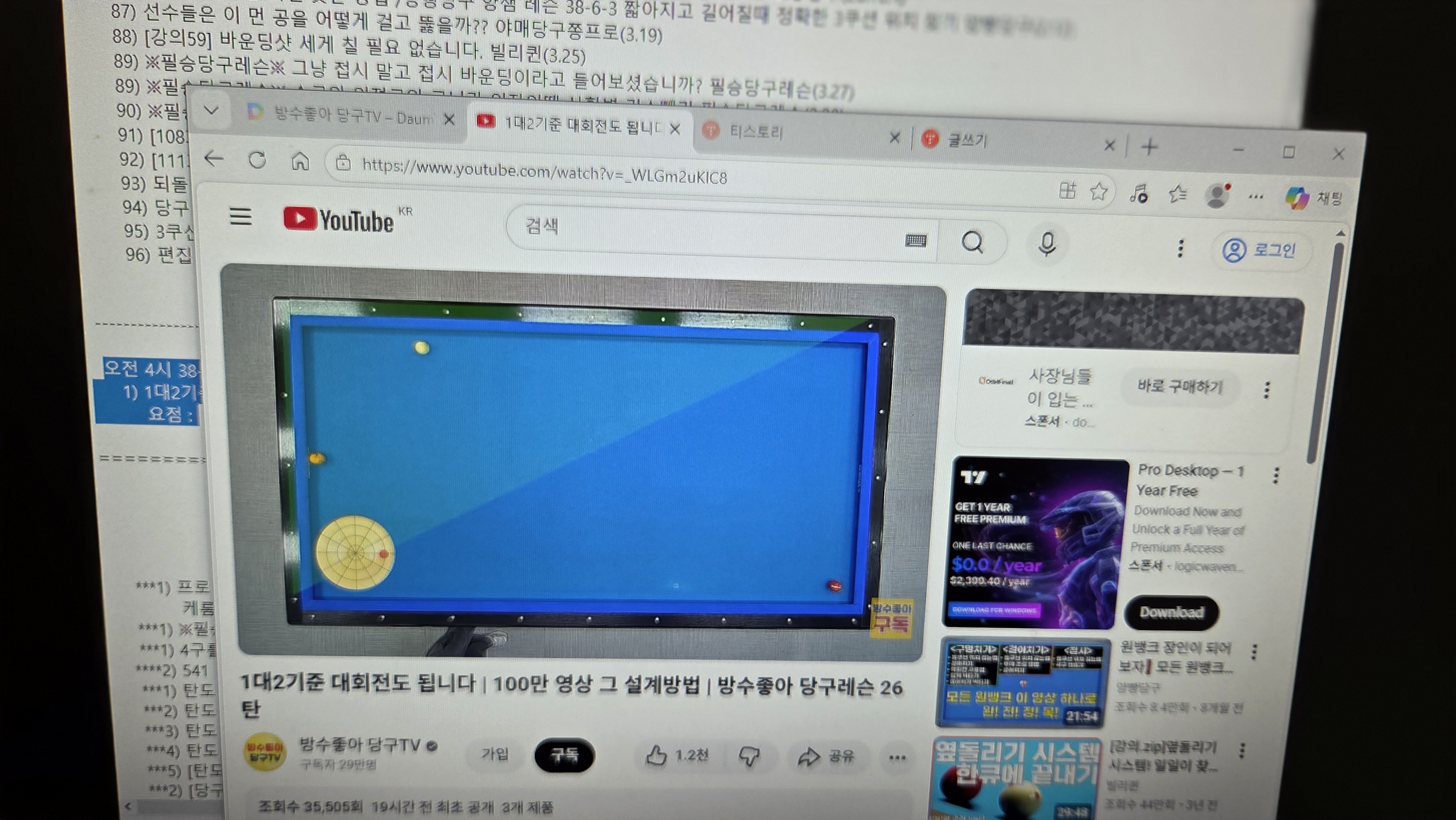 | 당구 동영상(앞돌리기 대회전 1적구 위치별 두께, 당점, 스트록)을 연구 (0) | 2026.02.16 |
