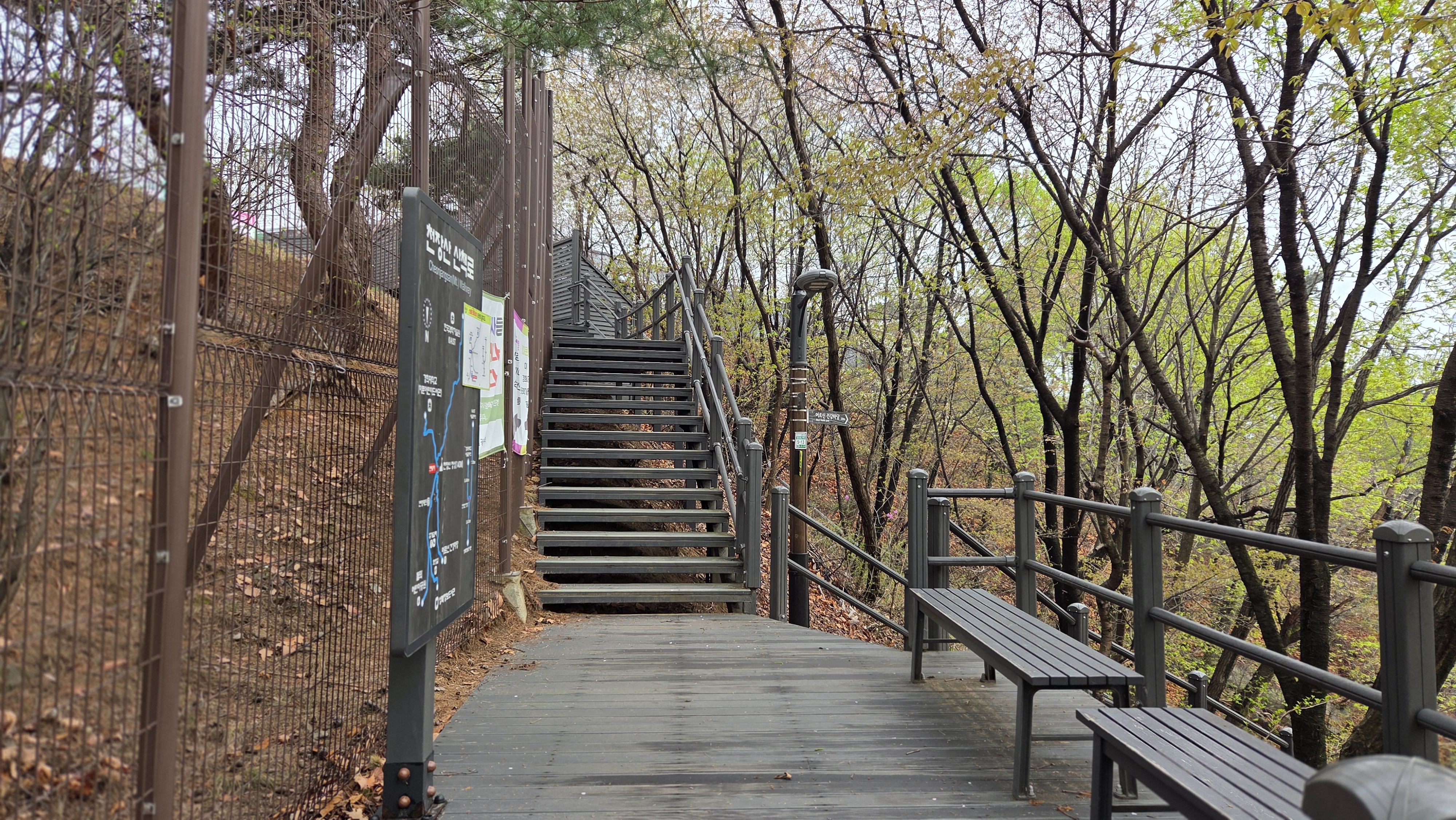 정상 근처 데크 삼거리계단