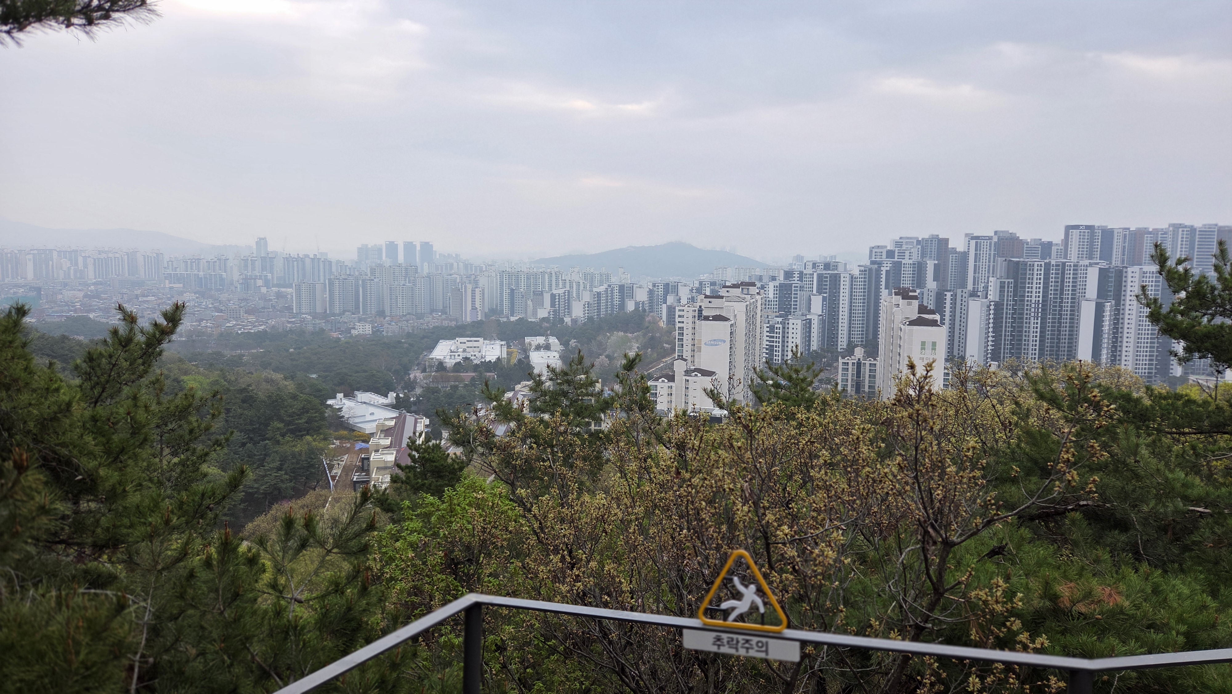 새벽에 비가 온 것 같은데 또 올려고 하는 것 같다. 7시 10분인 지금 아침에 저 멀리 떨어져 있는 의릉 뒷산인 천장산을 등산하려고 등산화를 싣고 있는데 비가 안 올 것 같다는 아내의 말에 우산없이 장곡사거리-구국민은행 사거리-월곡중학교앞 삼거리-천장산 청량공원 출입구로 들어가서 데크길로 올라갔다가 지름길인 언덕길로 올라가서 전망대에 도착했는데 안개가 잔득 끼어서 북한산이 보이지 않았습니다. 데크길-천장산 정상-데크하향길-데크 삼거리(좌 경희대, 우 과기원방향길)-경희대방향-동부능선 오솔길- 숲속도서관 -한국예술종합학교-의릉 및 천장산을 쳐다보고 큰길 뒷길 500m 정도 걸어서 돌곶이역-다이소-자이 아파트-장위 3동 주민센터쯤 왔는데 비가 올 것 같아서 아주 빠른 걸음으로 신화당구장 골목길-래미안 사거리를 지나 8시 36분경에 우리 아파트 정문으로 들어왔습니다.