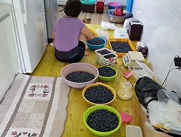 저는 떨어진 베리열매를 치웠고, 아내는 동네분이 오셔서 베리열매를 많이 사가시는 바람에 열매따는 시간이 줄었어요. 오전에 3시간정도 따서 열매를 선별하여 베리용기에 담아보니깐 총 14kg이 되었습니다. 아내하고 친한 귀촌한 이웃아주머니가 오셔서 1시간정도 따 주셨습니다.