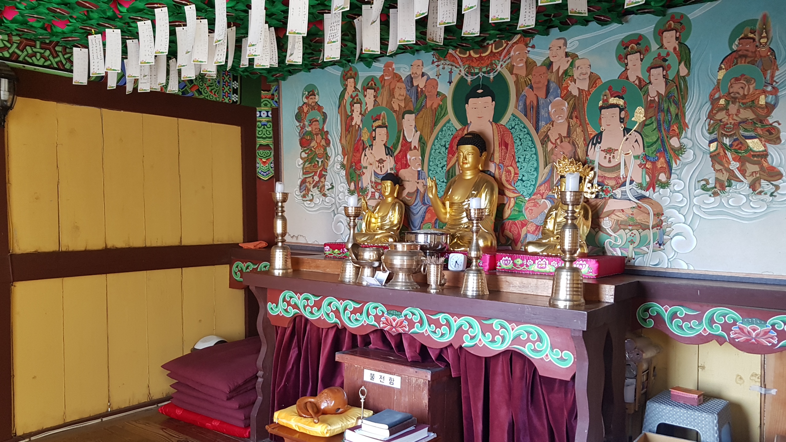 한참 남쪽으로가다가 산속으로 폭 3~4m 콘크리트길을 3km정도 꼬블꼬블 올라가니 주차장이 있어서 차를 주차시키고 이정표를 봤더니 도솔암까지 0.8km 산속으로 들어가는데 3개의 고개를 넘어야 도솔암에 도착한다고 해서 가는 도중에 이정표를 봤더니 0.66km로 기록되어 있다. 도솔암은 벼랑에 있는 두바위사이에 석축을 쌓고 그 위에 기초를 해서 도솔을 짓은 것 같다. 암자에서 다시 나와 옆길로 한 50m정내려가니 삼진각이 있는데 두군데 다 불상을 모셨다. 주차장으로 와서 시간을 보니 5시가 되었다. 오늘 일정은 땅끝마을까지 관광하고 올라가려고 했는데 2시간 이상 늦어져서 땅끝마을 가는 것은 다음 5월로 미루고 애마를 몰고 해남-강진-영암-무안가는 고속도로를 경유하여 서해안고속도로로 가다가 고창에서 정읍까지는 국도로 가다가 정읍에서 호남고속도로로 논산으로 해서 집에 오니 8시 30분이 되었는데 아내가 차려준 저녁을 먹었다.