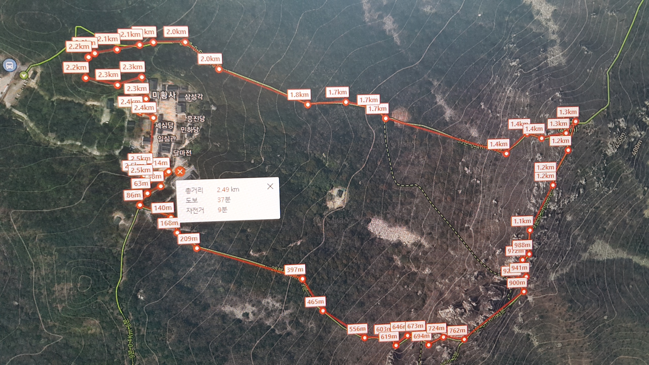 등산거리 : 왕복 1.3km, 소요시간 : 1시간
