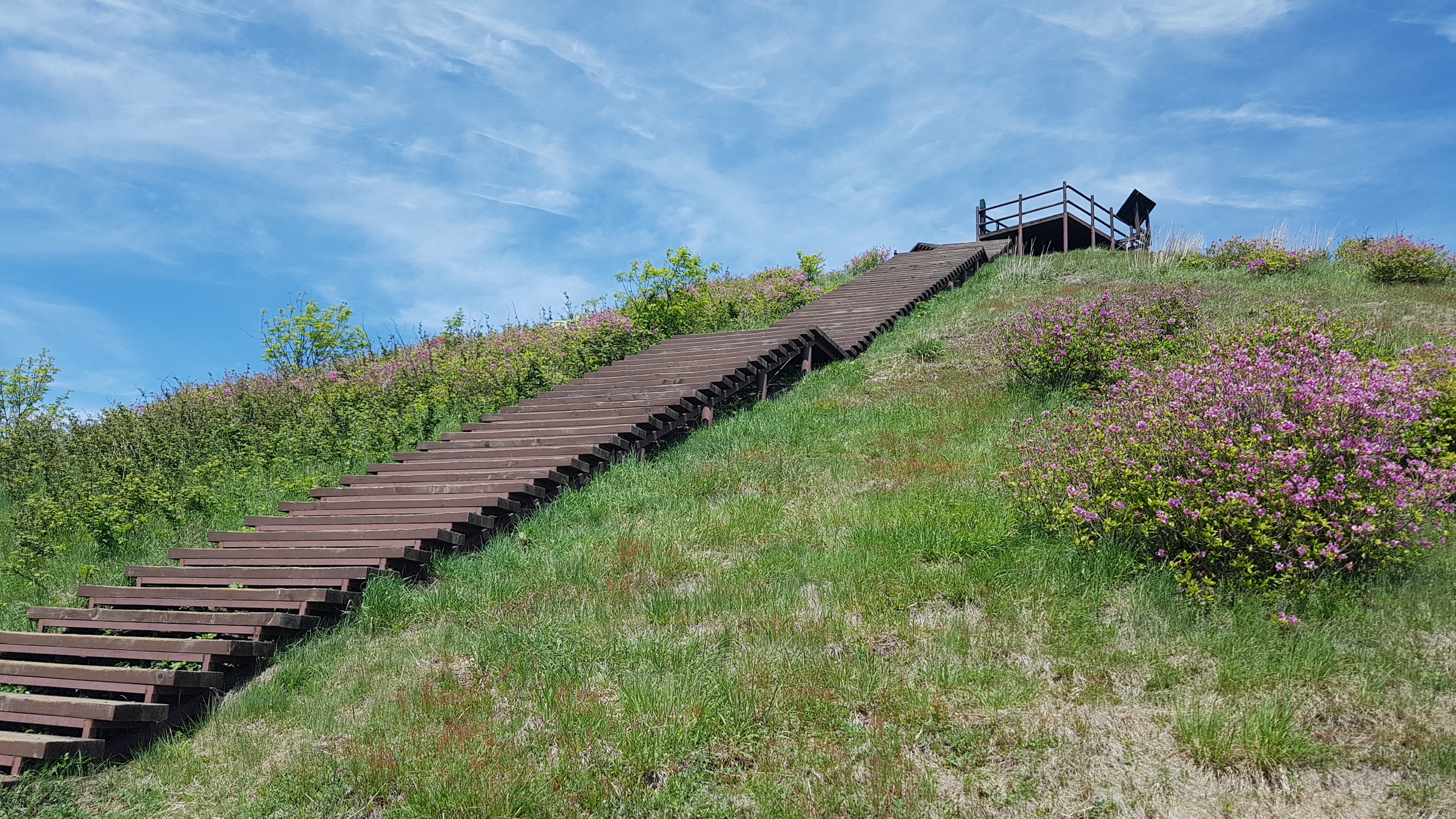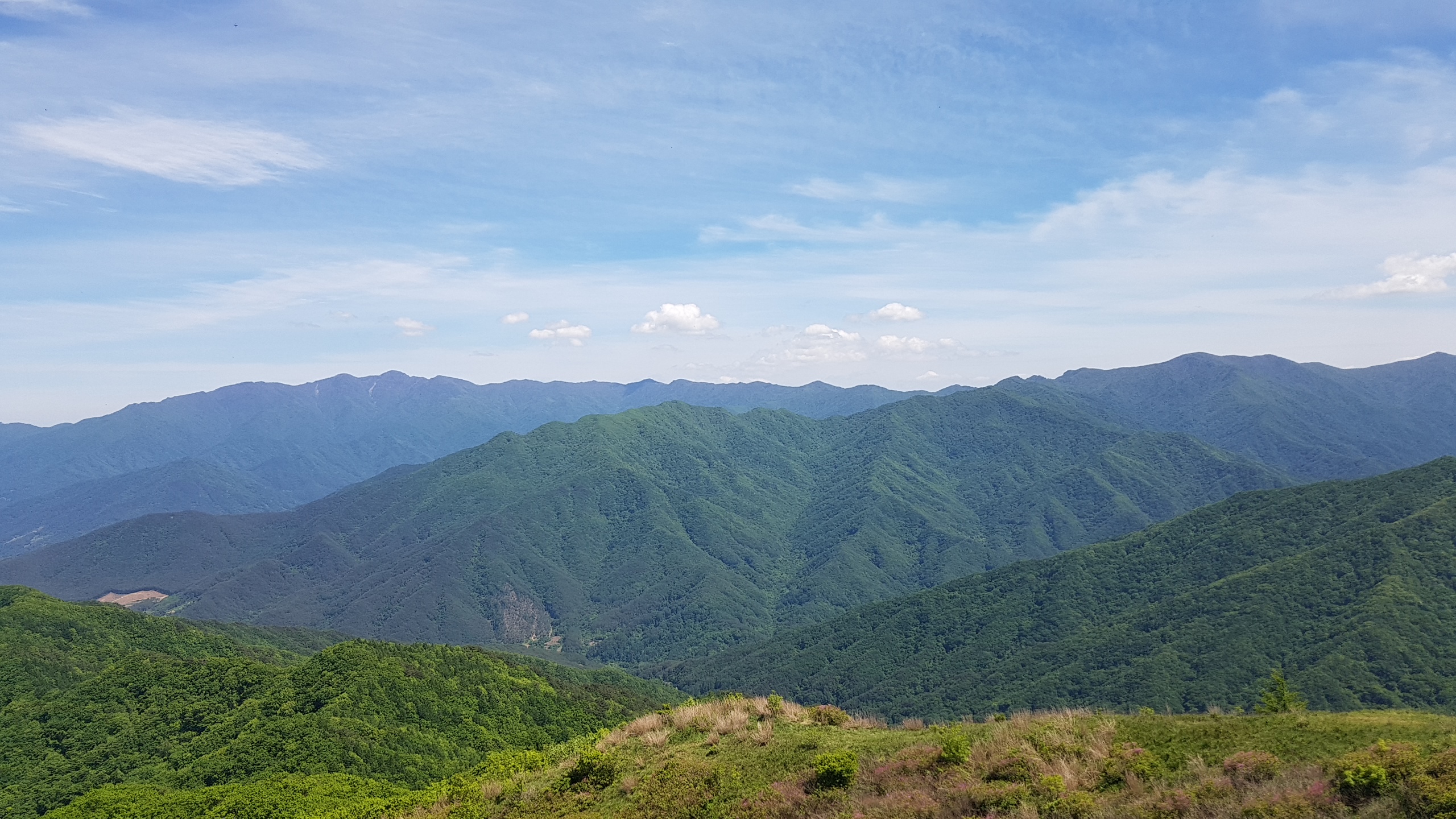 오전 11시 40분경에 동악산 도림사주차장을 출발하여 전북 남원시에 있는 지리산 허브밸리 뒤쪽에 있는 운지사 주변으로 애마를 몰고 갔습니다. 절이 작아 주차장이 없어서 임도옆에 차를 세웠습니다. 등산준비를 마치고 12시 50분경에 운봉아래에서 시작되는 큰 등산길로 왼쪽으로 가는 도중에 뒤에서 젊은이가 지나가길래 바래봉 올라가는 길을 물었더니 자세히 알려 주었습니다. 갈쳐준 큰길로 올라가면서 0.5km마다 쉴 수 있는 정자 5개를 지나 1시간 정도 올라오니깐 삼거리가 나오는데 거의 평지인 좌측 길로 지나가서 바래봉 바로 밑 철쭉군락지가 나왔습니다. 여기서부터 0,5km 정도 계단을 올라가는데 양방향 기슭이 전부 철쭉이 있는데 지난 주에 다 펴서 지금은 약간만 피어 있네요. 지친 몸 이끌고 꾸준히 한발 한발 계단을 딛고 올라갔더니 바래봉 정상(1,165m)에 도착(오후 2시 9분)하였습니다. 정상사진과 저 멀리들 보이는 유명한 봉우리들을 사진에 담고 좀 쉬다가 출발했던 장소로 마라톤하면서 내려왔더니 3시 정도 되었습니다. 운지사를 보지 않아서 100m 정도 떨어진 아담한 운지사를 구경하고 3시 20분경에 애마를 몰고 오수 IC로 들어가서 순천-완주고속도로를 경유하여 집에 도착하니 오후 5시가 되었습니다. 오늘 등산 걸음이 32,000보 정도 되었네요.