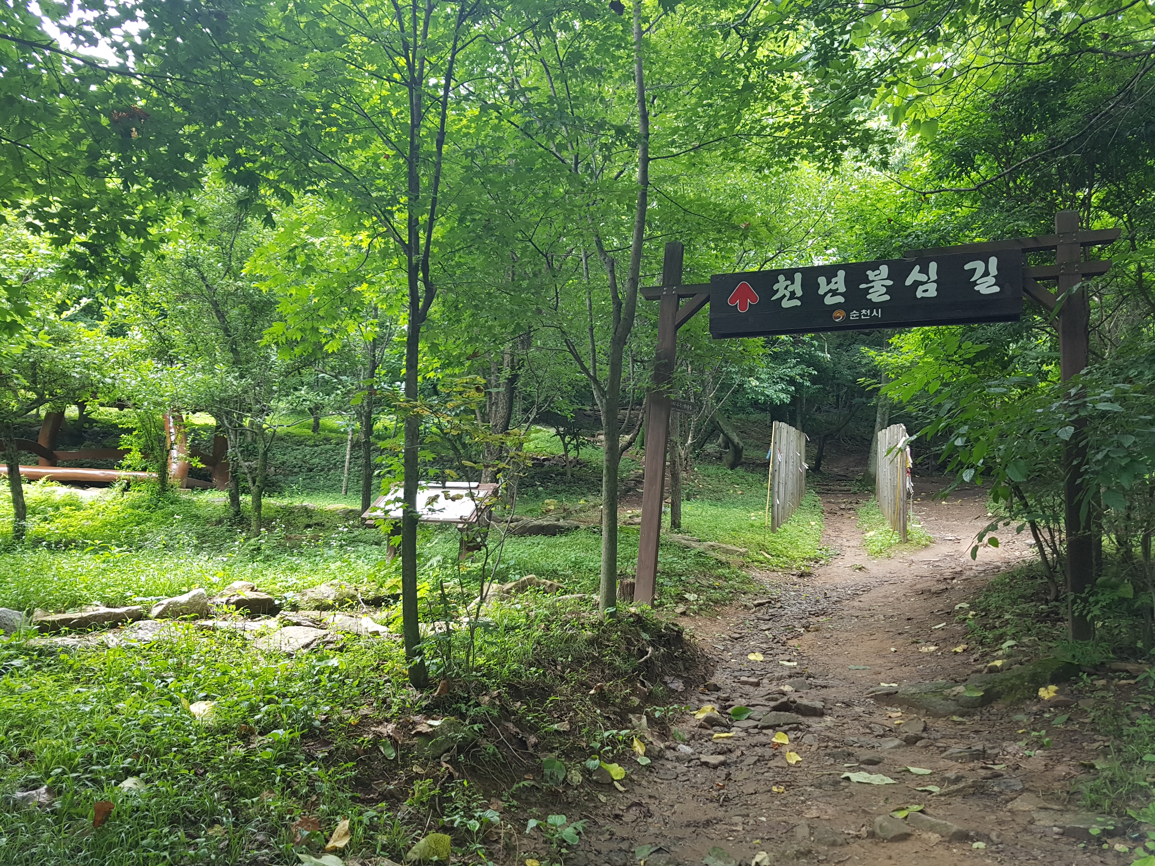 정상사진을 담고 좌측으로 0.8km 정도 내려오니 소굴 목재에 도착하였습니다. 여기서는 직접 선암사로 가는 길도 있는데 나는 곧장 스님들이 주로 고개를 넘어 다녔다는 대굴목재로 갔는데, 이 길은 평탄하고 흙으로만 다져진 1km 정도 되는 길인데 상수리 참나무가 많아서 주변에 쑷가마터가 여러 개가 있었습니다. 그 고개에서 좌측으로 1.5km 내려오니깐 50년 정도 되는 편백나무가 군락을 이루고 있었습니다. 주변에 야생 체험길도 잘 만들어져 있어서 사진을 여러 장 찍고 1km 정도 내려오니깐 선암사로 올라기 직전 길과 만나께 되었습니다. 선암사 계곡에서 세수를 하고, 손수건으로 닦으면서 계곡 물소리를 들으면서 1km 정도 내려오니 제2주차장에 도착하였습니다. 11시 45분경에 조계산 제2주차장에서 애마를 몰고, 전남 광양시에 있는 전국 100대 명산인 백운산(1,228m)으로 출발하였습니다.