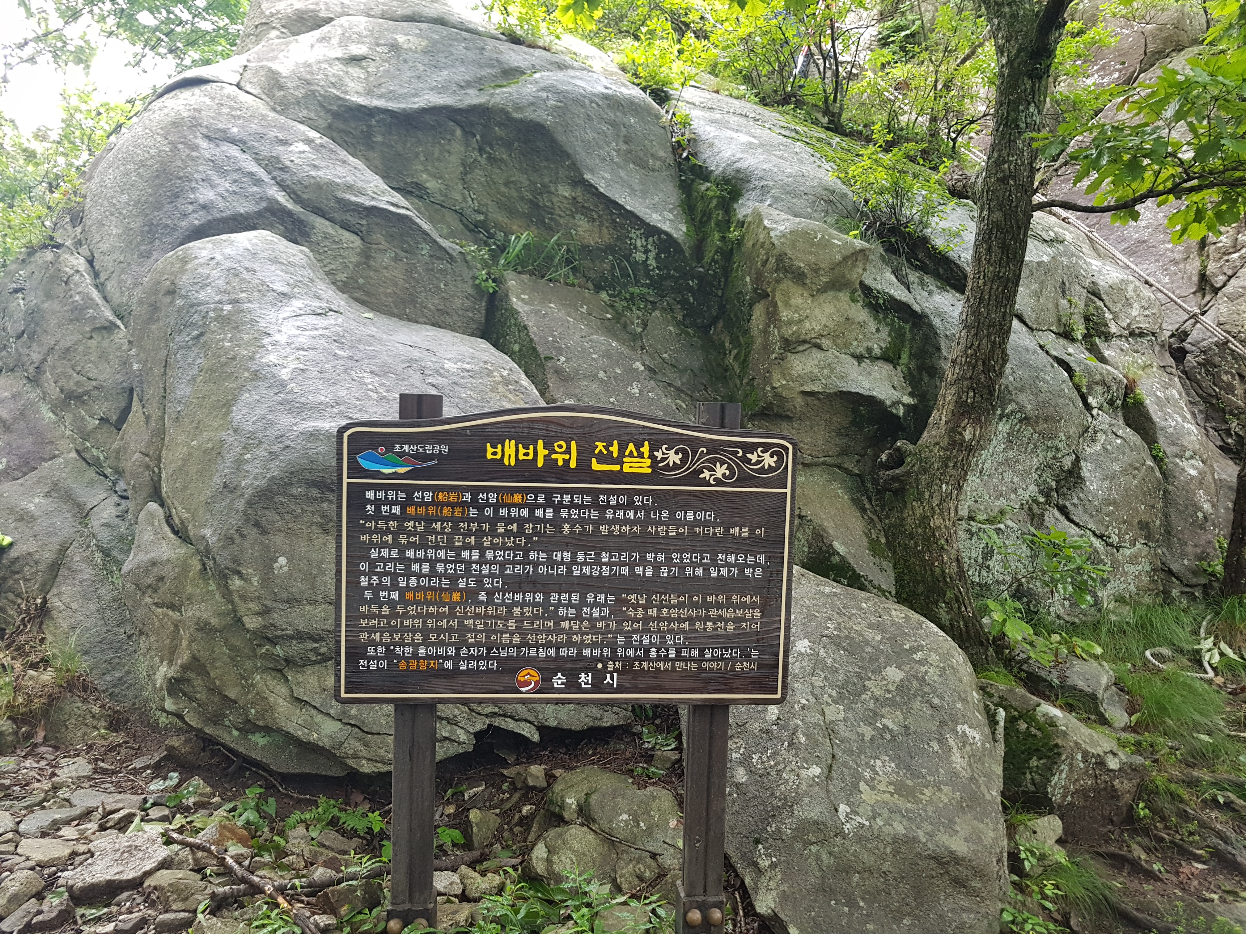 새벽 5시 20분경에 아침식사를 하고, 아내가 싸준 점심 도시락과 등산에 필요한 물품들을 등산배낭에 넣고, 오전 5시 47분에 애마를 몰고 호남고속도로, 완주-순천 고속도로, 남해고속도로를 경유하여 선암사 가는 국도를 타고 전남 도립공원인 조계산 제2주차장에 도착하니 7시 54분이었습니다. 등산 준비를 마치고 8시 5분경에 조계산을 등산하기 시작하였습니다. 마스크를 쓰고 매표소를 지나 선암사 계곡 옆으로 쇄석을 깔아놓은 길로 어제 많은 비가 내린 계곡 물소리를 들으면서 올라가면서 비석거리 탑, 순천 전통야생차 체험관을 지나 1.5km 정도 올라가니 선암사가 있어서 한 20분간 사찰을 보면서 사진을 찍고 사찰 뒤편에서 오른쪽으로 2km 정도 계곡길과 능선길을 올라갔더니 조계산 정상(884m, 장군봉)에 도착하였습니다. 덥고 습기가 많고 돌계단으로 올라와서 그런지 엄청 힘이 들었습니다.