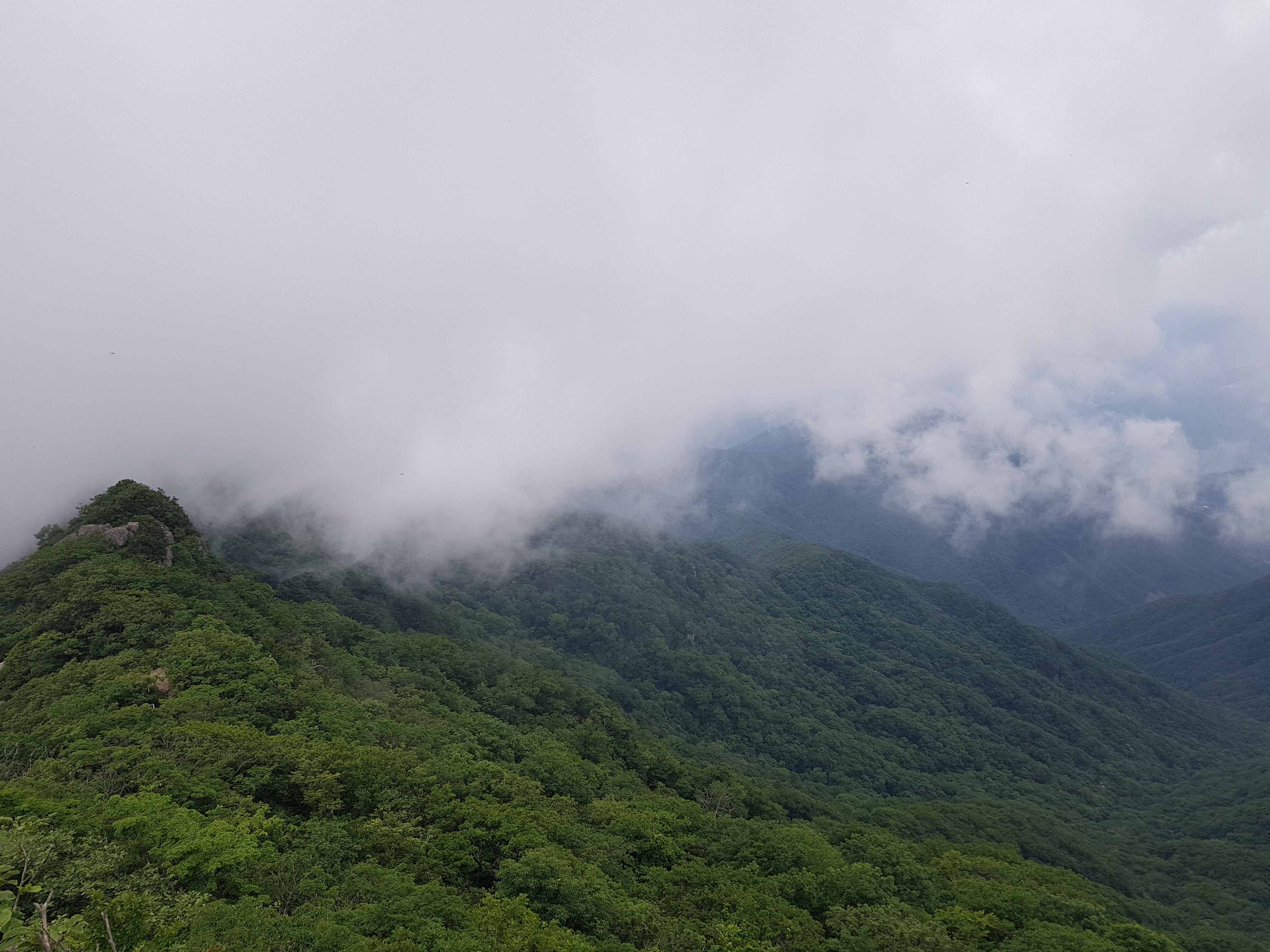 신선대에서 본 구름낀 백운산 정상