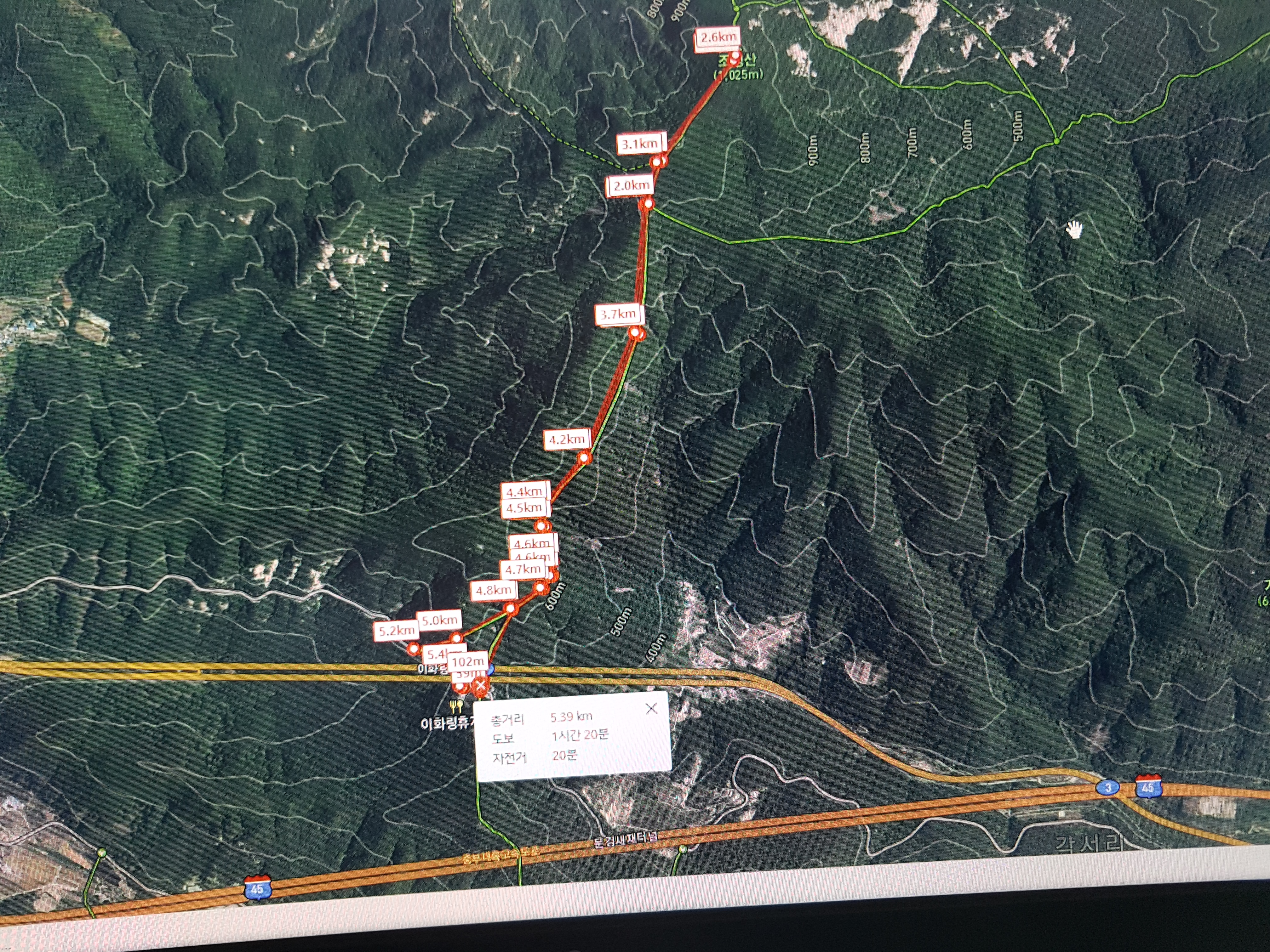 집(6시반 출발) - (132.2km 1시간 47분) 칠보산 주차장 - (22.9km 27분) 조령산 - (143.9km 1시간 52분 ) 집
