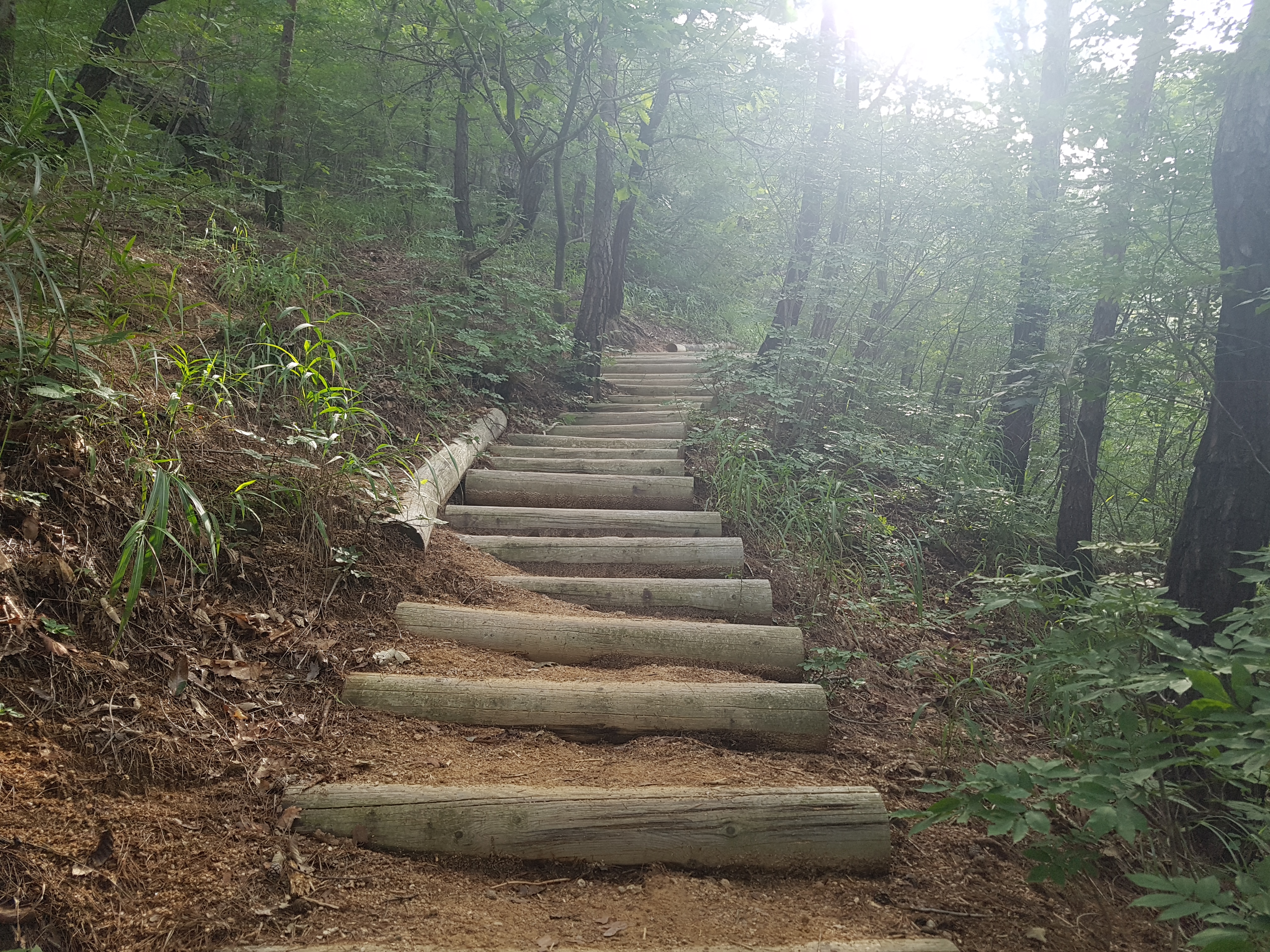 등산가는 새벽길에 안개가 끼고 해가 솟아 올라왔네요.