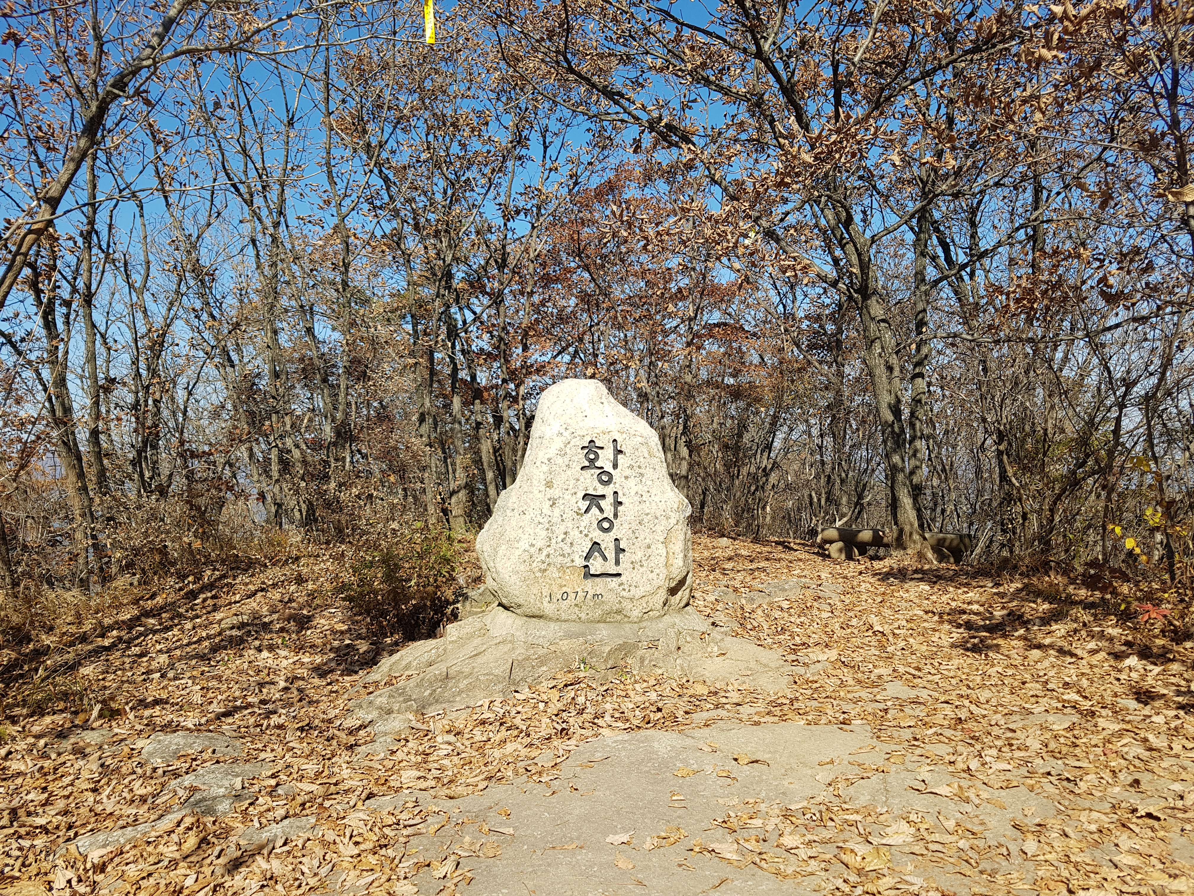 오전에 100대 명산인 황장산을 등산하기 위해서 아내가 해 준 아침밥을 먹고, 새벽 5시 30분에 차에 시동을 걸고 네비에 도로명 주소(경북 문경시 동로면 여우목로 2319)를 치고 네비대로 차를 몰고 중부고속도로를 달리는데 안개가 많이 끼어 증평IC를 놓쳐서 진천IC에서 유턴하여 다시 증평IC로 나와서 증평-괴산국도를 경유해서 생달 1리 동네 뒤로 들어가서 사과농장 앞마당에 차를 파킹한 후 등산배낭을 메고 오전 8시 40분에 등산을 시작하였습니다. 그 바람에 40분이 더 걸렸습니다. 생달쪽에서 등산하면 촛대바위와 낙타바위 등등 볼 수가 있기때문에 도상에서 등산로를 공부했는데 2주전에 왔다가 찾지 못했는데 오늘은 더 연구해서 묘소뒤로 난 계곡 숲길로 들어갔는데 700m 정도 올라가도 촛대바위가 보이지 않아서 능선을 찾아 올라갔더니 등산로가 있어서 다행인데 0.8km 위치라 촛대바위는 저 아래에 있어서 하산할 때 가기로 하고 그냥 능선타고 수리봉, 895봉, 황장재, 감투봉, 황장재삼거리를 지나 열심히 올라갔더니 황장산 정상(1,078m)에 올랐습니다. 시간을 보니 오전 11시 10분였습니다. 정상에서 기념사진을 찍고 주변을 둘러보고 사진에 담은 후에 돌아왔던 길로 내려오다가 수리봉에서 촛대바위가 있는 능선으로 내려가 바위밑으로만 내려갔습니다. 몇 개의 큰 바위를 지나 쳐다보니 큰 바위 꼭대기에 밧줄이 2개 있어서 일단 밧줄을 잡고 올라갔더니 바위중턱인데 주변을 보니 멋있는 바위들이 많아서 사진에 담고, 두번째 밧줄은 너무 가파르게 매어 있어서 한참 망설이다 밧줄을 잡고 온 힘을 다하여 올라갔더니 낙타등같이 넓은 바위가 있고 그 밑에 우뜩 솟은 촛대바위가 있는데 촛대바위는 너무 높아서 올라가지 못하고 여러 장 사진만 찍고, 여러 개의 바위, 숲과 계곡을 지나 사과길로 나오니깐 처음 올라갈 때의 길에서 아래 100m 떨어져 있는 길였습니다. 사과밭길을 돌아 주차한 곳에 왔는데 아래로 보니 지도상에 나와있는 미륵이 있어서 50m 내려가서 사과밭옆에 있는 미륵석상을 사진에 담고 바로 차를 몰고 주흘산으로 출발하였습니다. 황장산은 생달 1리마을에서 8개 정도의 산봉우리를 넘어가야 정상이 나오는데 봉우리와 봉우리사이는 거의 다 칼바위능선으로 이루어져 있어 멋있지만 조심해야 할 것 같습니다.