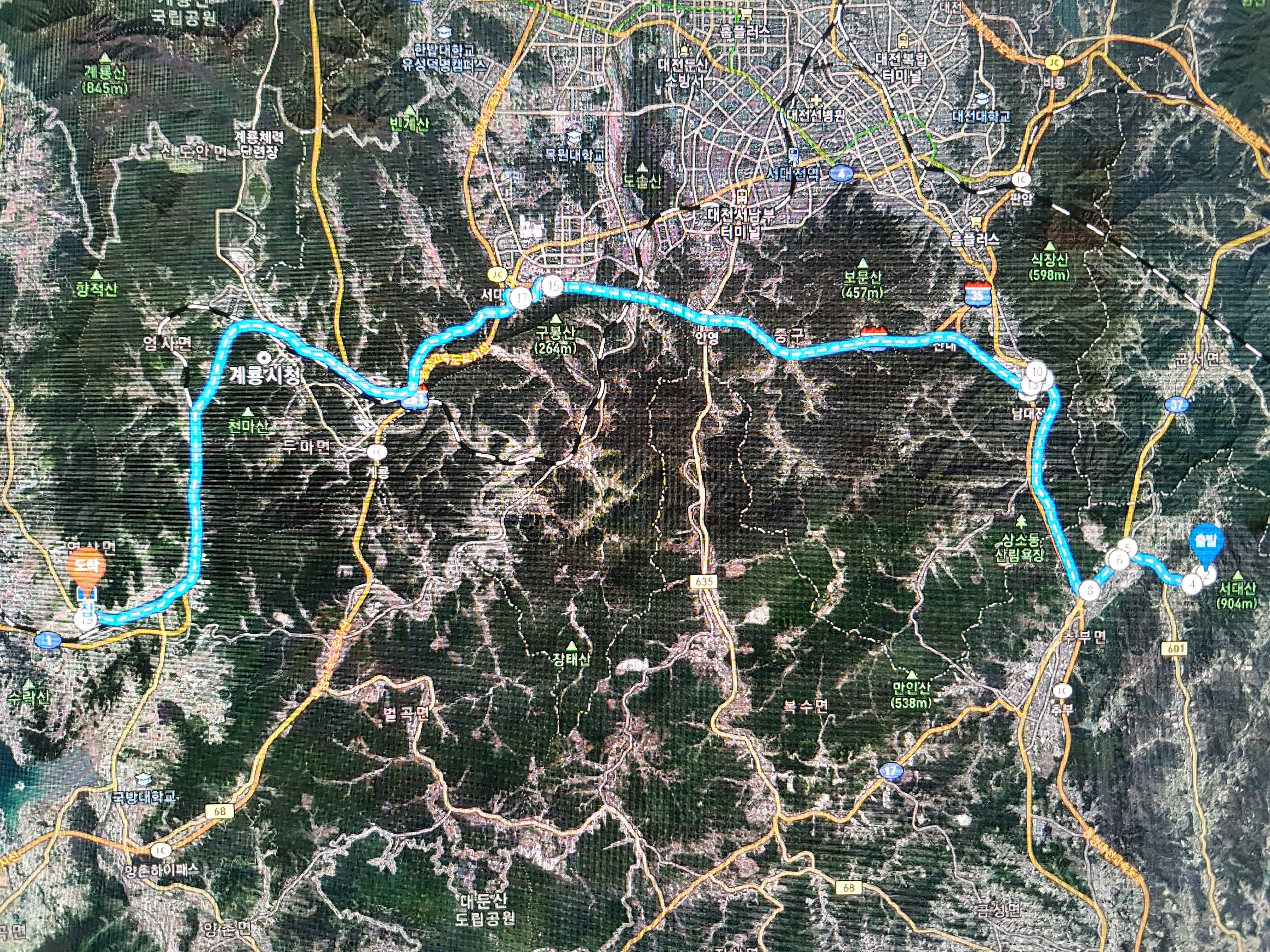 주흘산 월복사뒤 - 서대산수련원 143.3km, 1시간 48분