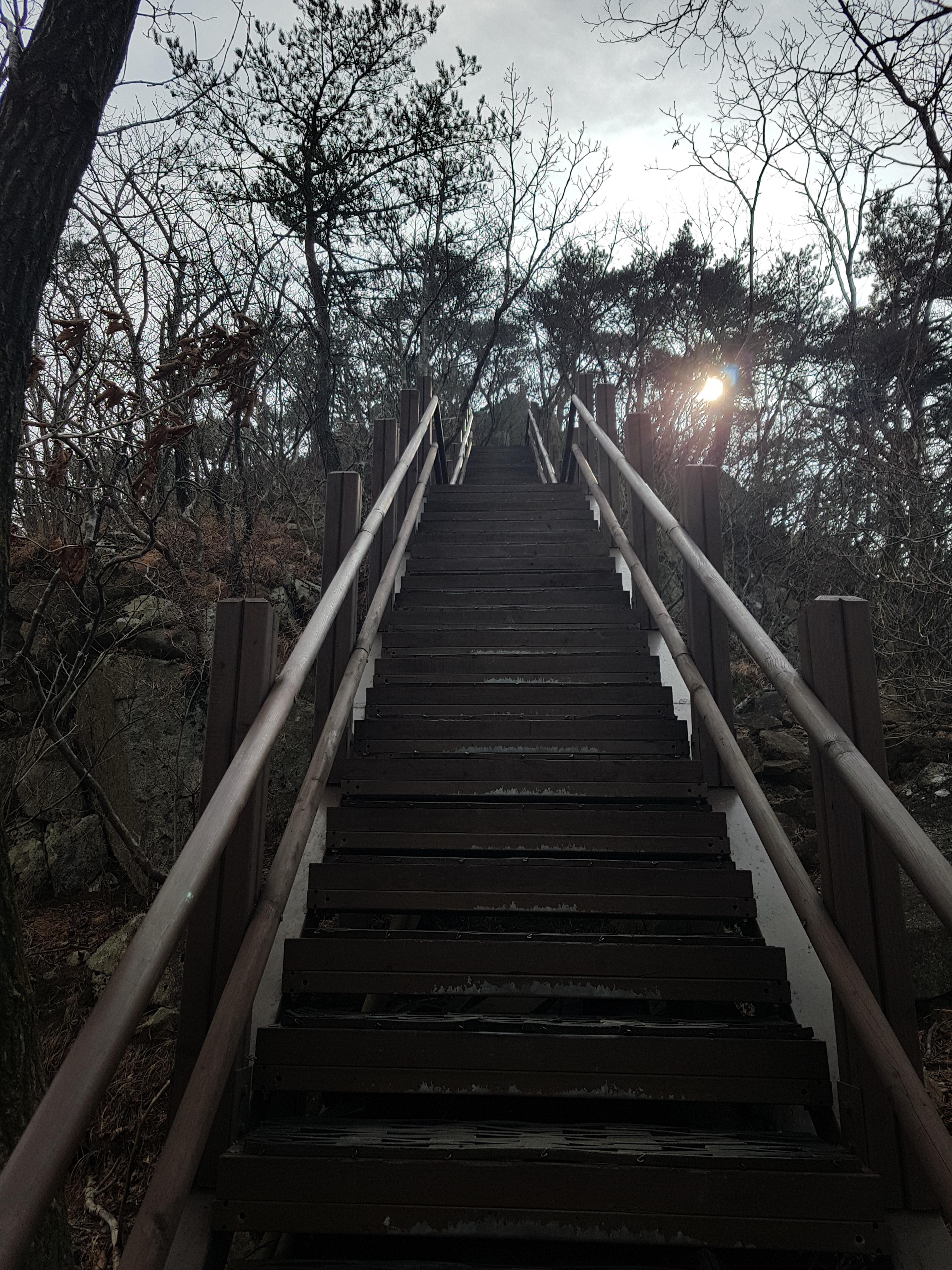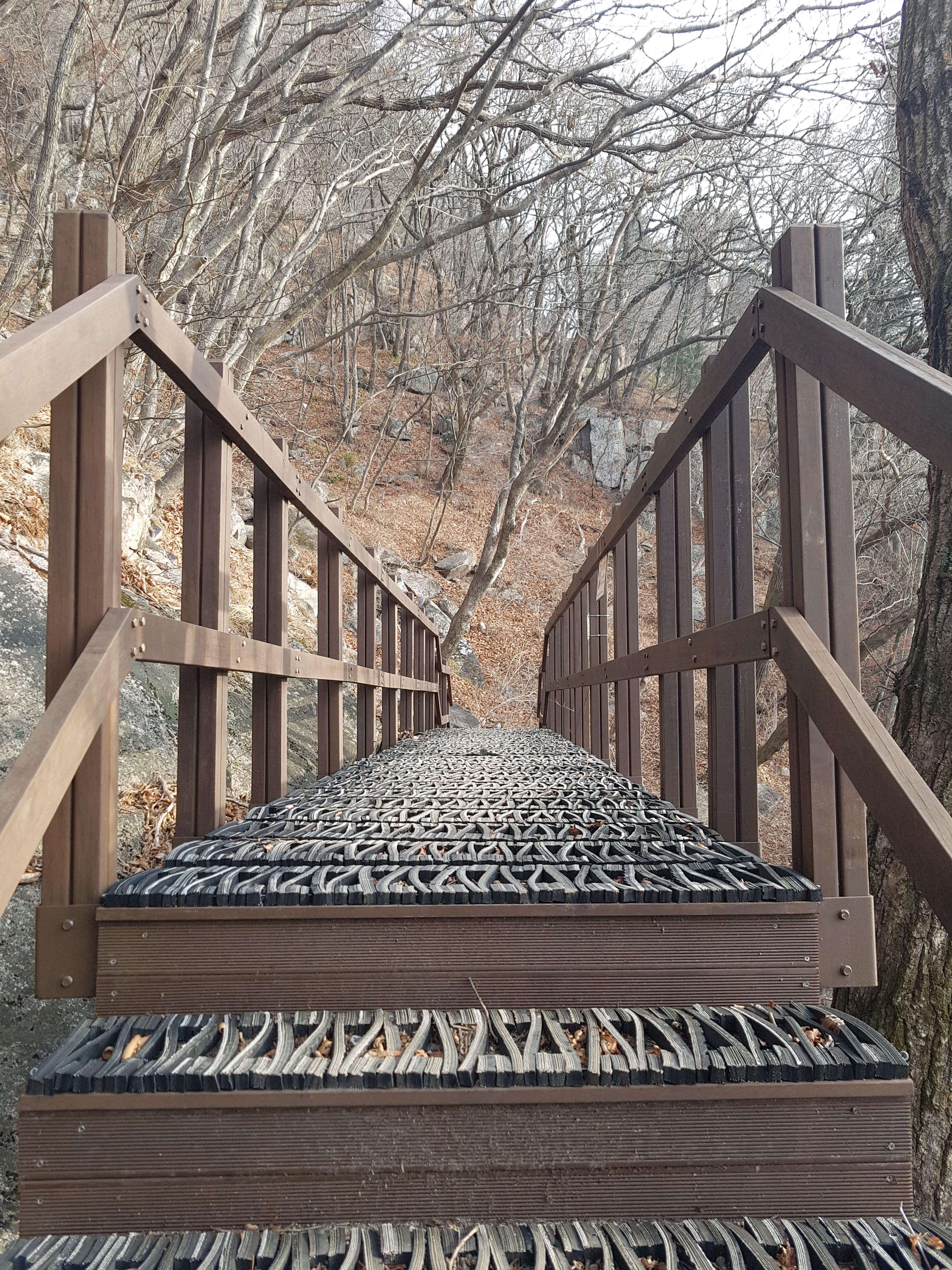 서봉가는 길에 있는 작은 봉 올라가는 목재계단