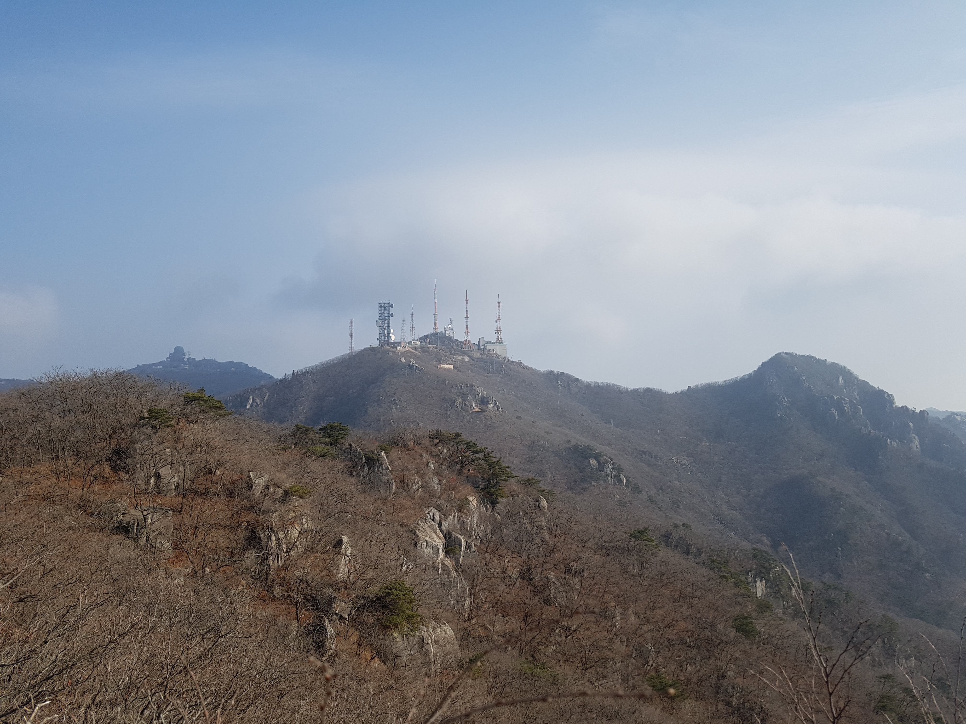 동봉근처에서 찍은 정상주변에 세워진 철탑들