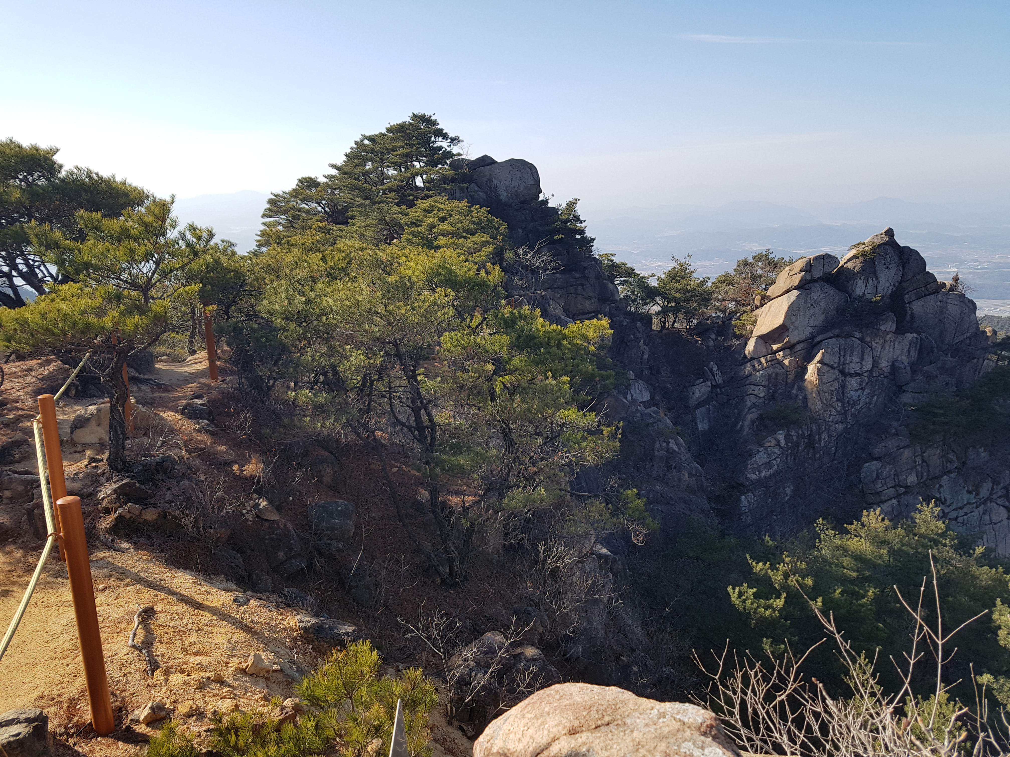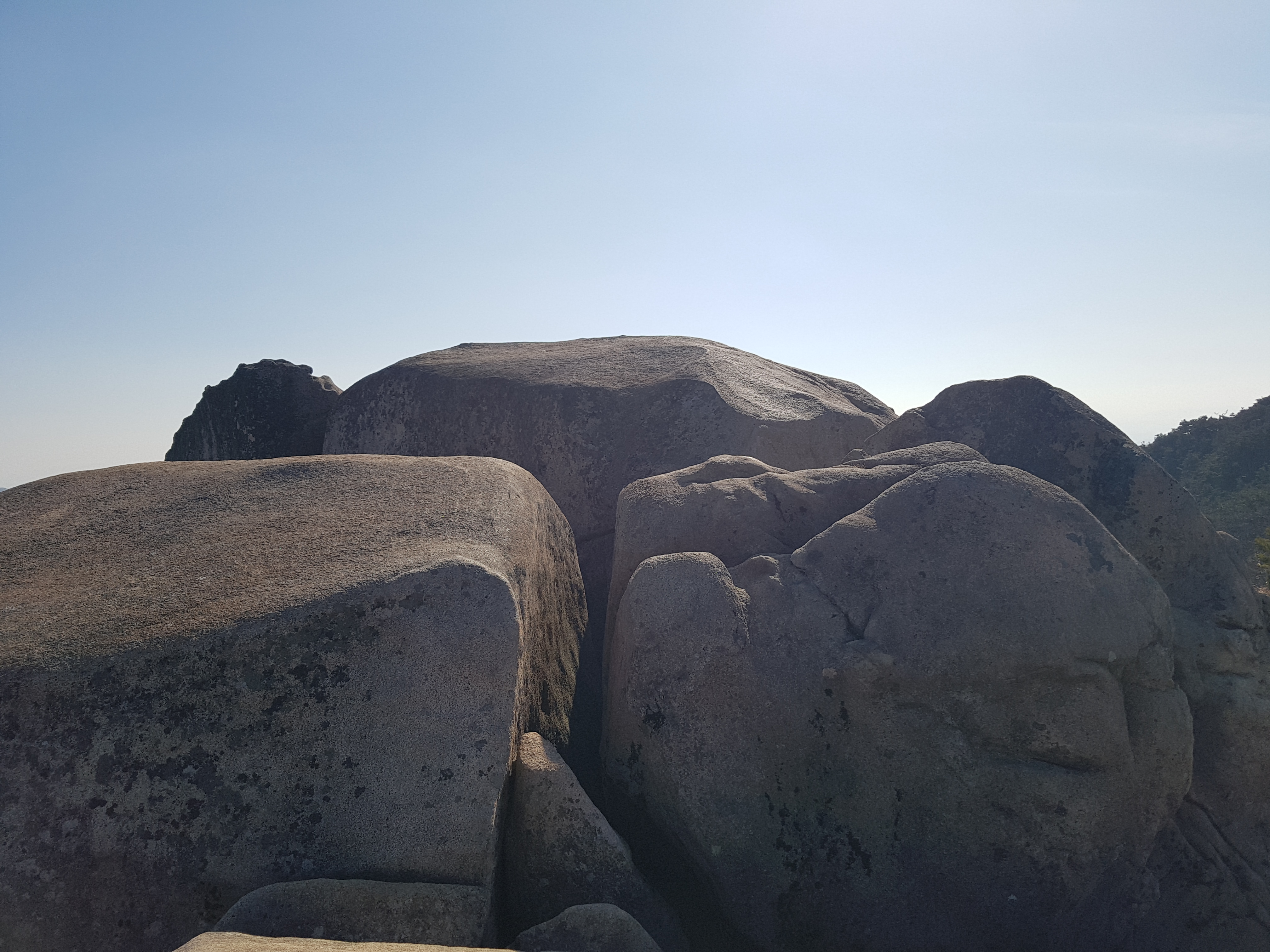 좌측성벽으로 올라갔다가 600m 정도 내려갔더니 동문이 있고, 100m 내려가서 창녕조씨 시조비가 있고 다시 100m 내려와서 남문을 보고 성안 100m가서 창녕조씨 시조가 태여났다는 연못을 보고 다시 남문으로 와서 남쪽으로 400m정도 심한 언덕길을 올라갔더니 커다란 배바위가 있는데 여러 개 바위 위로 올라가서 봐도 사람배인지 타는 배인지 먹는 배인지 비슷하지도 않아 그냥 그런가보다하고 내려와서 하산코스를 제일 난코스인 3코스를 선택하였는데 어디있는지 표시도 없었다. 하여간 남쪽산 끝쪽을 선택하여 갔더니 3코스라고 쓰여있지는 않았지만 도상에 점선으로 나와있어서 능선을 타고 내려오는데 정말 절벽을 어렵게 내려왔고 바위들을 건너뛰어야되고 절벽밑으로 떨어지지말라고 위에 줄을 매어놓아 정말 난코스를 1km정도 내려왔더니 2코스와 합쳐지는 곳까지 내려왔다. 200m정도 내려와서 길에서 100m 가파른 곳에 도성암이 있어서 올라갔더니 6개의 크고 작은 절이 있어 둘러보고 400m 더 내려와서 주차장에 오후 3시 1분에도착하였다. 차몰고 고속도로로 고령-성주-김천 내륙고속도로와 경부고속도로로 대전에 와서 논산국도를 경유하여 오후 5시 20분경에 집에 도착하였다.