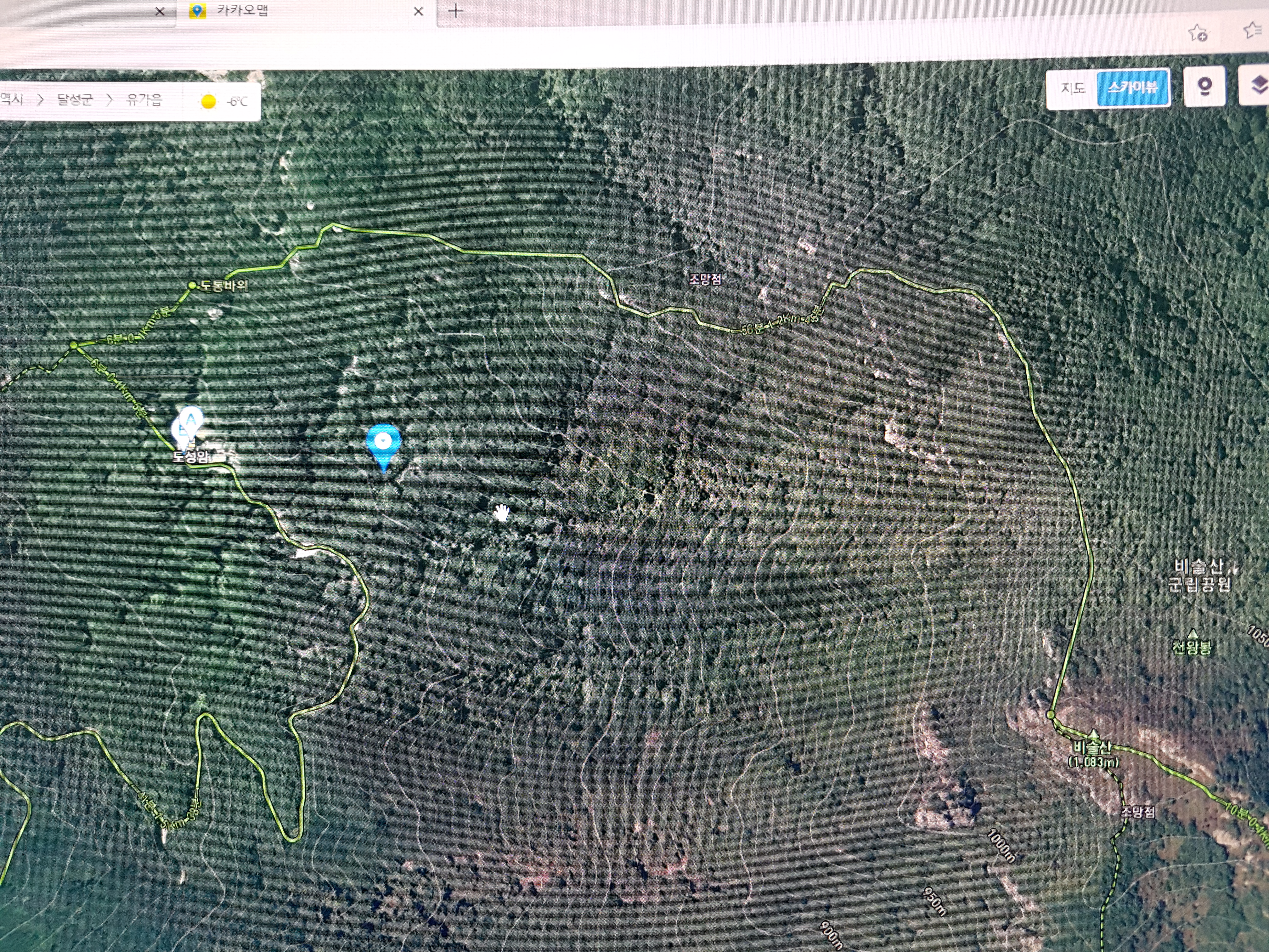 3) 산행코스 : 도성암 주차장 - (0.3km) 삼거리(우측) - (0.1km) 도통바위 - (1.3km) 비슬산정상 왕복