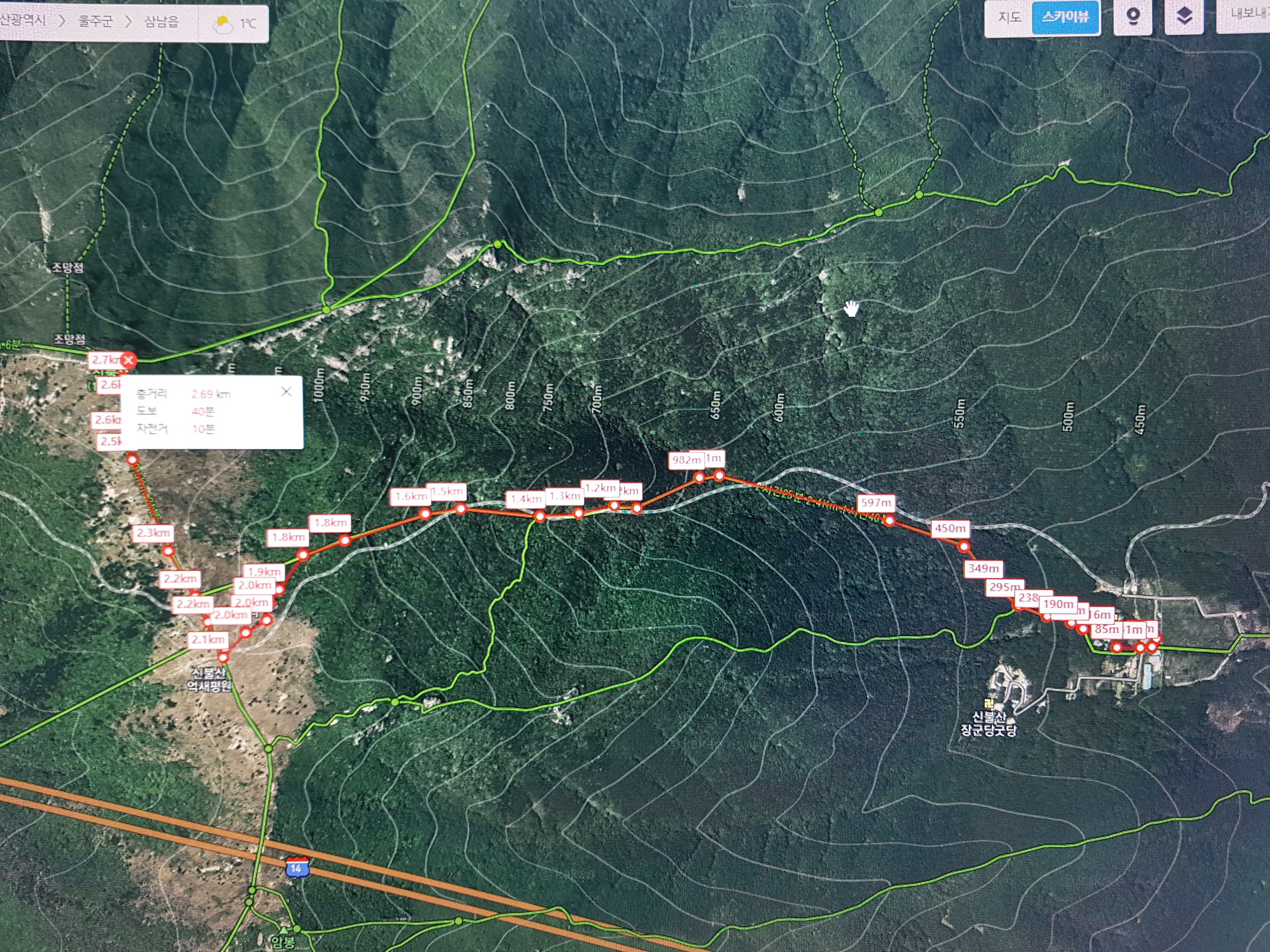 신불산 등산로와 등산거리