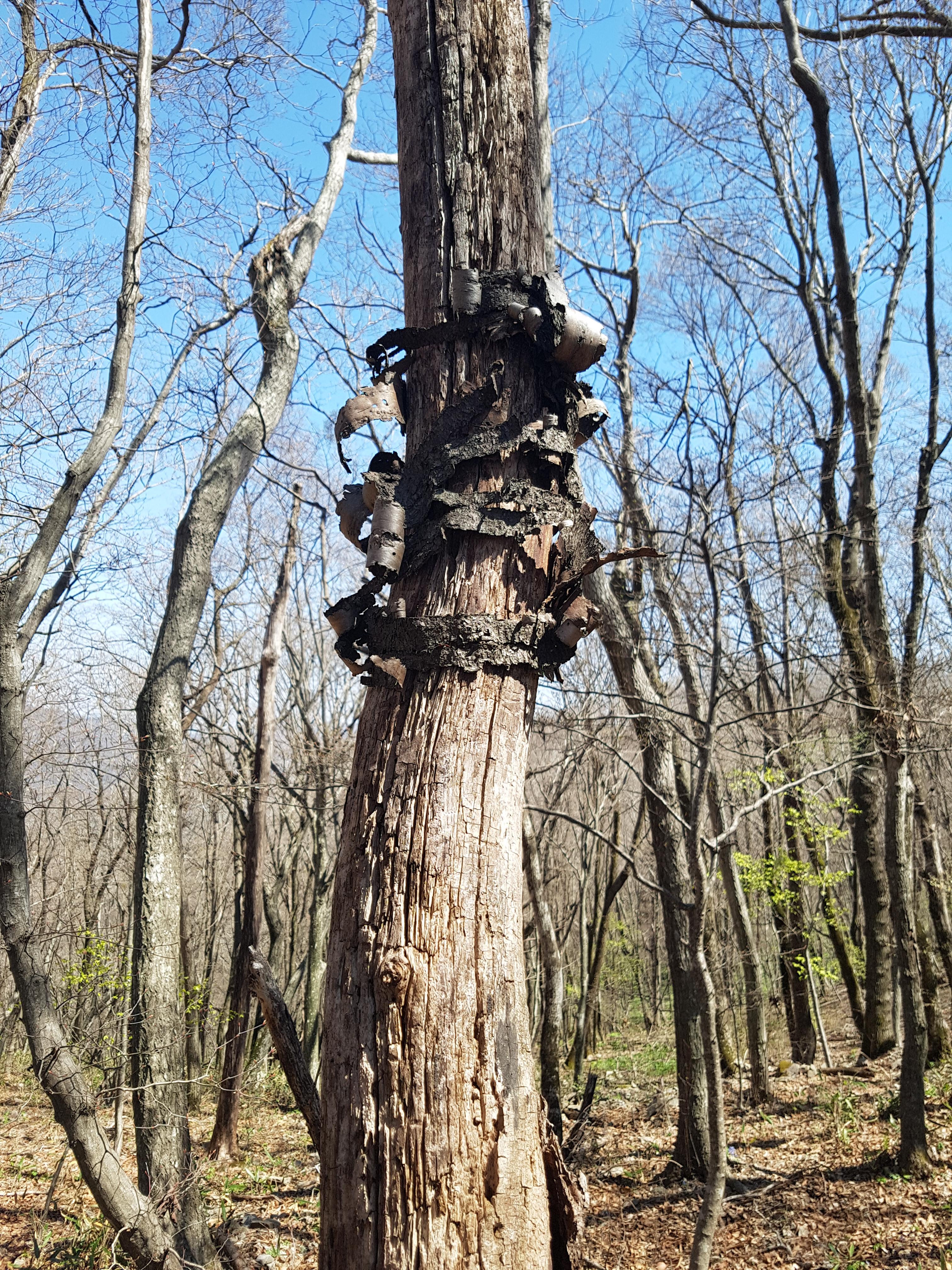 죽은 갈참나무에 열려서 말라죽은 벗섶