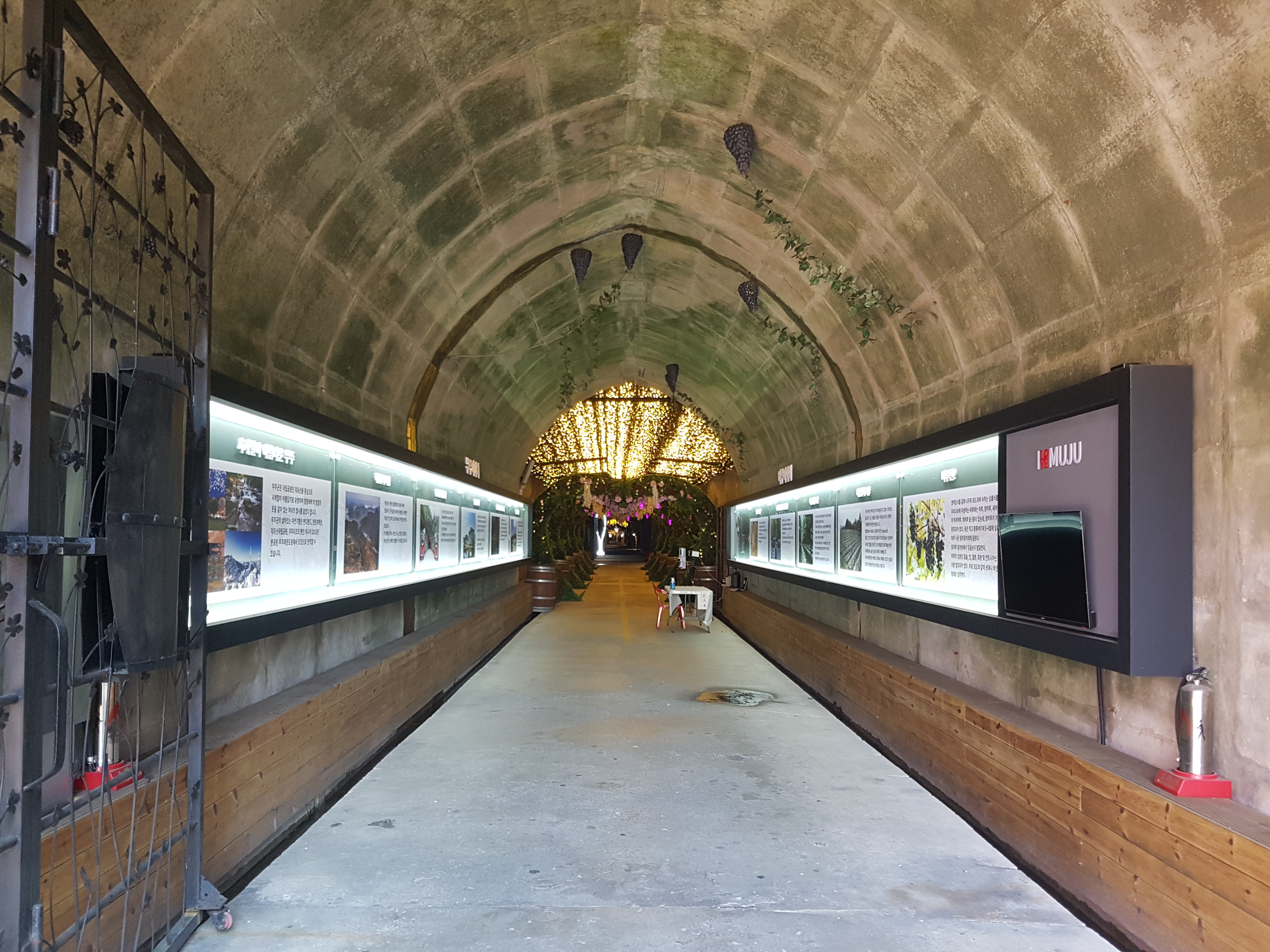 적상산을 등산하고 안국사 절로 들어가서 구경하고, 적상산 갈지자형 길을 내려오다 무주 머루와인 동굴 주차장에 차를 파킹하고 매표소에서 2,000원 관람표를 구입한 후에 옆에 있는 300m 되는 머루와인 동굴 속으로 들어가서 굴속면에 각종 그림과 아치를 보고 머루와인 판매소에서 머루와인 선물세트와 구워 먹는 치즈를 구입한 후에 굴 밖으로 나오니깐 매표소에서 따뜻한 오미자차 한 컵을 주셔서 맛있게 마셨다.