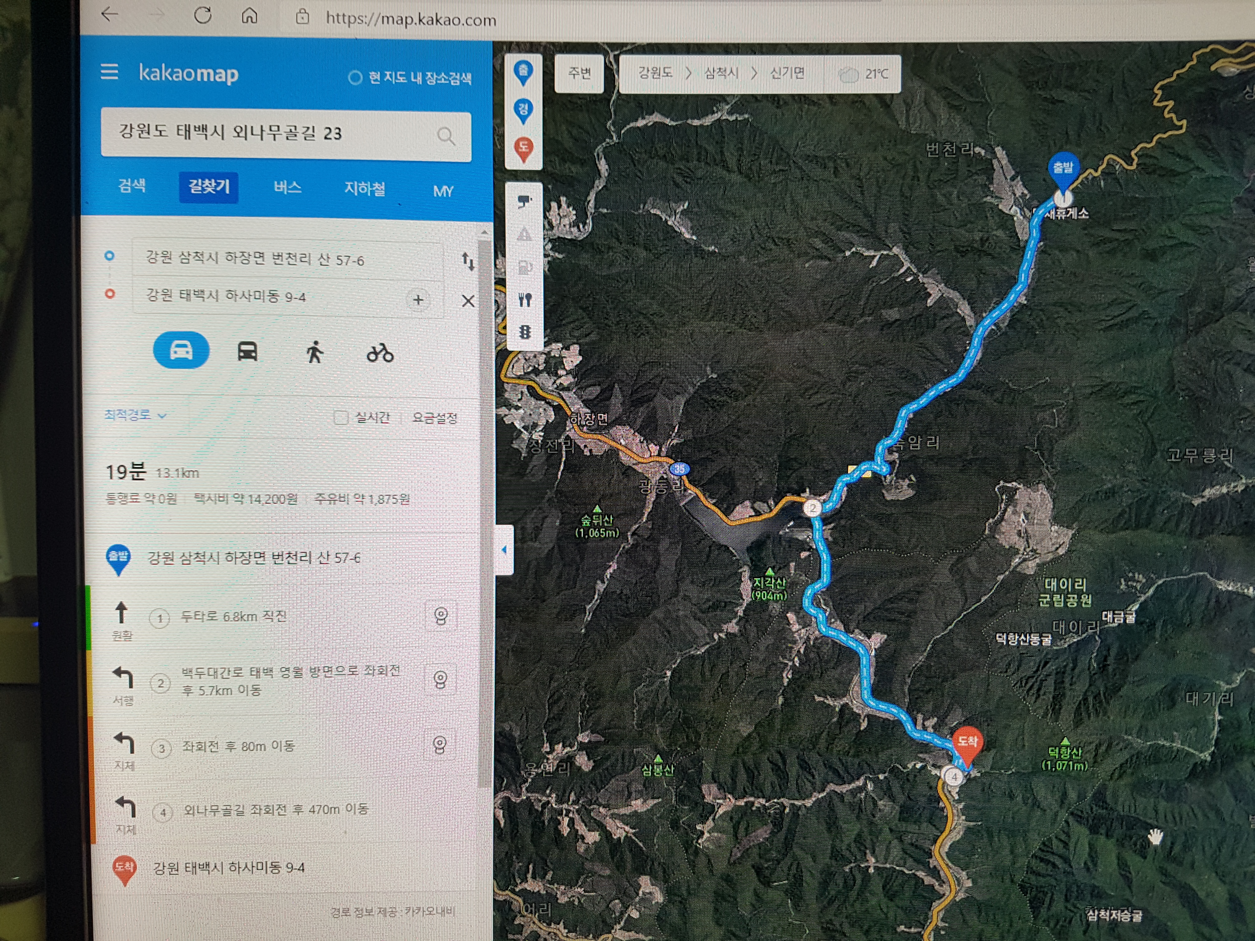 댓재휴게소 - 예수원 : 19분, 13.1km, 주유비 약 1,875원