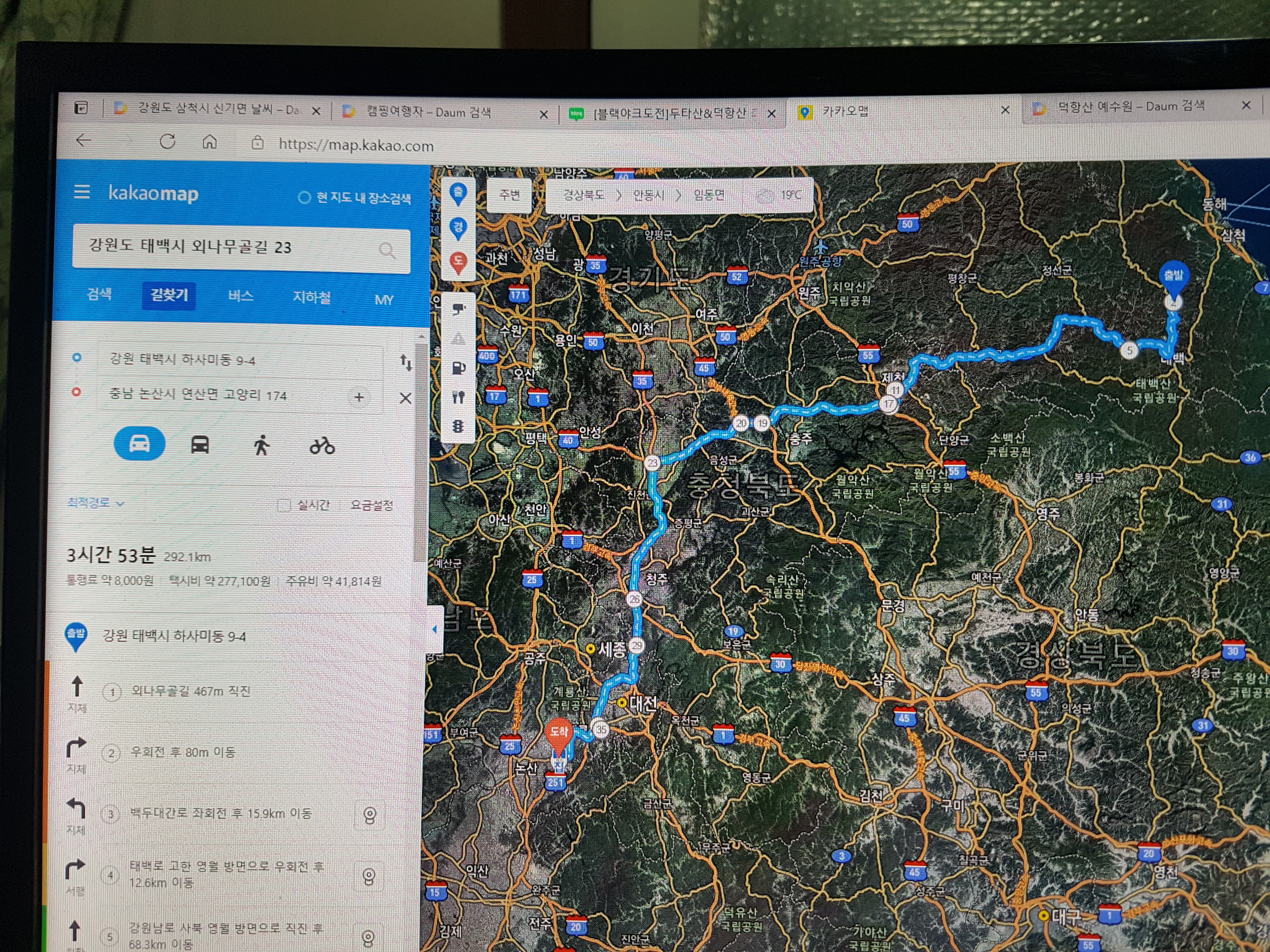 집 - 댓재분기점 : 3시간 52분 291.7km 통행료 약 8,400원 주유비 약 41,756원