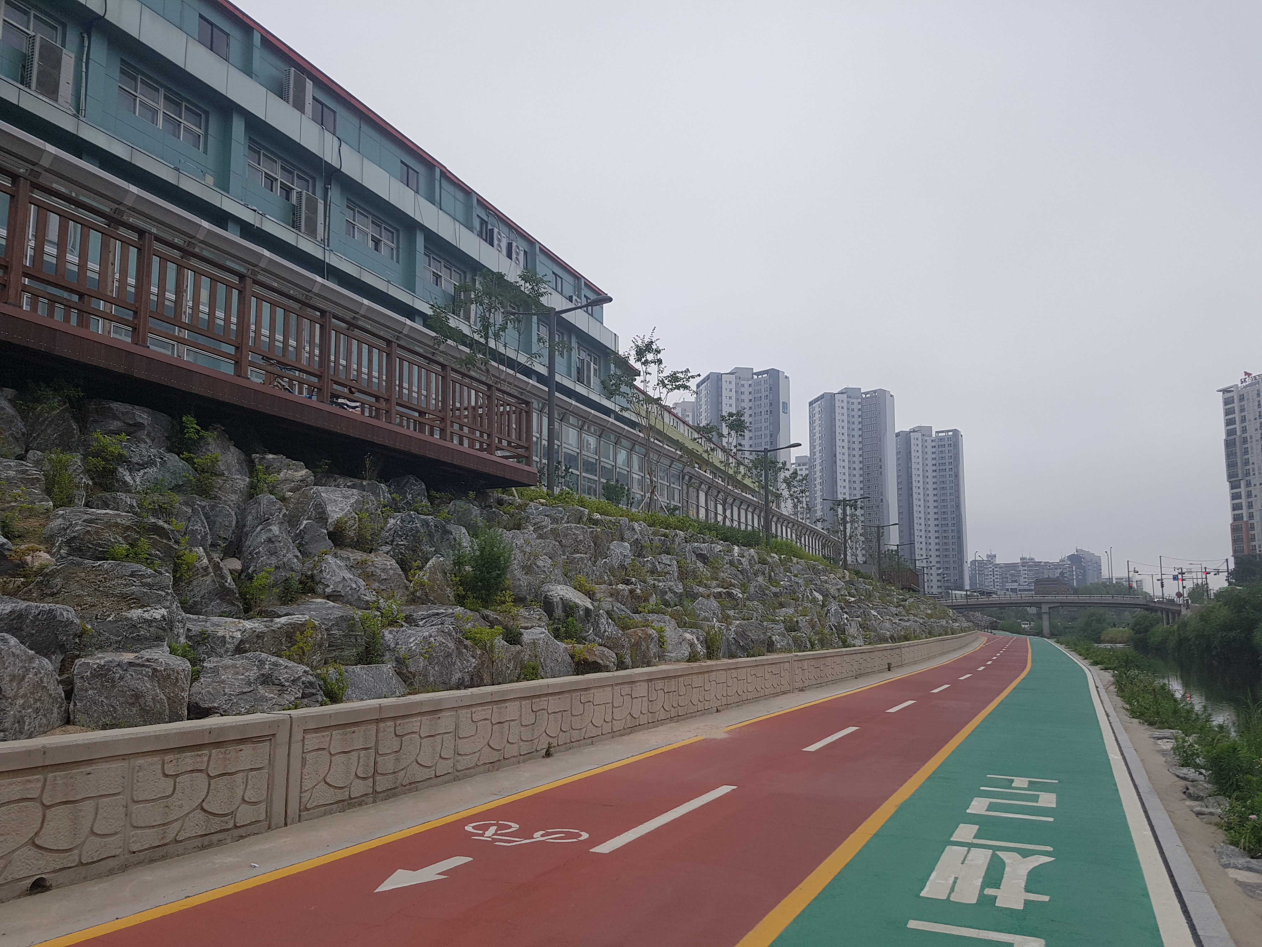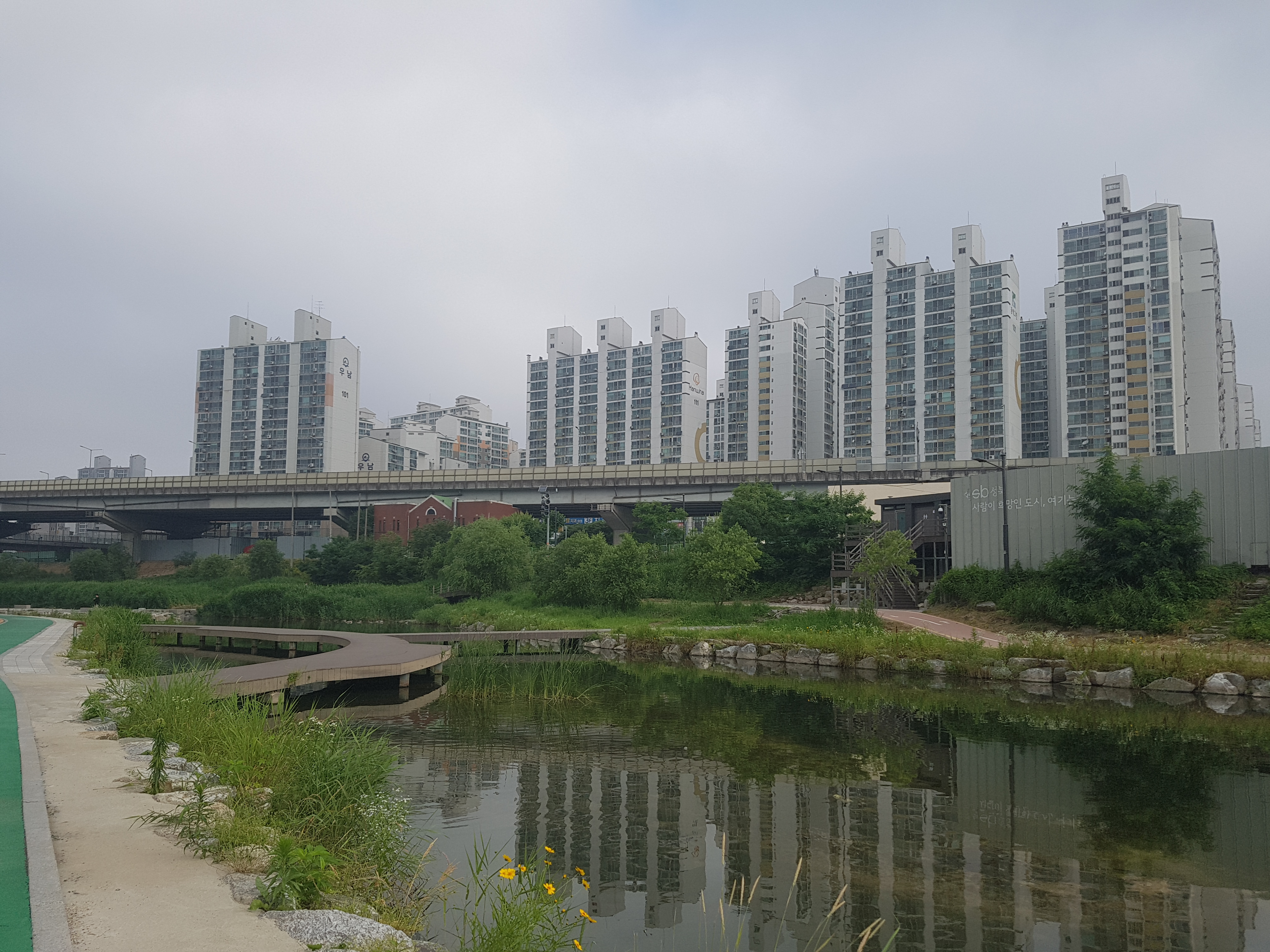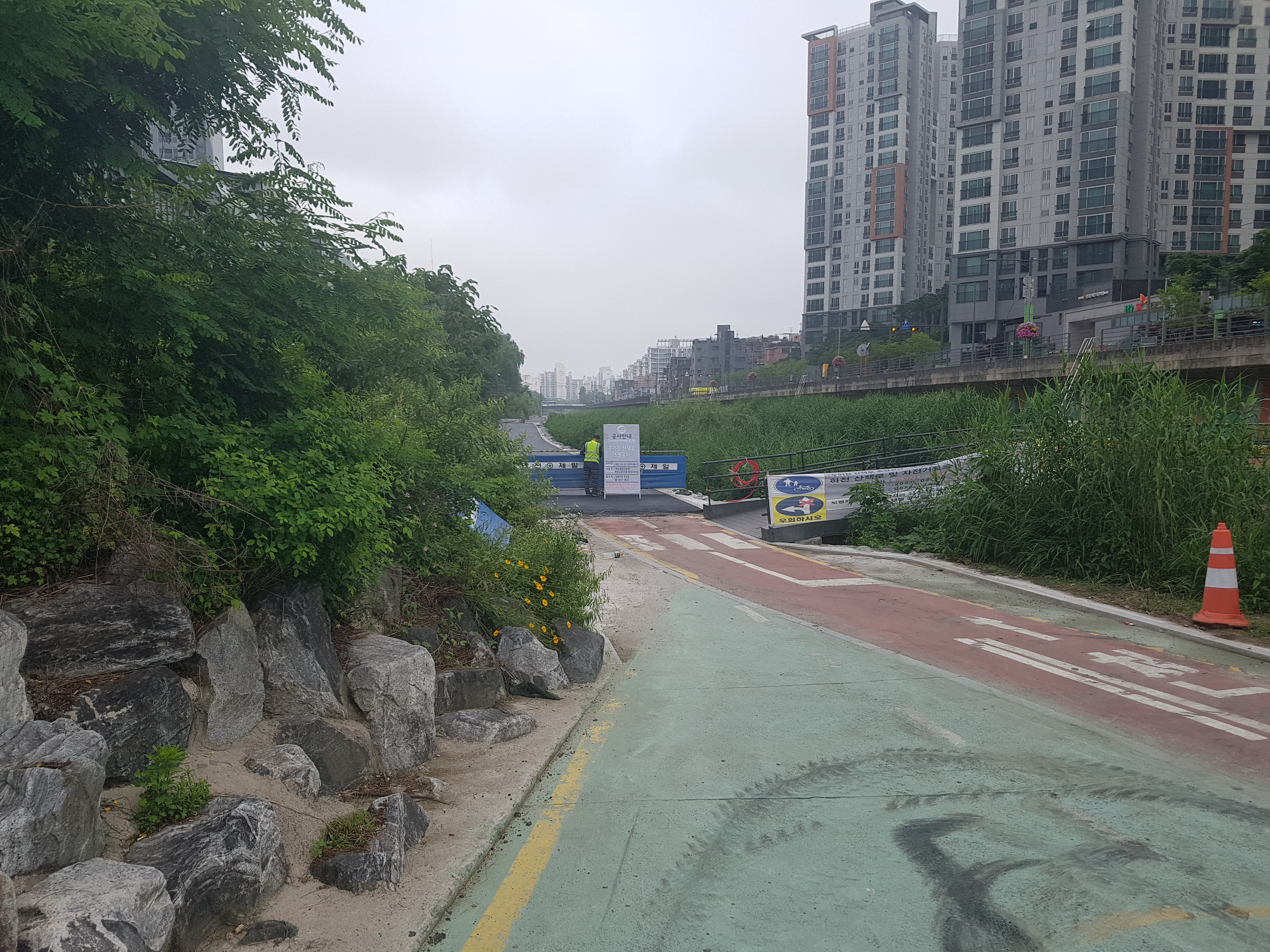 우리 아파트에서 1.8km 정도 떨어져 있는 석계역은 앞으로 내가 수도권 주변에 있는 유명한 산 20개 정도를 등산할 때 자주 이용할 지하철 중에 하나이기 때문에 어디에 있는지를 확인하려고 가보는 것이고, 우이천이 중랑천과 맞나는 곳이 어디인지 궁금해서 오늘 아침 7시 5분경에 우리 아파트를 출발하여 래미안 아파트를 지나 0.8km 되는 곳에 있는 사거리를 건너서 바로 돌곶이교 밑에 흐르는 우이천변으로 조깅하면서 걸어가다가 하천물이 여울지길래 쳐다보니 40cm 정도 되는 잉어 3~4마리가 물속에서 놀고 있는 모습이 보였다. 조금 더 걸어가니 우측 둑 도로가에 광운초등학교와 남대문중학교가 있고, 앞에 보니 광운대교가 나왔다. 광운대교를 지나 하천을 건너는 징검다리와 타원형철재다리가 예쁘게 놓여저 있었다. 조금 더 가니 우측에 쉼터와 운동기구가 설치되어 있고 한 200m 더 가니 하천건너는 자건거도로와 조깅로가 없고 우측변으로 합쳐저 좀 복합해 졌고 바로 길게 박스로 되어 있어 들어가니 전등이 밝게 켜져 있어 한참 걸어가니 400m 정도되는 암거박스를 지나온 것 같았다. 아마 암거박스 위에는 석계역과 도로가 겹치는 구간인 것 같았다. 200~300m를 걸어가니 아름다운 돌징검다리와 나무판자다리가 놓여있고 앞으로 쳐다보니 200~300m 위치에 긴 다리가 두개 있는데 아마 동부간선도로와 북부간선도로분선인 것 같다. 그 밑에 흐르는 하천이 중량천같고 우이천이 맞닿은 곳으로 보였다. 우측으로는 넓은 광장이 보이는데 여러 자전거단체모임이 있는 것 같았다. 우이천입구가 보였고, 더 갈 수 없음을 확인하고 나무다리를 건너 돌아오는 길에 암거박스위가 무엇들이 있는 지를 보려고 올라갔더니 큰 사거리와 지하철 석계역이 교차하는 곳이라 하천을 완전 복개해서 그 위에 도로와 역을 설치한 것 같았다. 하천이 어디 있는지를 추측하여 한 방향을 잡고 갔더니만 더 알 수가 없어서 지나가는 분에게 물어봤더니 내가 있는 위치가 돌곶이역쪽으로 가는 방향이고 우이천는 완전 반대방향으로 가야된다는 얘기를 듣고 그 방향으로 바삐 걸어갔더니 우이천둑길 나와서 100m걸어 가서 천변으로 내려와 광운대교를 지나 래미안 아파트 남쪽 길로 해서 우리 아파트로 들어왔더니 8시 20분 정도가 되었다.