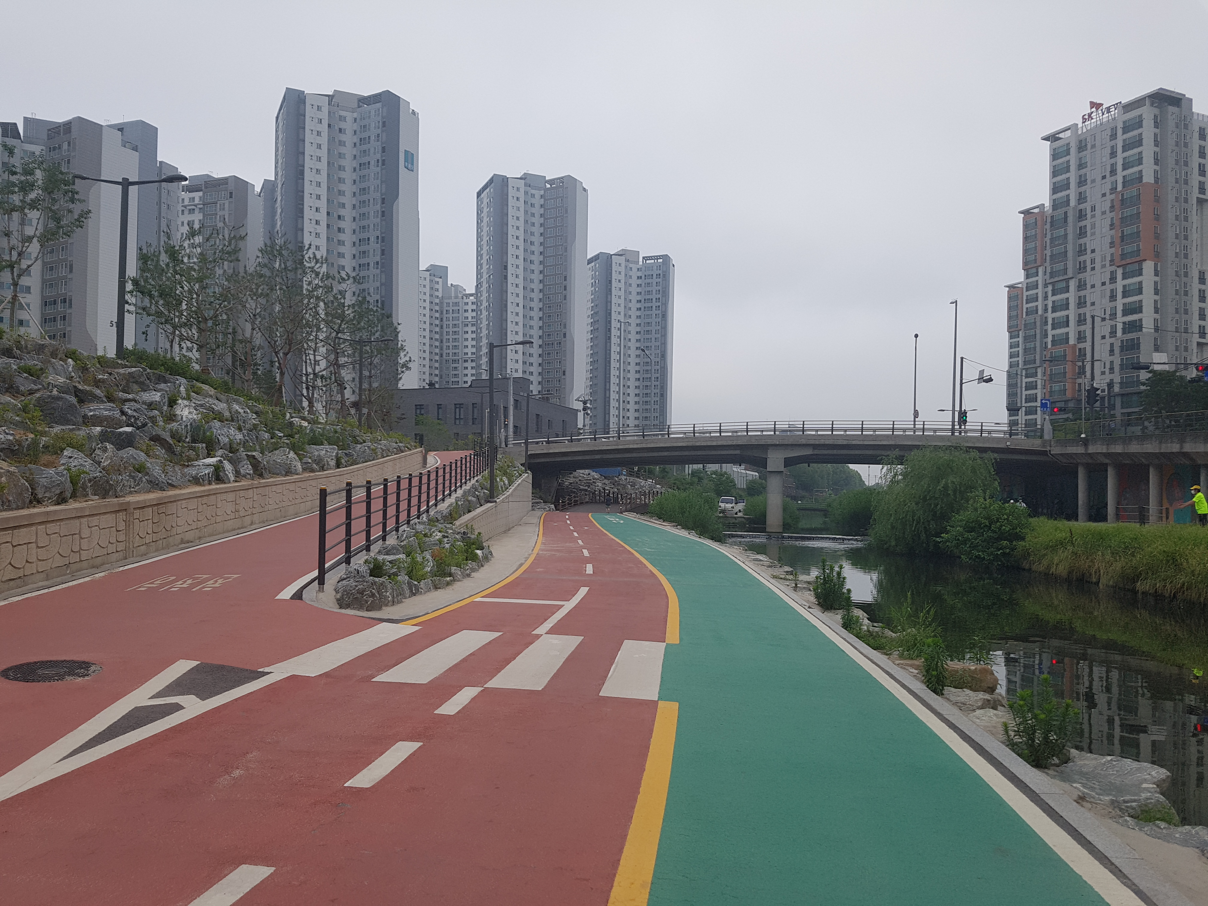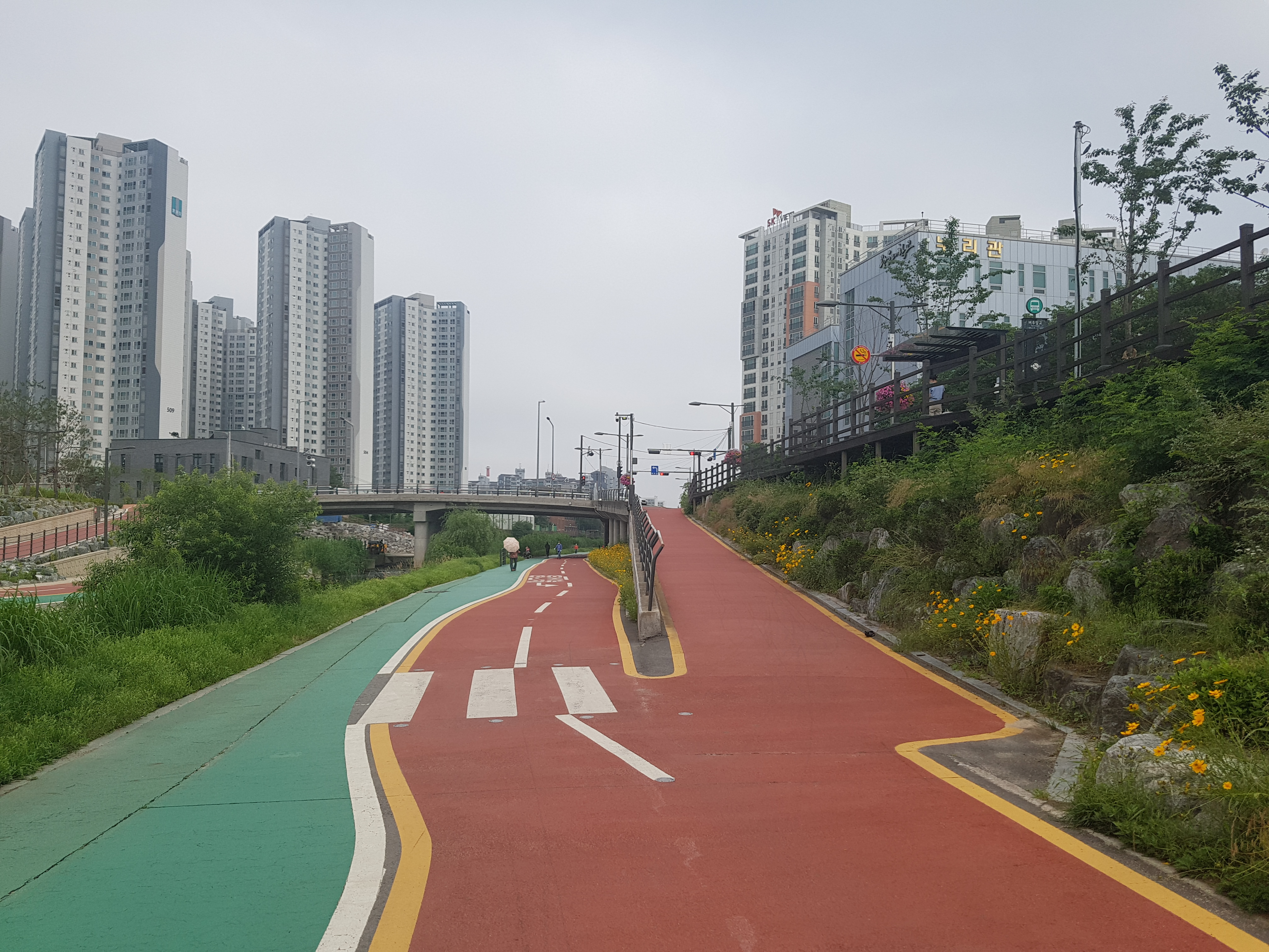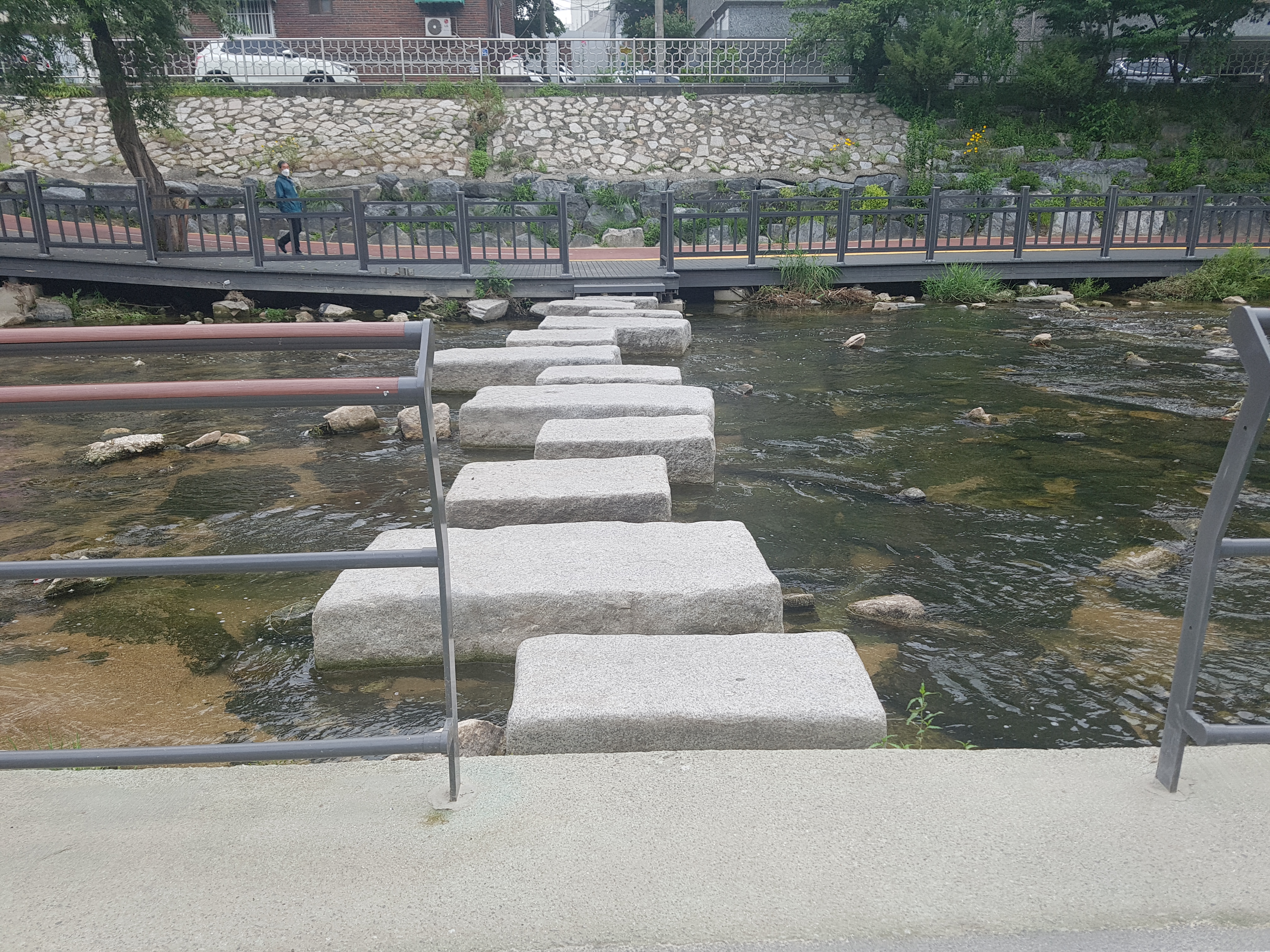 우리 아파트에서 1.8km 정도 떨어져 있는 석계역은 앞으로 내가 수도권 주변에 있는 유명한 산 20개 정도를 등산할 때 자주 이용할 지하철 중에 하나이기 때문에 어디에 있는지를 확인하려고 가보는 것이고, 우이천이 중랑천과 맞나는 곳이 어디인지 궁금해서 오늘 아침 7시 5분경에 우리 아파트를 출발하여 래미안 아파트를 지나 0.8km 되는 곳에 있는 사거리를 건너서 바로 돌곶이교 밑에 흐르는 우이천변으로 조깅하면서 걸어가다가 하천물이 여울지길래 쳐다보니 40cm 정도 되는 잉어 3~4마리가 물속에서 놀고 있는 모습이 보였다. 조금 더 걸어가니 우측 둑 도로가에 광운초등학교와 남대문중학교가 있고, 앞에 보니 광운대교가 나왔다. 광운대교를 지나 하천을 건너는 징검다리와 타원형철재다리가 예쁘게 놓여저 있었다. 조금 더 가니 우측에 쉼터와 운동기구가 설치되어 있고 한 200m 더 가니 하천건너는 자건거도로와 조깅로가 없고 우측변으로 합쳐저 좀 복합해 졌고 바로 길게 박스로 되어 있어 들어가니 전등이 밝게 켜져 있어 한참 걸어가니 400m 정도되는 암거박스를 지나온 것 같았다. 아마 암거박스 위에는 석계역과 도로가 겹치는 구간인 것 같았다. 200~300m를 걸어가니 아름다운 돌징검다리와 나무판자다리가 놓여있고 앞으로 쳐다보니 200~300m 위치에 긴 다리가 두개 있는데 아마 동부간선도로와 북부간선도로분선인 것 같다. 그 밑에 흐르는 하천이 중량천같고 우이천이 맞닿은 곳으로 보였다. 우측으로는 넓은 광장이 보이는데 여러 자전거단체모임이 있는 것 같았다. 우이천입구가 보였고, 더 갈 수 없음을 확인하고 나무다리를 건너 돌아오는 길에 암거박스위가 무엇들이 있는 지를 보려고 올라갔더니 큰 사거리와 지하철 석계역이 교차하는 곳이라 하천을 완전 복개해서 그 위에 도로와 역을 설치한 것 같았다. 하천이 어디 있는지를 추측하여 한 방향을 잡고 갔더니만 더 알 수가 없어서 지나가는 분에게 물어봤더니 내가 있는 위치가 돌곶이역쪽으로 가는 방향이고 우이천는 완전 반대방향으로 가야된다는 얘기를 듣고 그 방향으로 바삐 걸어갔더니 우이천둑길 나와서 100m걸어 가서 천변으로 내려와 광운대교를 지나 래미안 아파트 남쪽 길로 해서 우리 아파트로 들어왔더니 8시 20분 정도가 되었다.