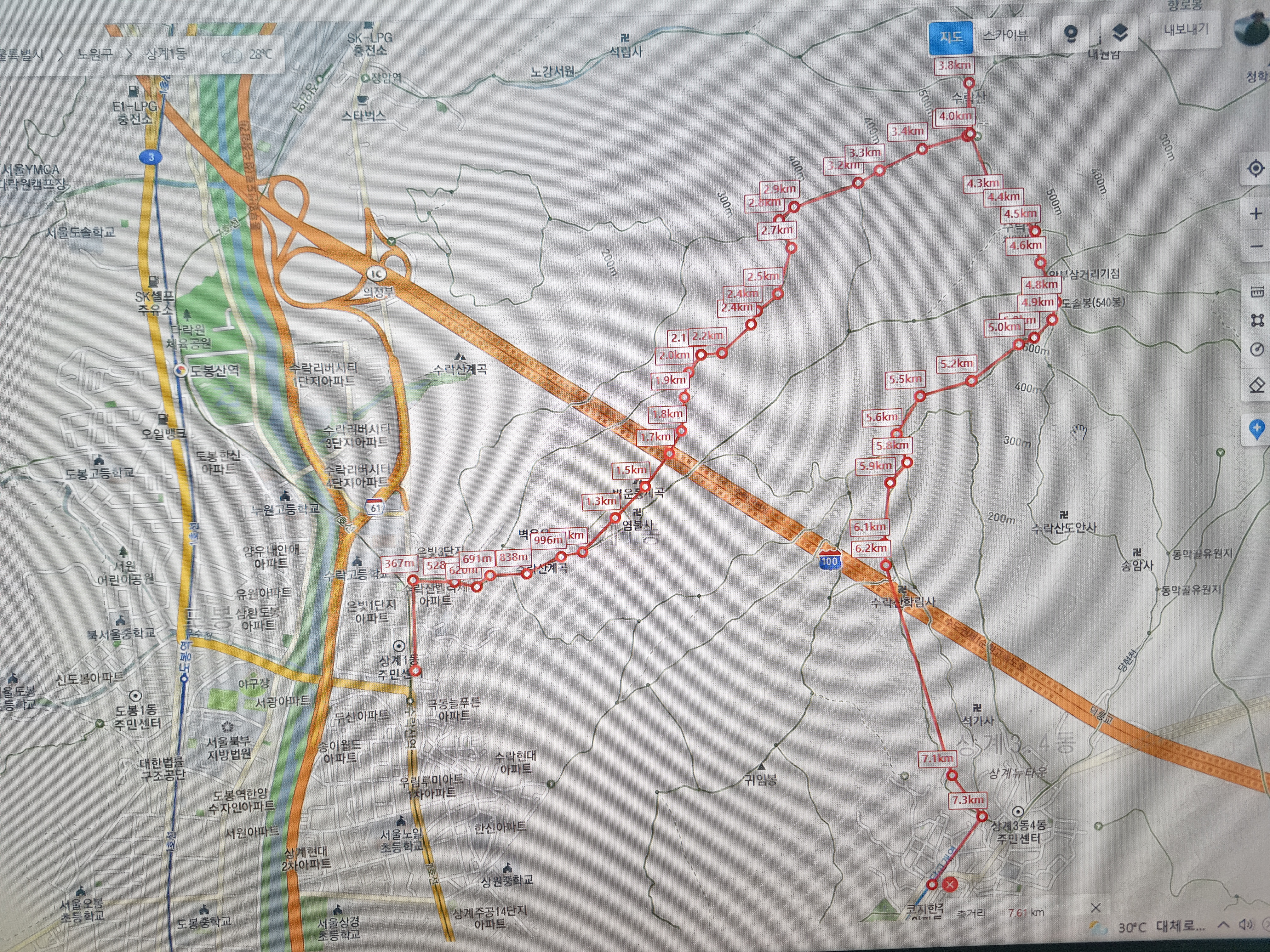 수락산 정상높이가 640.5m인데...