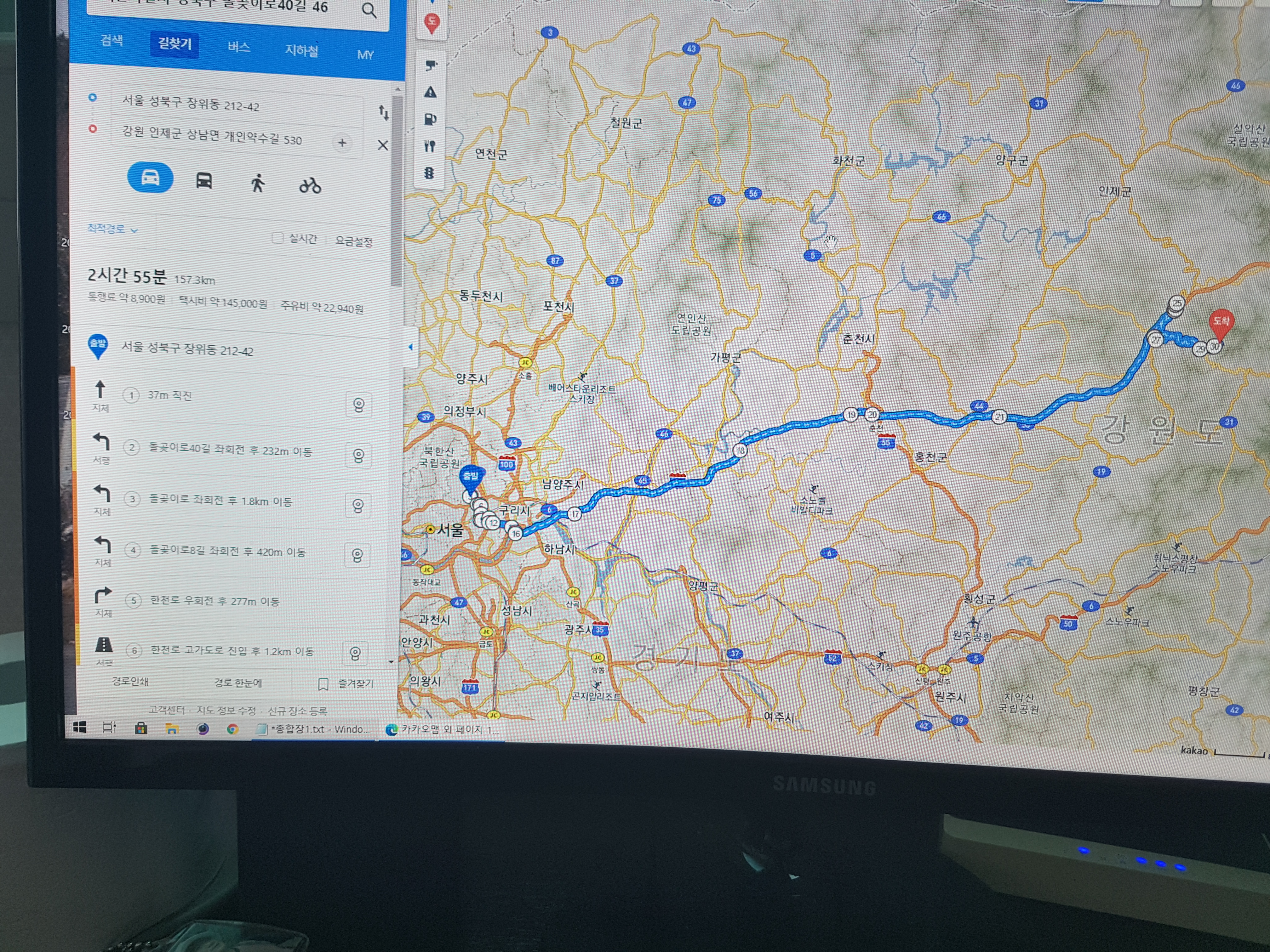 자가용 거리 : 157.3km + 78.2km + 183.7km, 자가용시간 : 2시간 55분 + 1시간 23분 + 2시간 15분