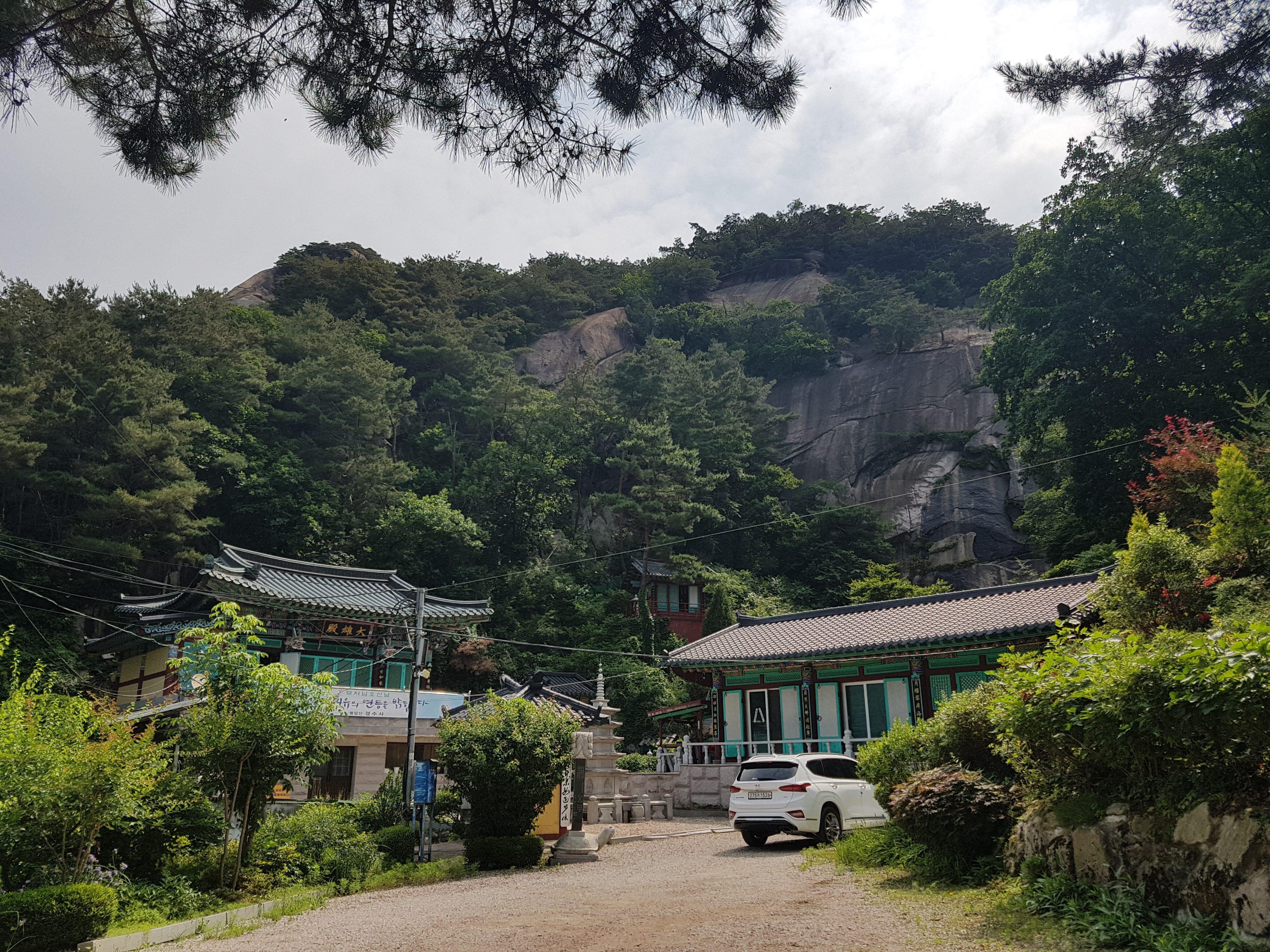 오늘 아침에 식사를 하고 7시 5분경에 집을 나서서 마을버스를 타고 지하철 석계역에 하차하였다. 석계역에서 1호선 타고 창동역으로 가서 4호선으로 환승하여 상계역에서 하차하여 7시 30분경에 1번 출구로 나가면서 불암산을 등산하기 시작하였다. 상계역에서 1번 출구로 나와서 방향을 잘못 잡아 반대방향으로 가서 한 10분간 혜매다가 출근하는 분에게 물어 상계불암 대림아파트를 찾아 올라가서 불암산공원관리소로 갔다. 불암산 계곡으로 난 길로 올라가다가 좌우 배드민턴장을 지나 1.3km 위치에 있는 정암사에서 사진을 찍고 여기서부터 등산로가 가파른 돌계단으로 한참 올라가니 2.1km 위치에 깔딱고개로 올라갔다.